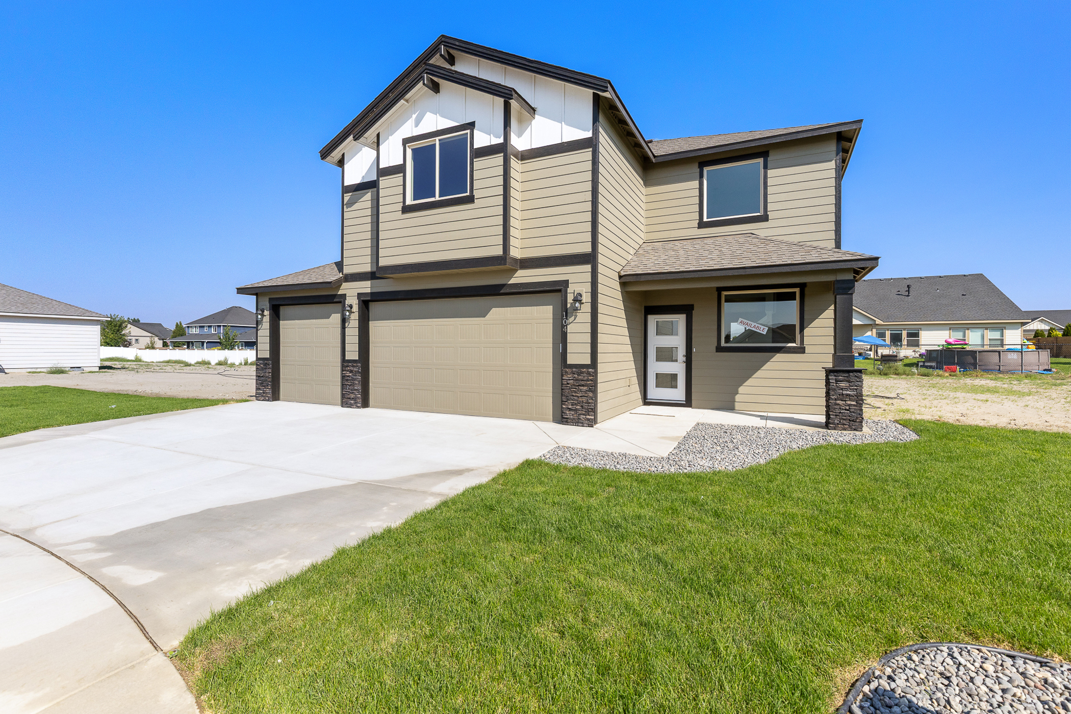 The main level features the great room, kitchen, and dining nook. Upstairs, a luxurious primary suite includes a spacious bedroom, an ensuite bathroom, complemented by a generous walk-in closet. Two additional bedrooms share a full bathroom, with a convenient laundry room nearby.