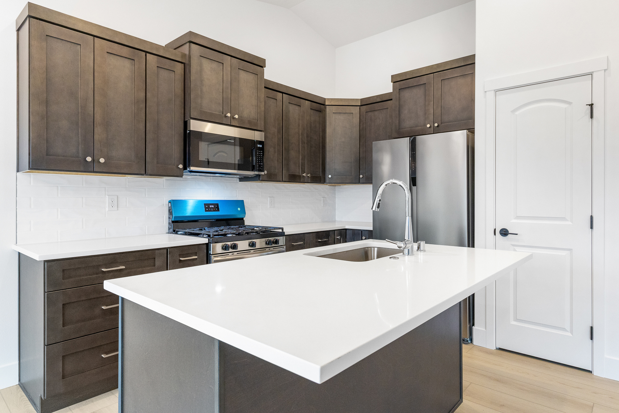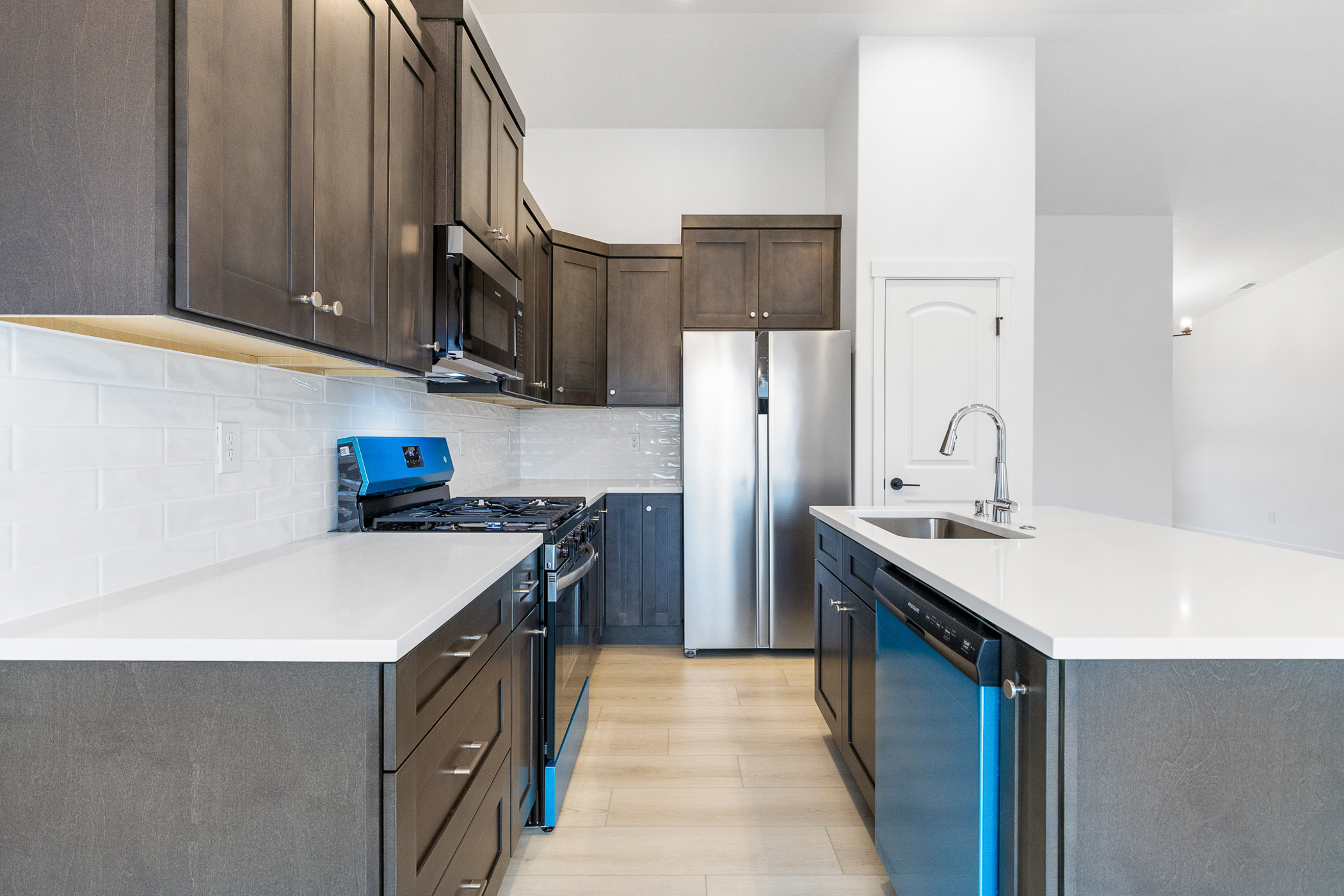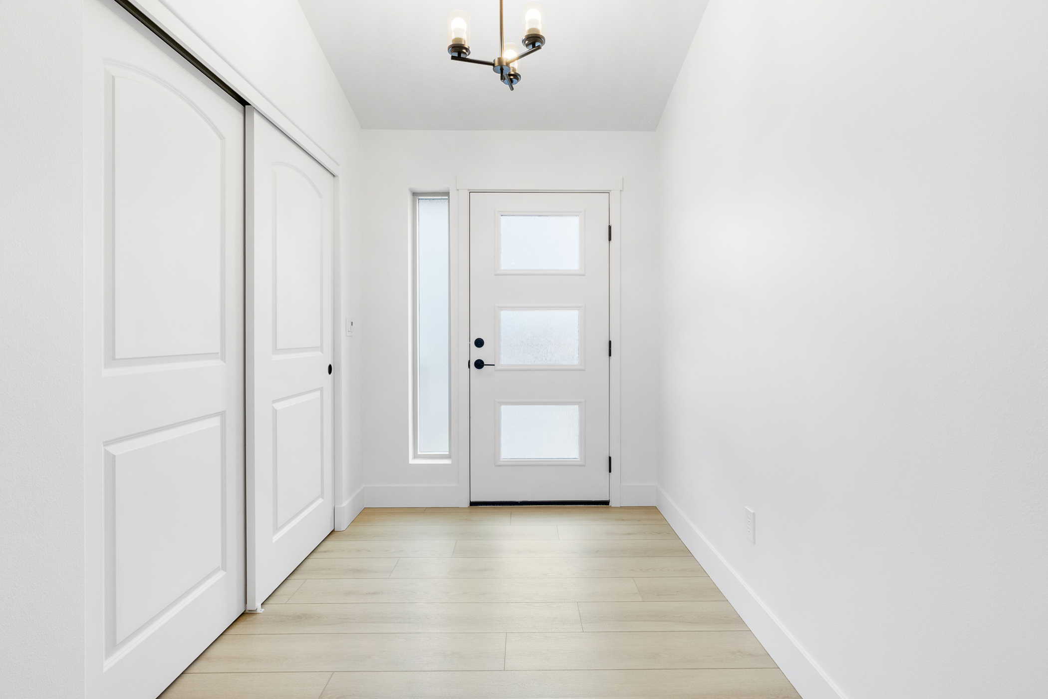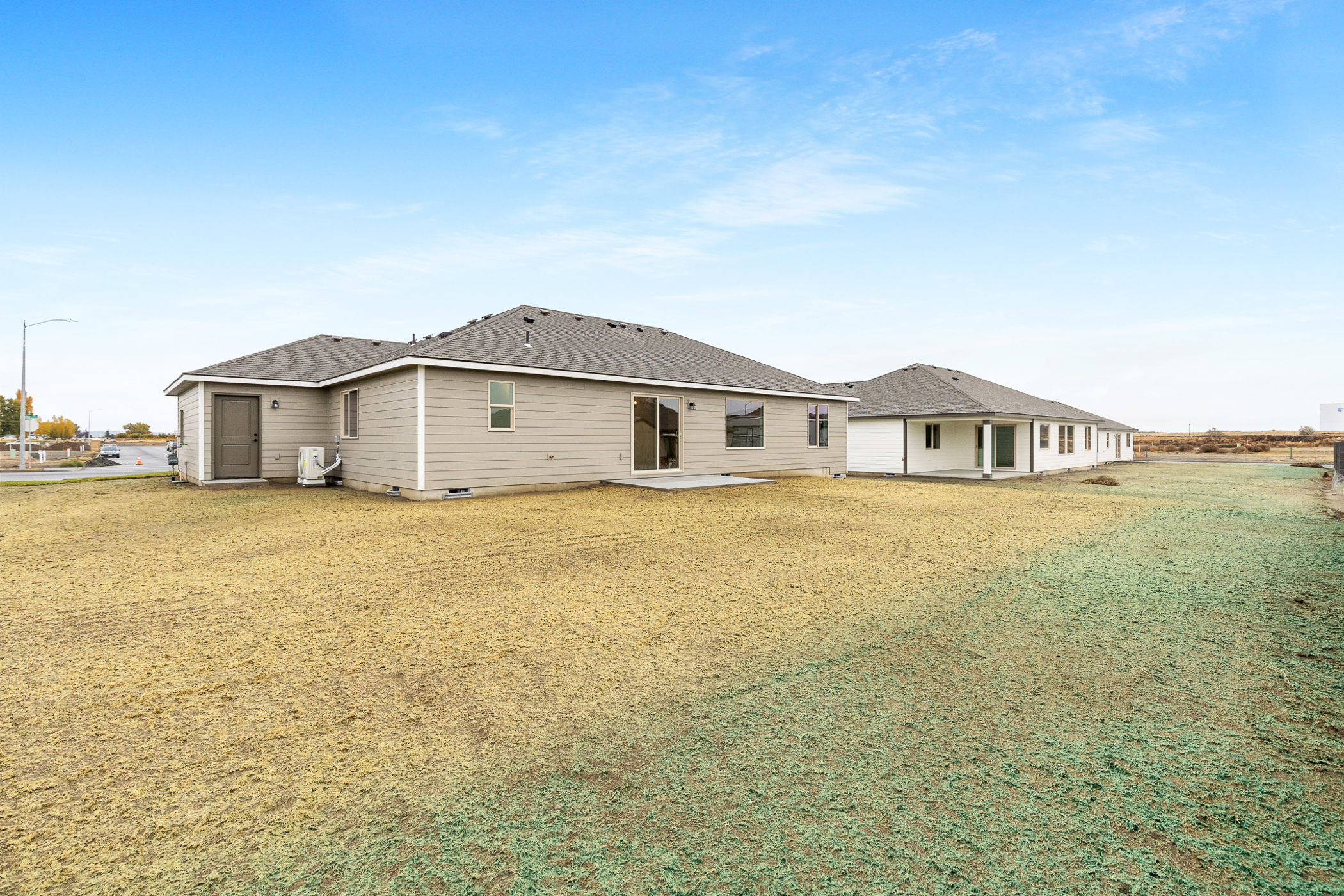 Retreat to the main suite featuring a dual vanity bathroom with options for a fiberglass shower or customizable tiled walls. Plus, indulge in the dream-worthy walk-in closet. At the opposite end, two bedrooms share a well-appointed bathroom.