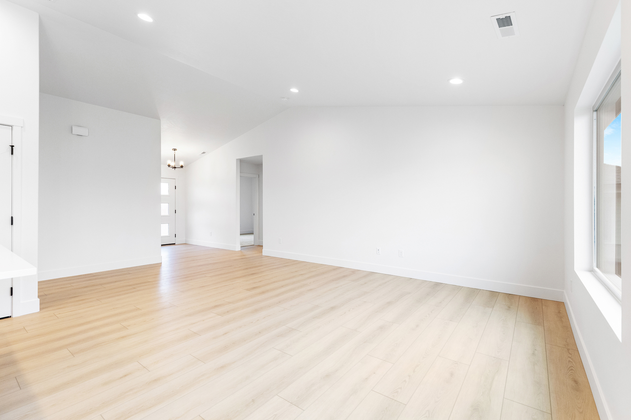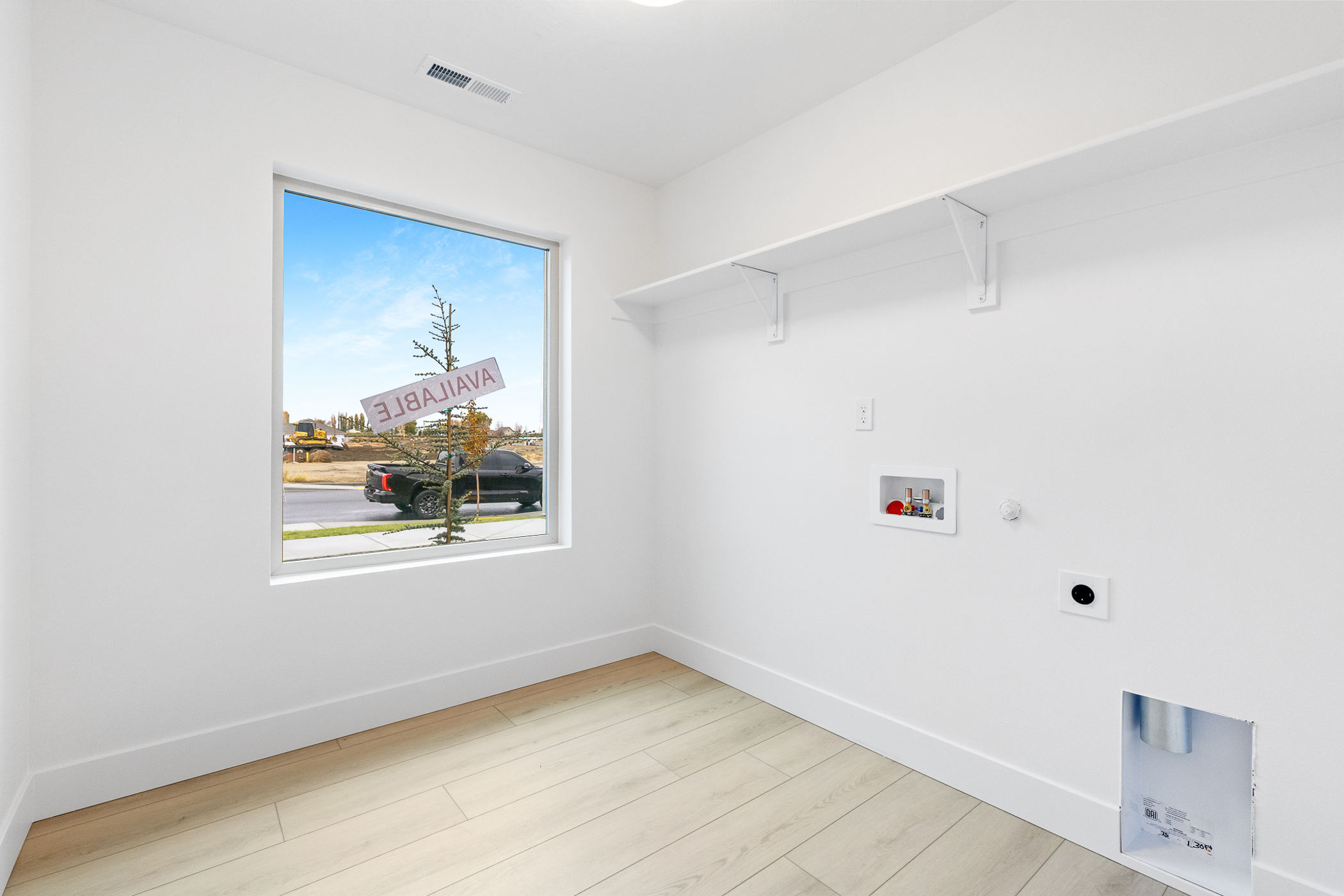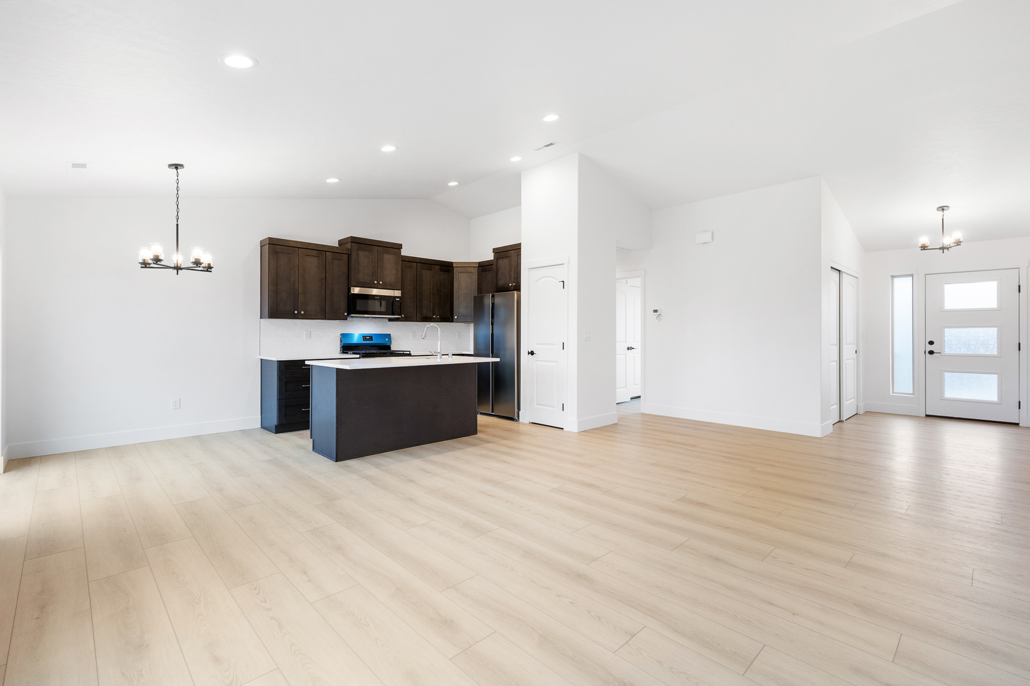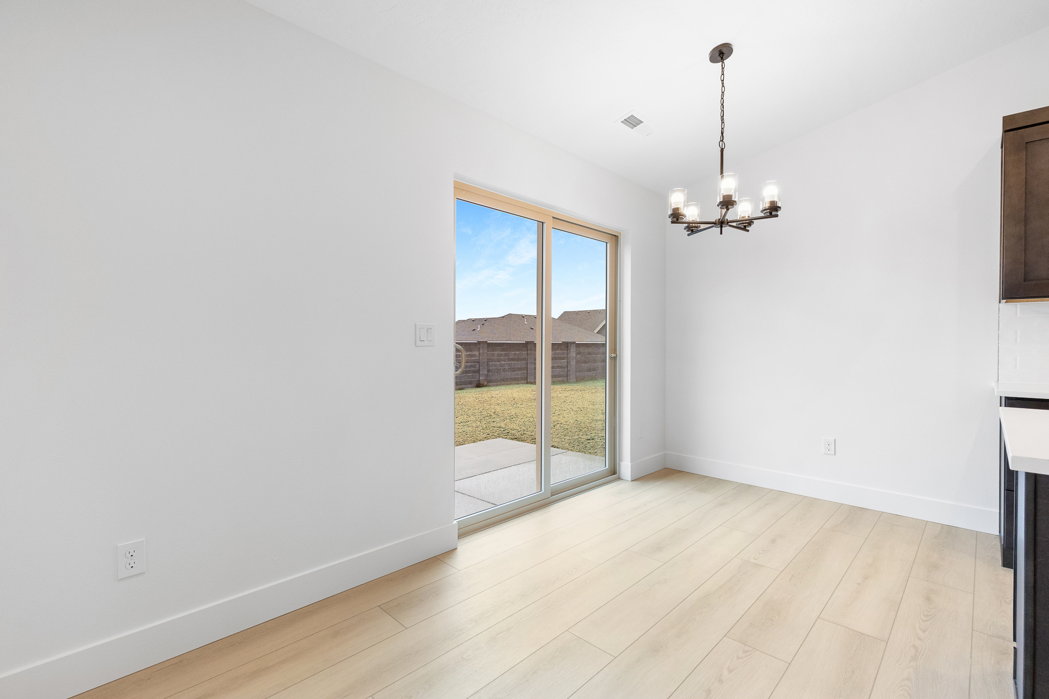 In the 1403 floor plan, you’ll be greeted by the grandeur of the high vaulted ceiling in the great room, seamlessly flowing into the spacious kitchen and dining area. Flooded with natural light from the large window and patio slide door, this space feels open and inviting. Conveniently located near the garage entrance, the laundry room offers ease and functionality.