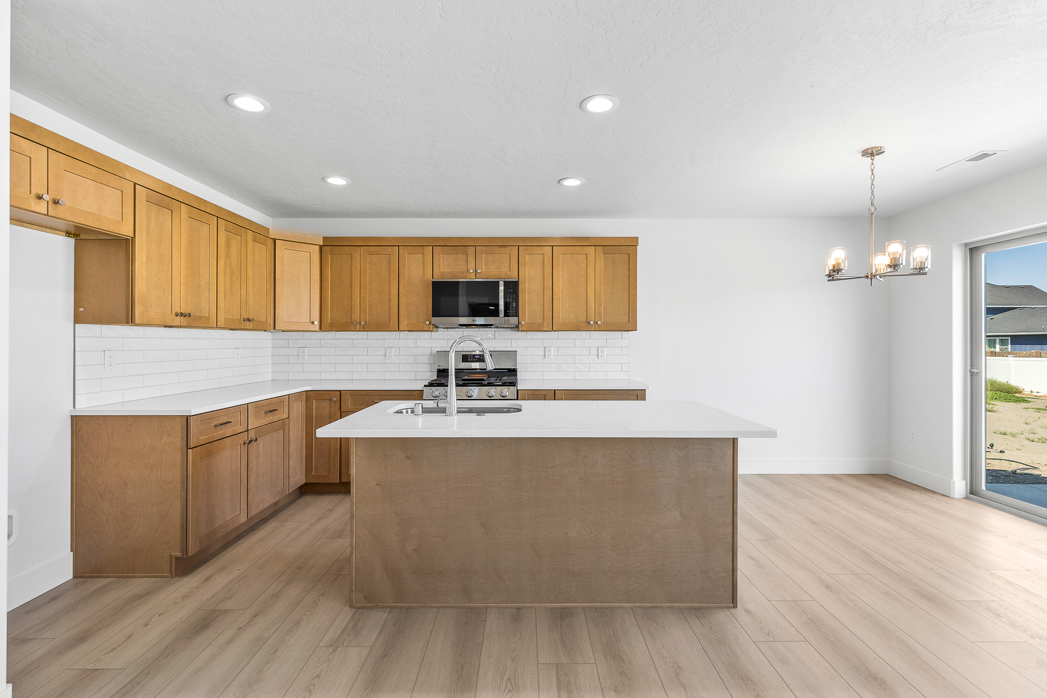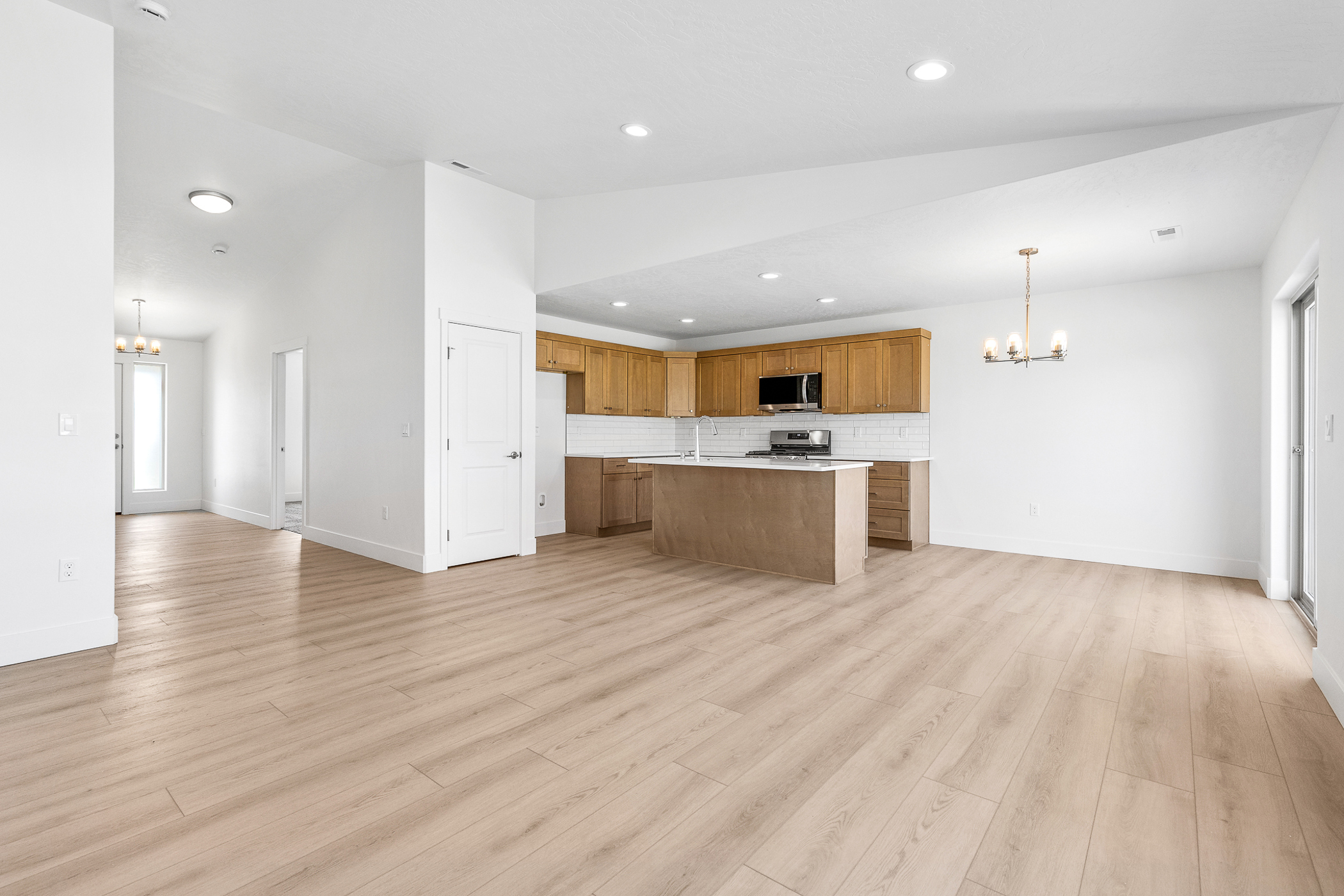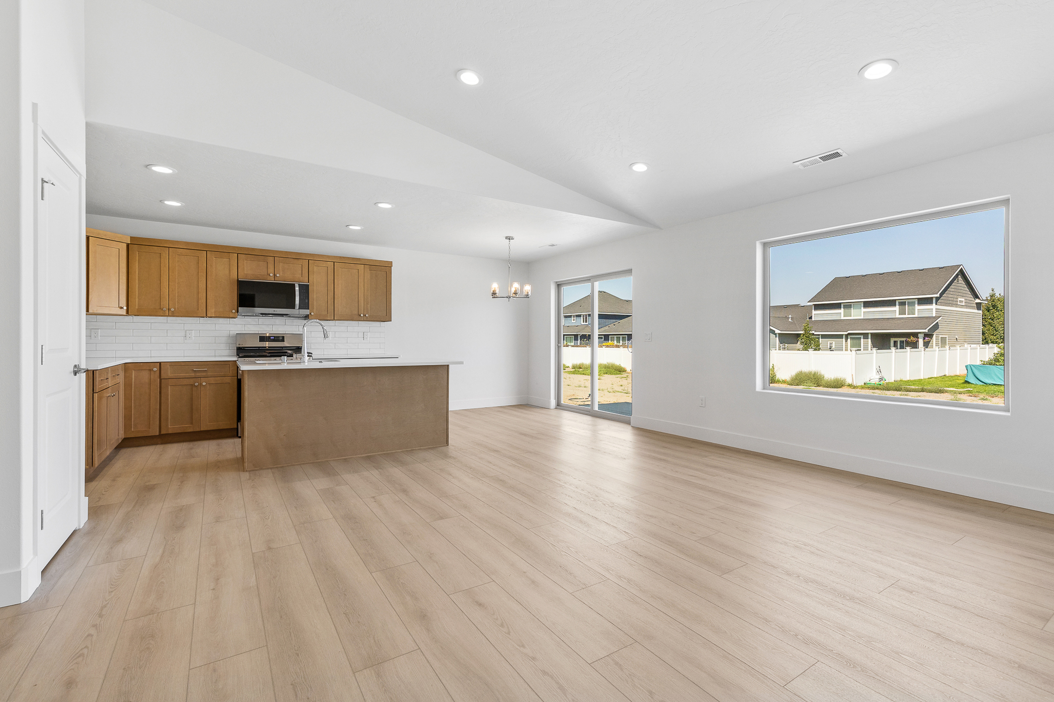 Step into the 1250 plan, elegant with a beautifully designed open concept encompassing the kitchen, great room, and dining area, all overlooking the serene backyard.