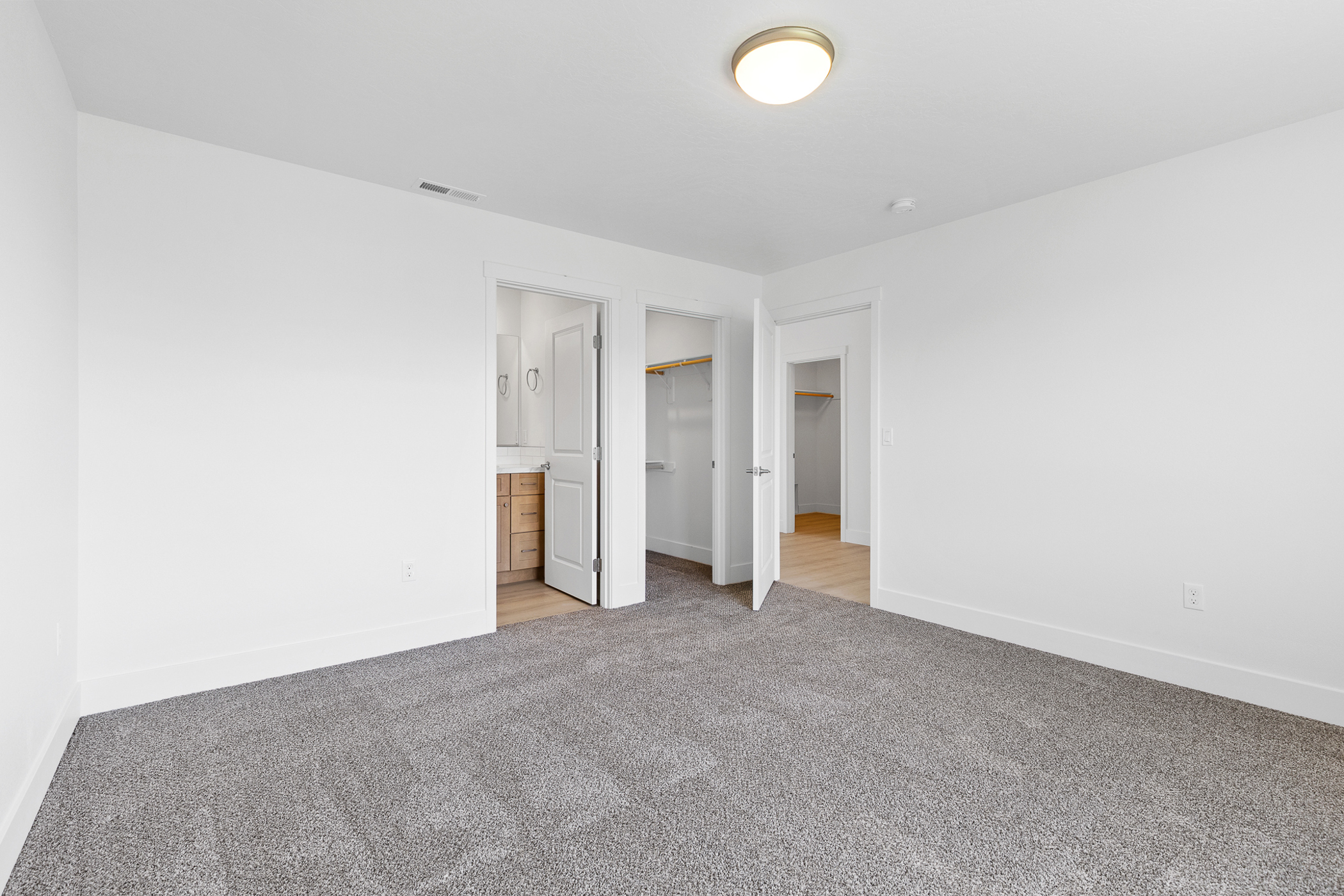 The vaulted ceiling adds distinctive charm. At one end, discover the luxurious primary suite boasting a private walk-in bathroom and a generously sized walk-in closet.