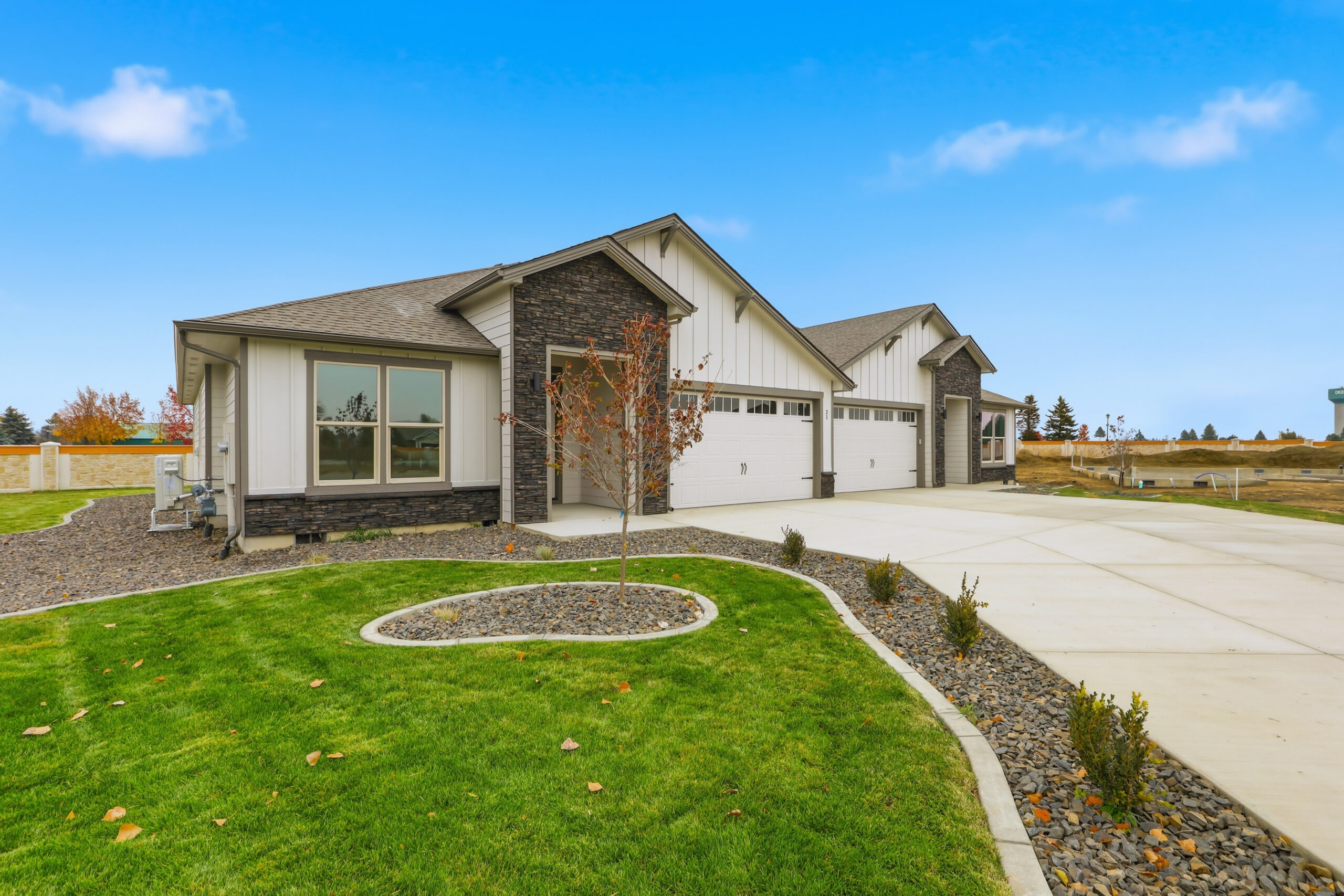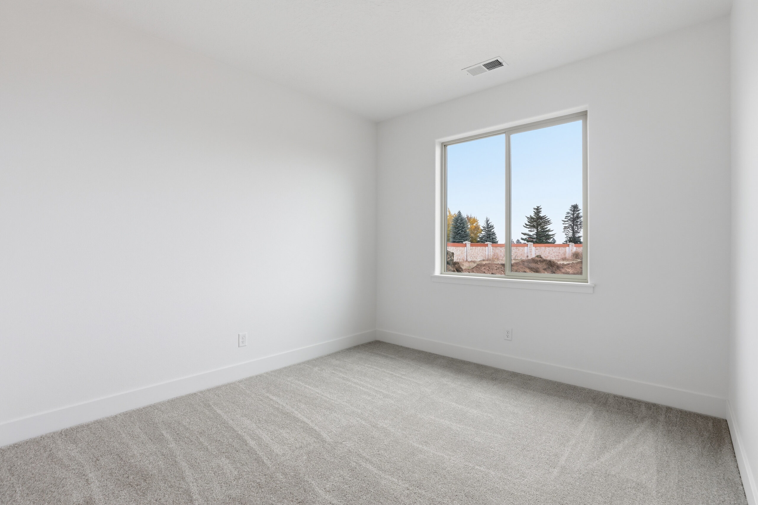 On the opposite side of the home, the primary suite provides a private retreat, complete with a luxurious bathroom and a spacious walk-in closet. Two additional bedrooms share a full bathroom, offering comfortable accommodations for guests or residents.