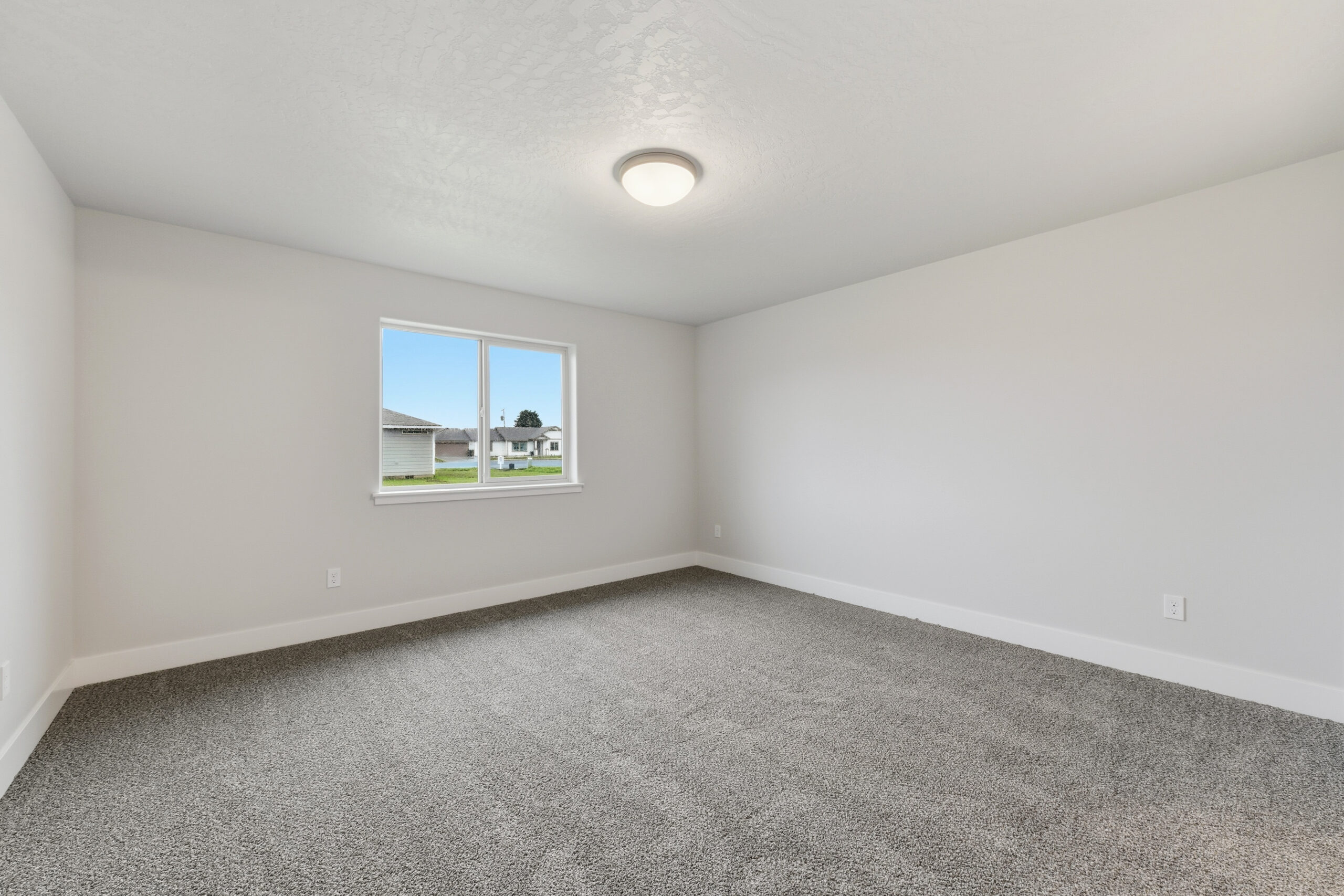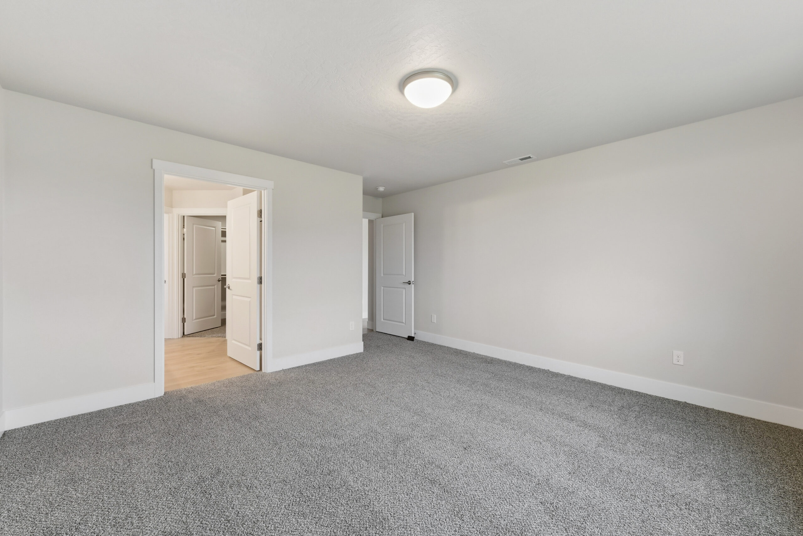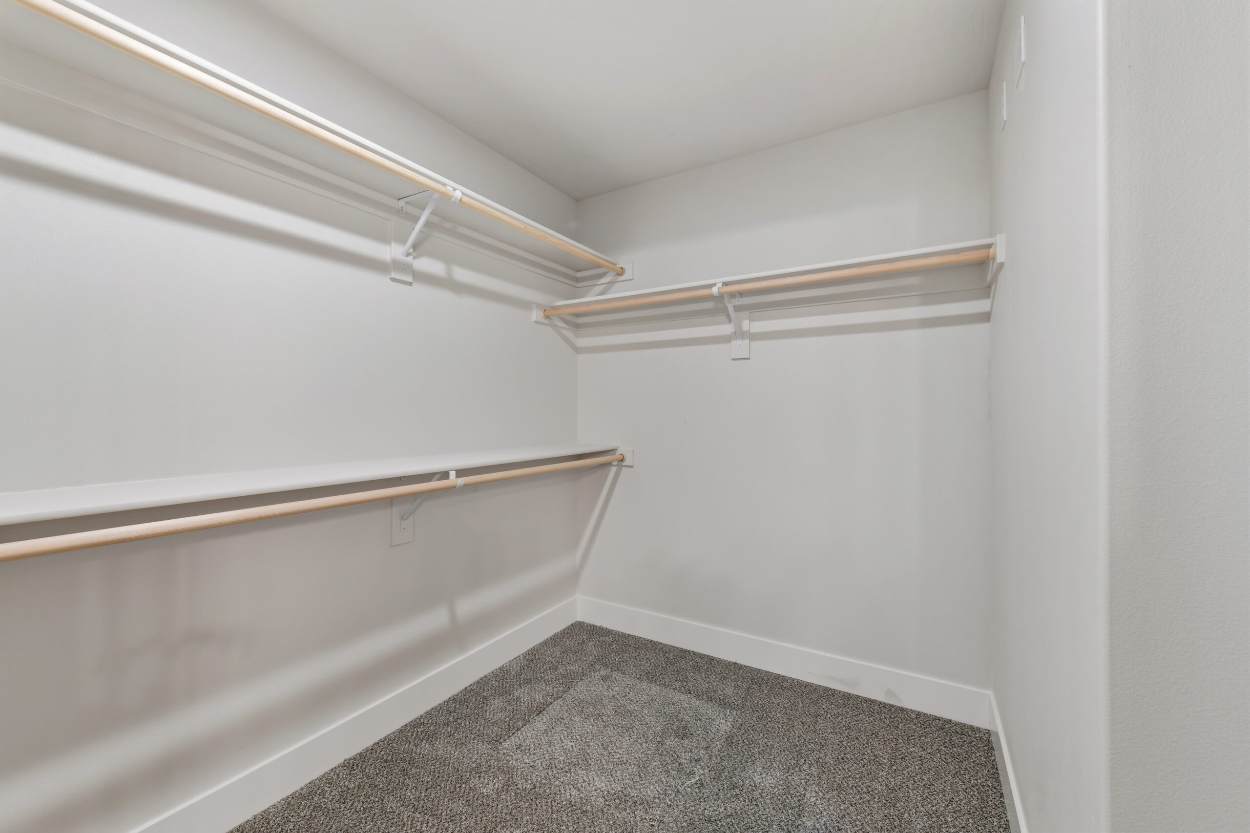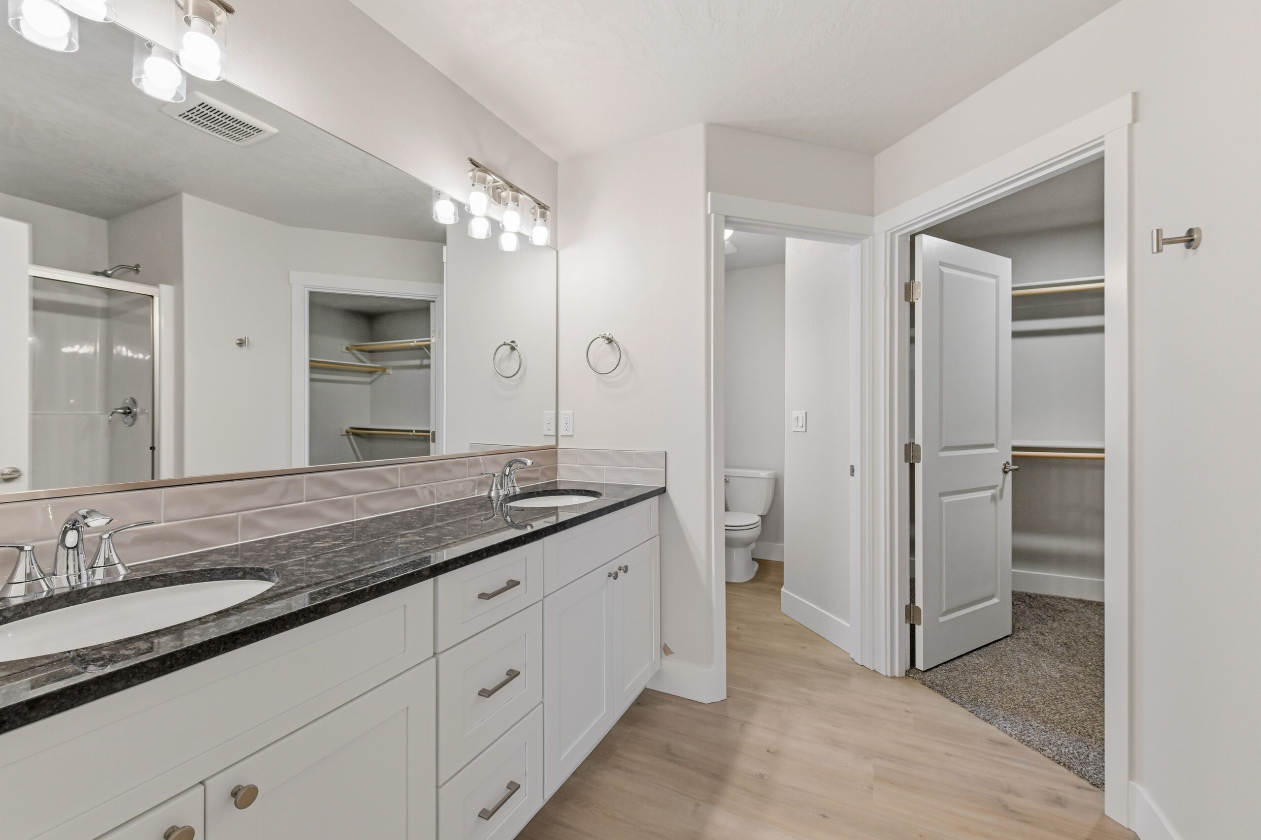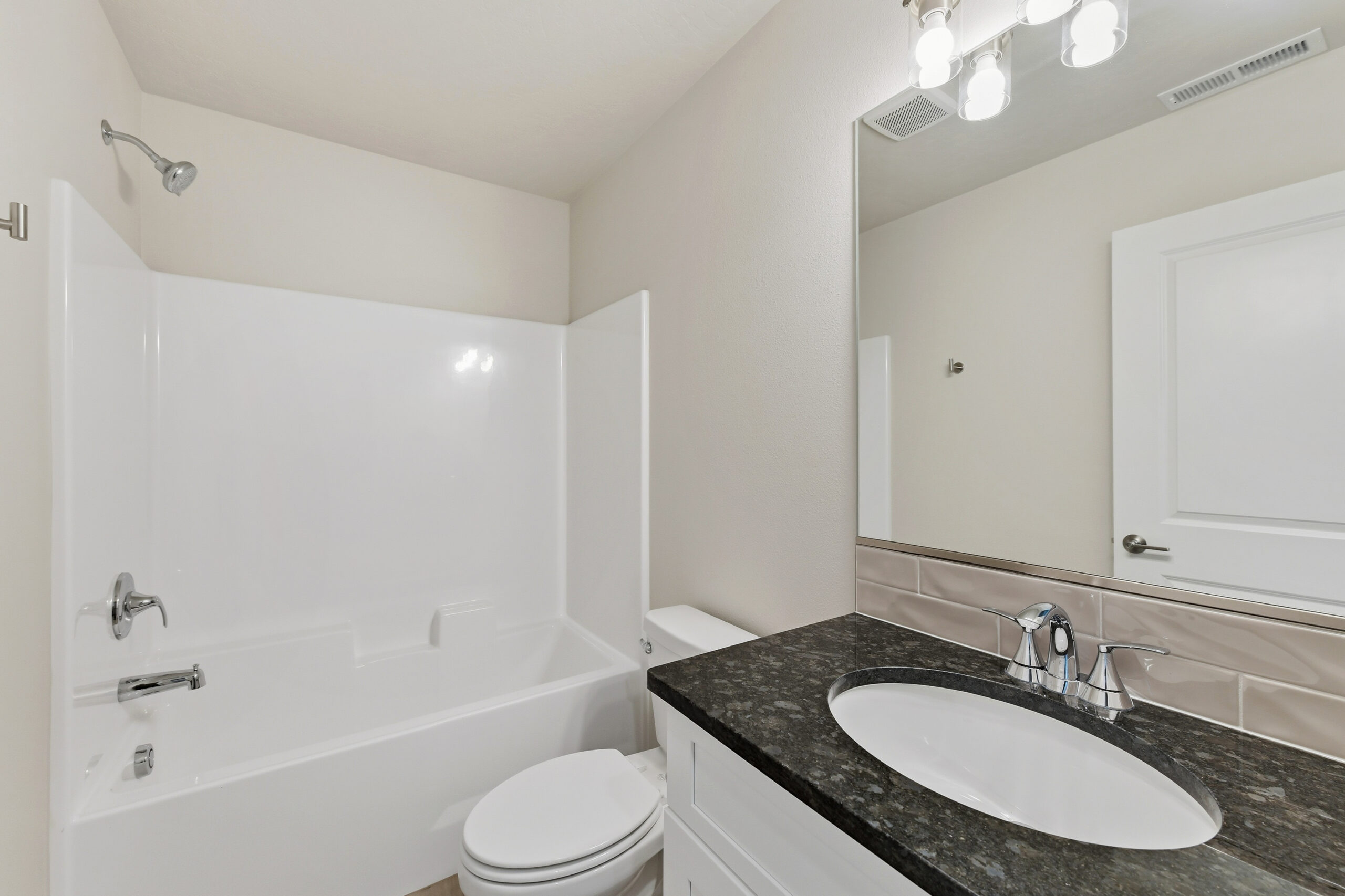 The entry hallway provides extra storage with a coat closet and linen closet. Retreat to the primary suite at the opposite end of the home, featuring a spacious walk-in closet and a luxurious bathroom. Two additional bedrooms share a tub and shower combo bathroom on the opposite wing.