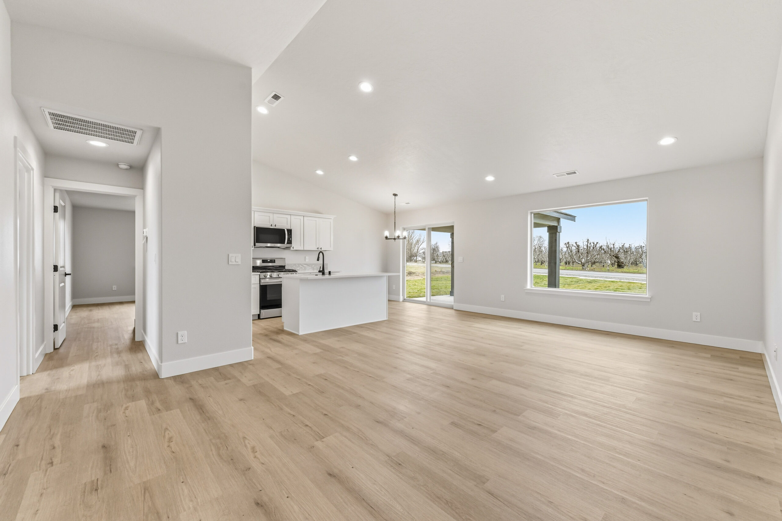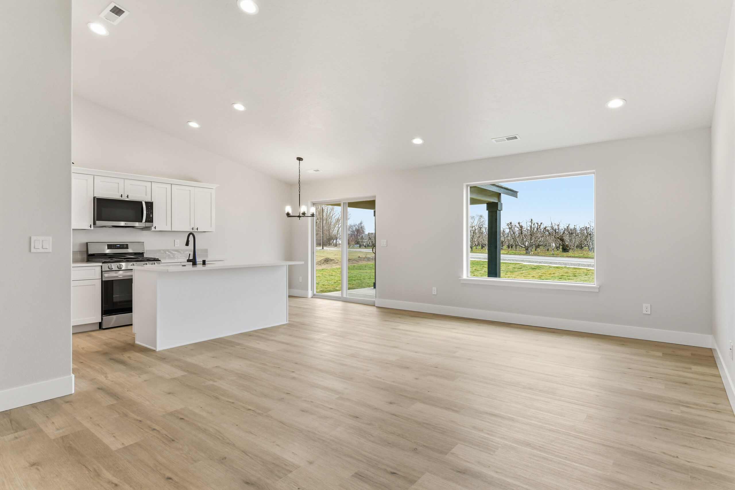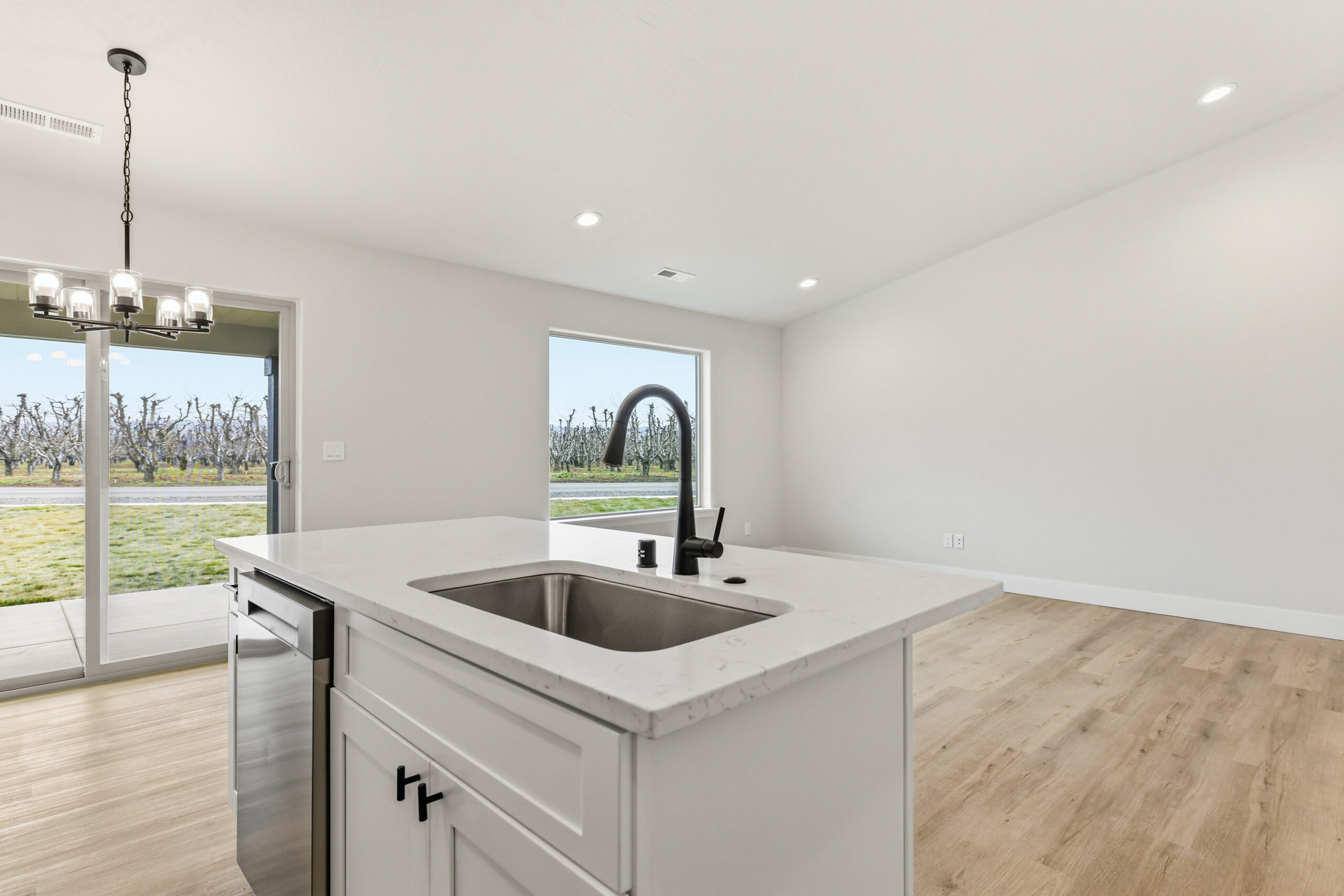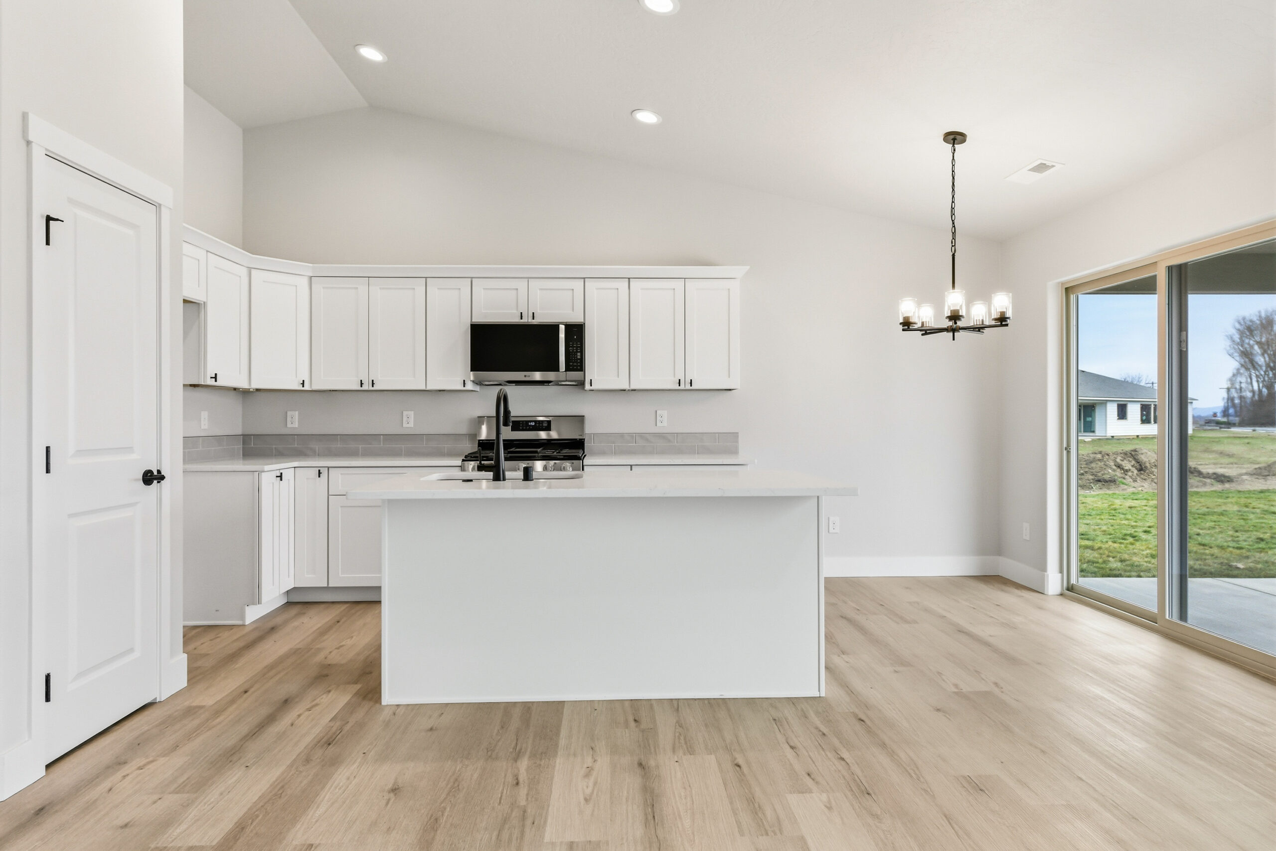 In the 1403 floor plan, you’ll be greeted by the grandeur of the high vaulted ceiling in the great room, seamlessly flowing into the spacious kitchen and dining area. Flooded with natural light from the large window and patio slide door, this space feels open and inviting. Conveniently located near the garage entrance, the laundry room offers ease and functionality.