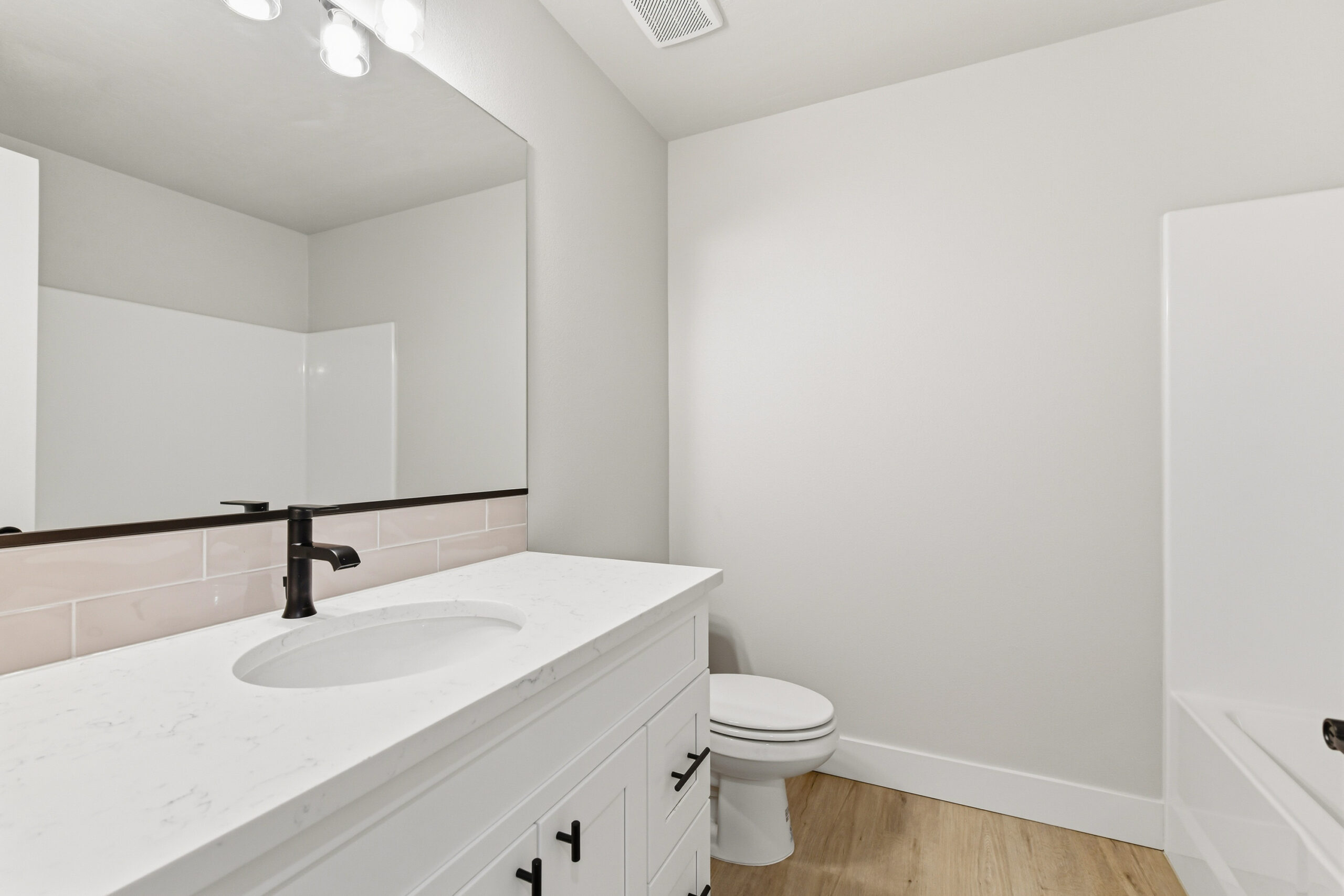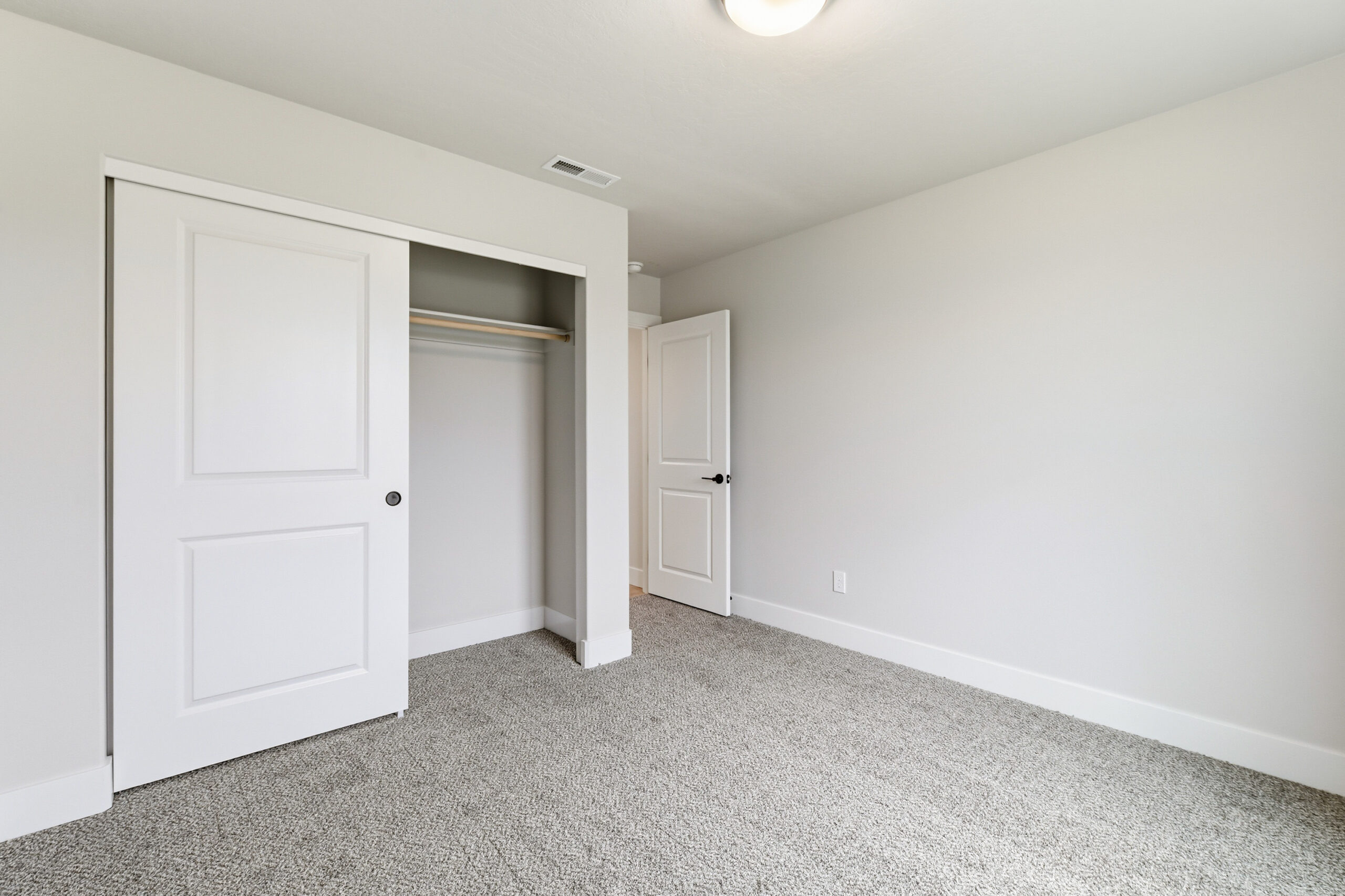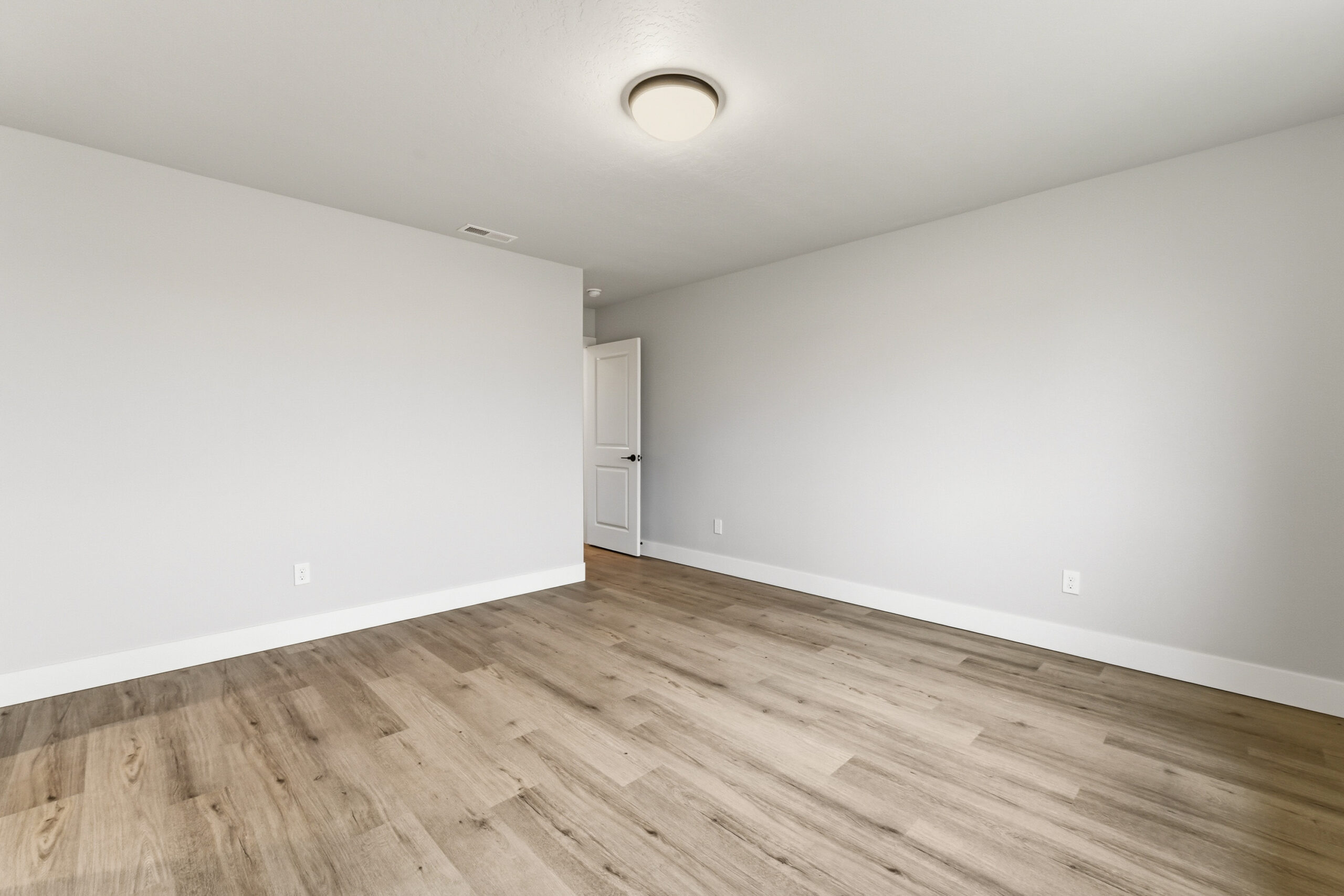Retreat to the main suite featuring a dual vanity bathroom with options for a fiberglass shower or customizable tiled walls. Plus, indulge in the dream-worthy walk-in closet. At the opposite end, two bedrooms share a well-appointed bathroom.