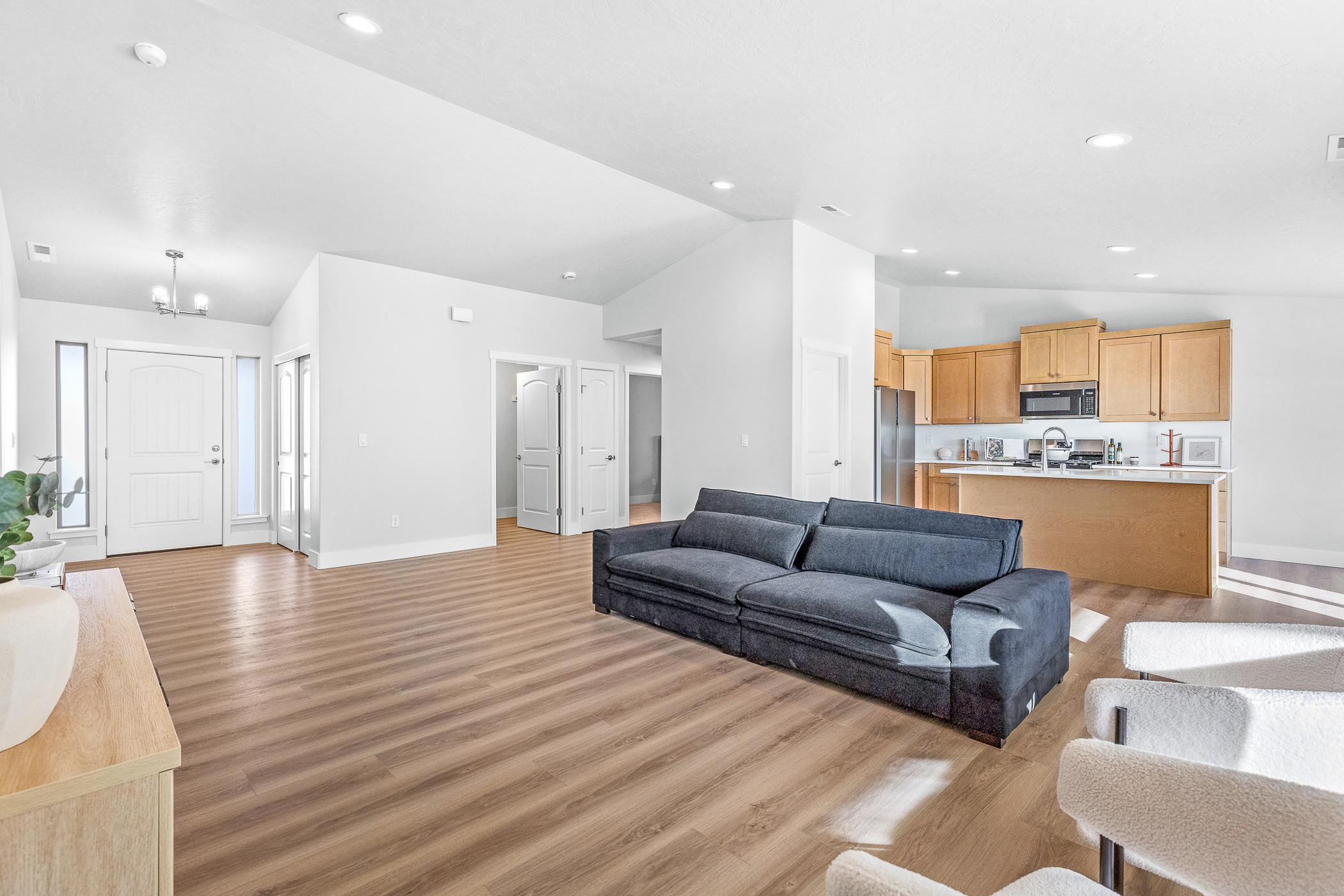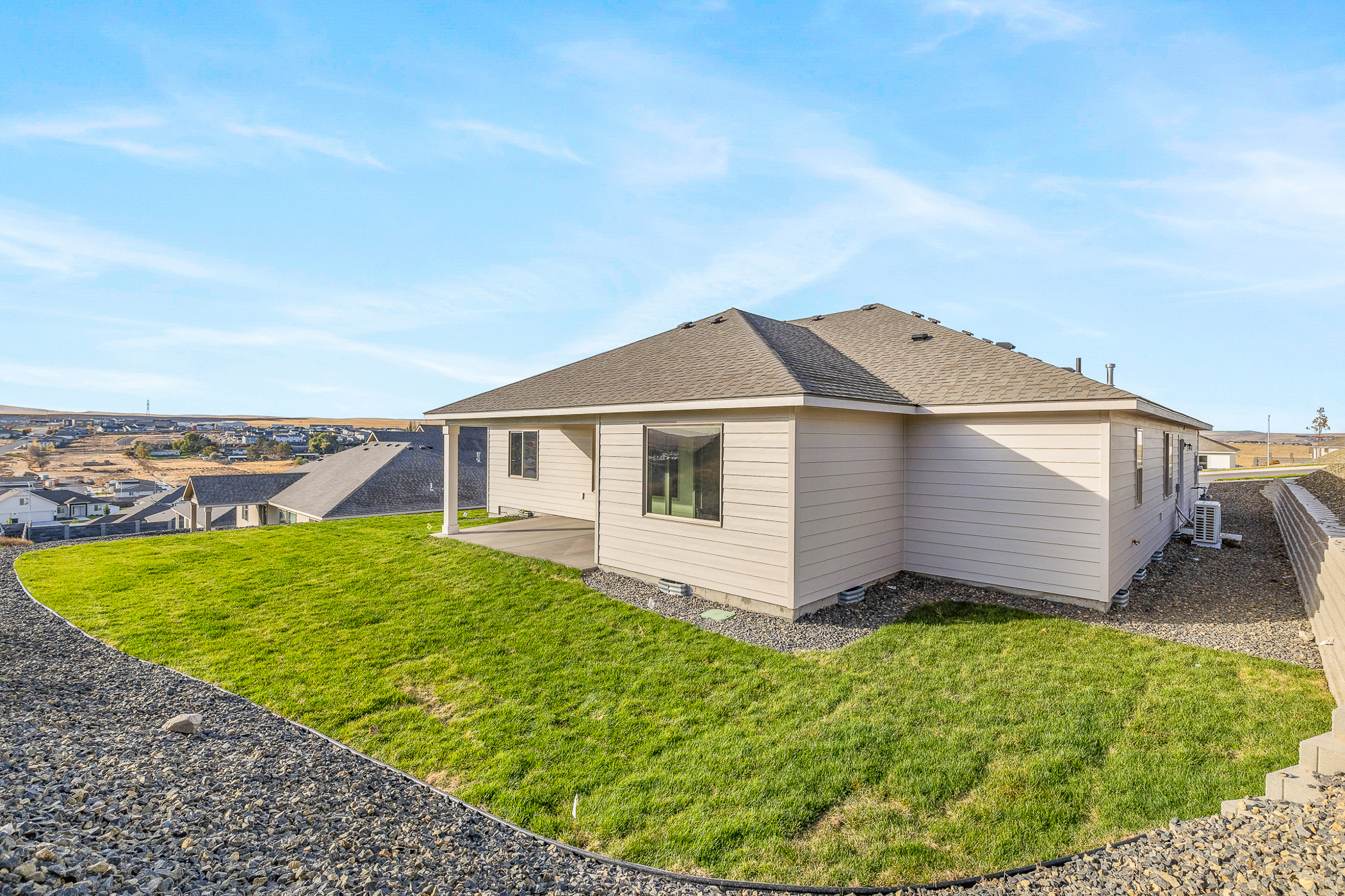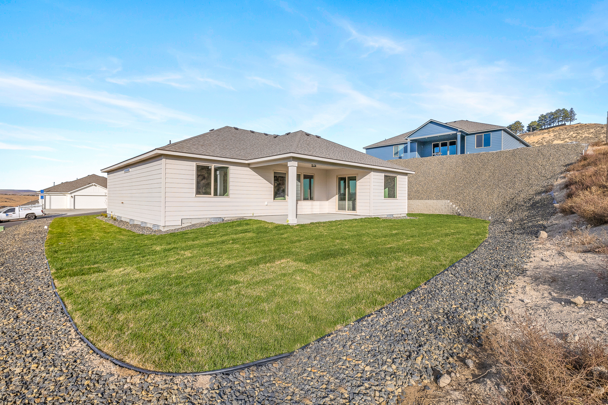 This stylish 1670 Plan single-story home blends comfort and functionality with an open-concept design perfect for modern living. The private master suite features a spacious layout, walk-in closet, and a sleek ensuite bath. Two additional bedrooms and a full bathroom are tucked away on the opposite side, ideal for family or guests. At the heart of the home is a vaulted great room that flows seamlessly into the kitchen and dining nook—perfect for entertaining. The kitchen boasts a central island, walk-in pantry, and plenty of counter space. A generous three-car garage including laundry space and extra storage. Out back, a cozy patio provides the perfect spot for outdoor dining, relaxing, or entertaining guests.