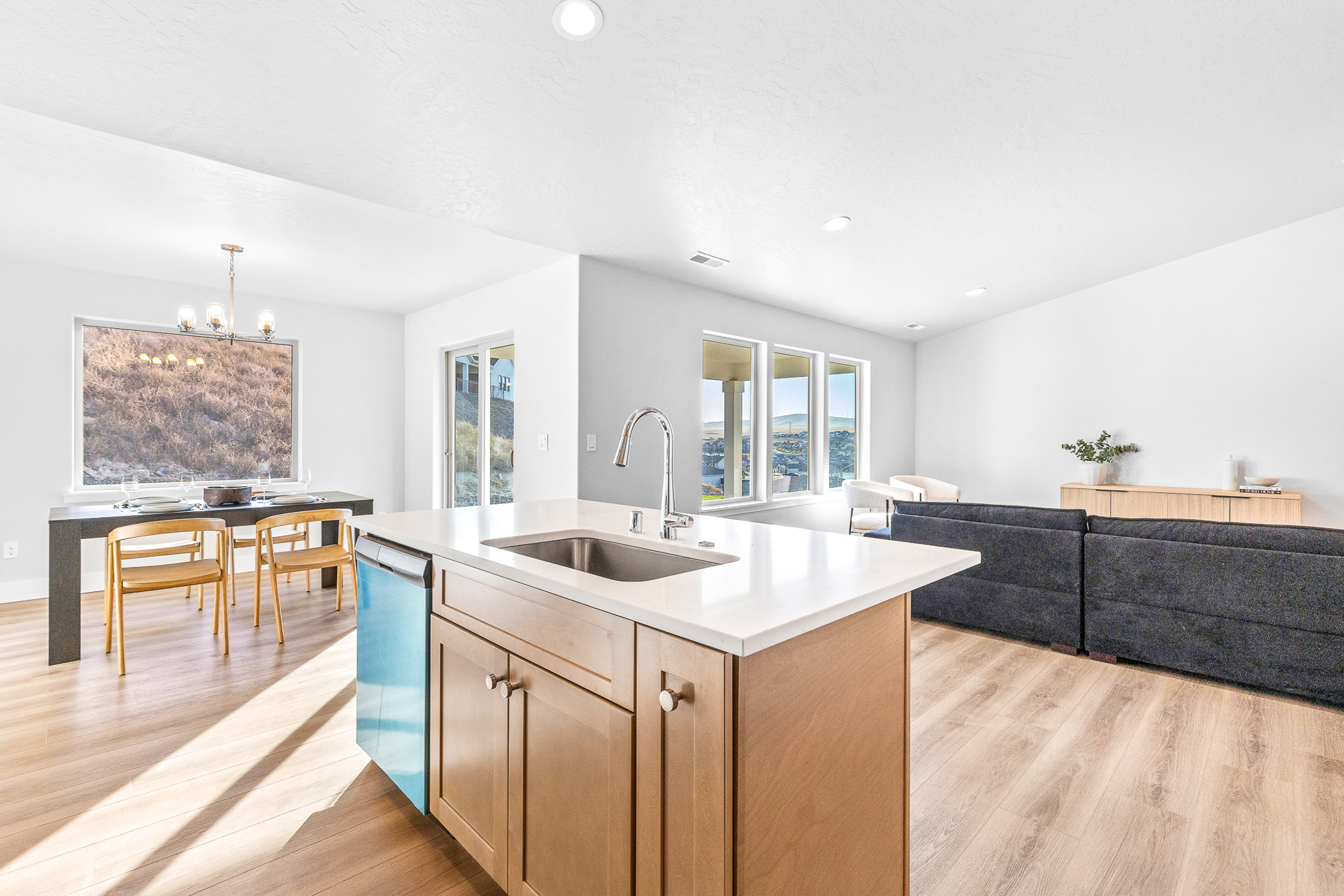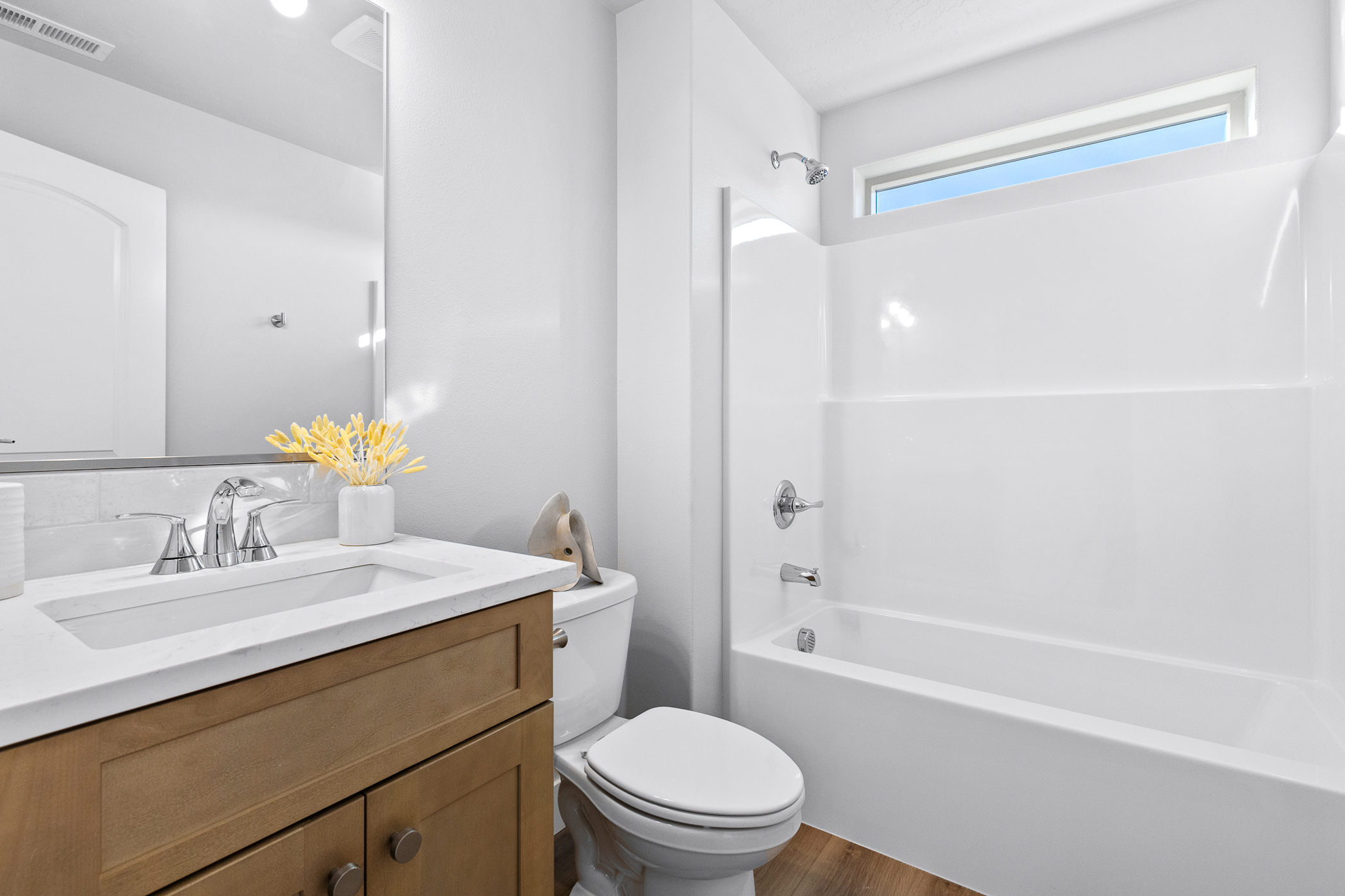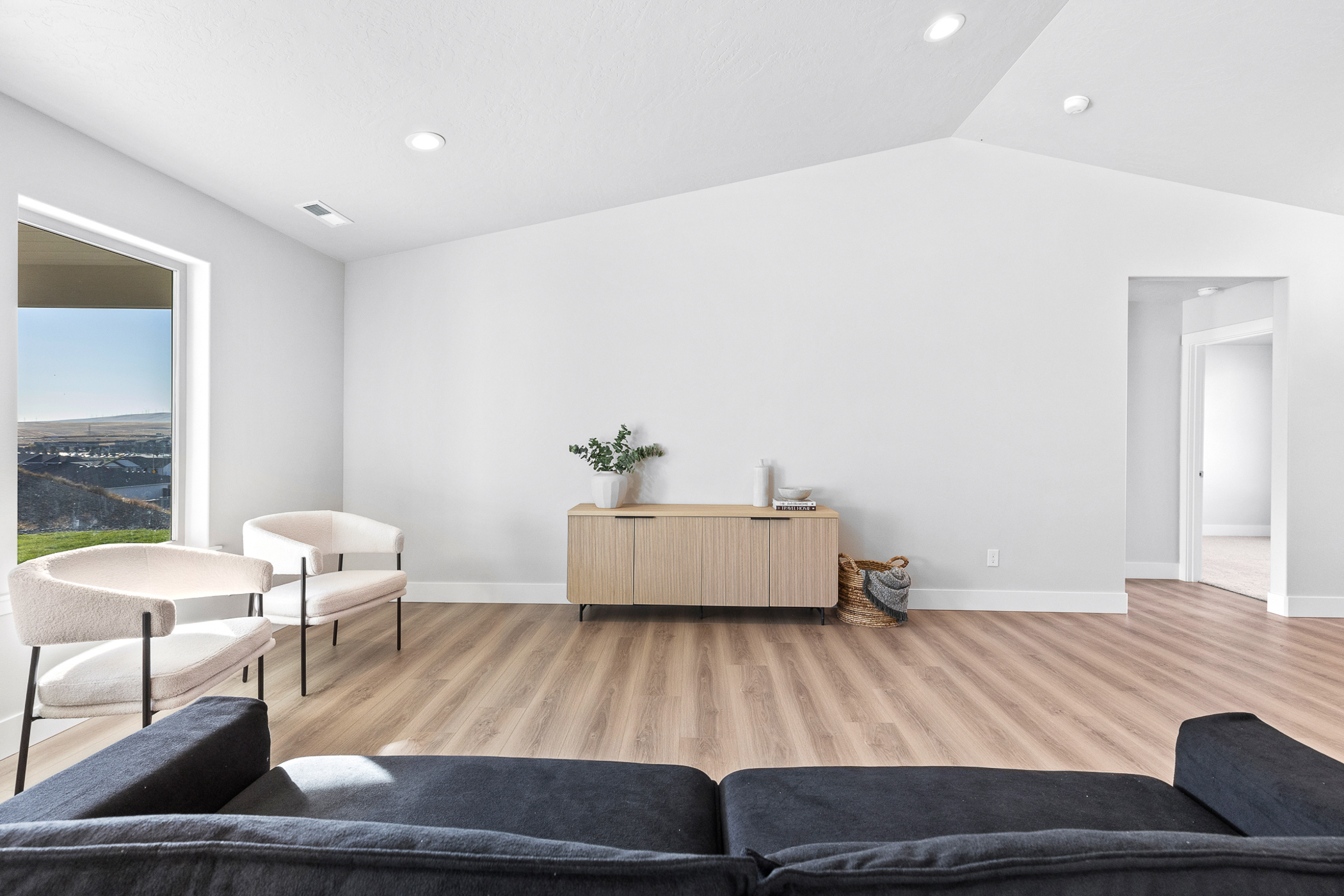 This stylish 1670 Plan single-story home blends comfort and functionality with an open-concept design perfect for modern living. The private master suite features a spacious layout, walk-in closet, and a sleek ensuite bath. Two additional bedrooms and a full bathroom are tucked away on the opposite side, ideal for family or guests. At the heart of the home is a vaulted great room that flows seamlessly into the kitchen and dining nook—perfect for entertaining. The kitchen boasts a central island, walk-in pantry, and plenty of counter space. A generous three-car garage including laundry space and extra storage. Out back, a cozy patio provides the perfect spot for outdoor dining, relaxing, or entertaining guests.