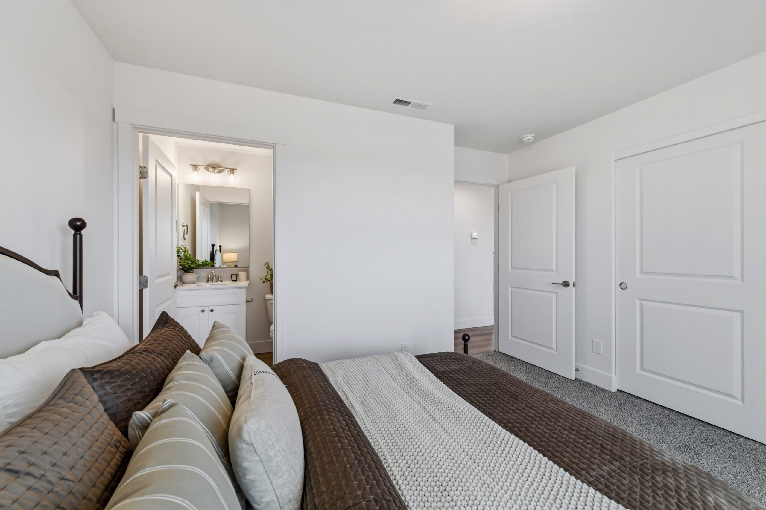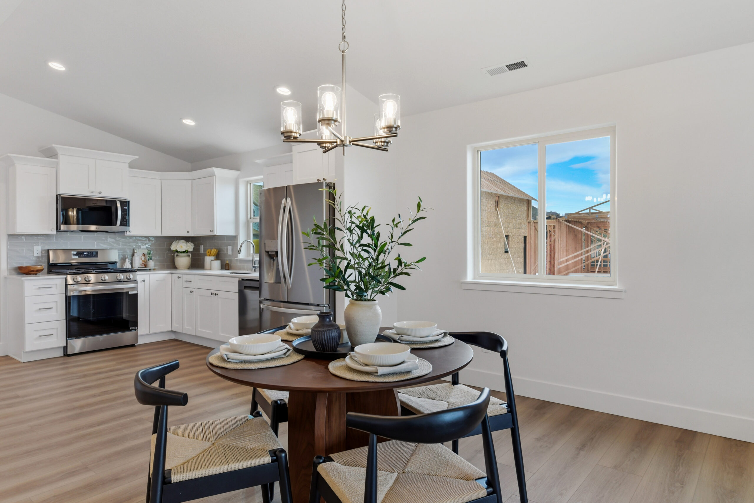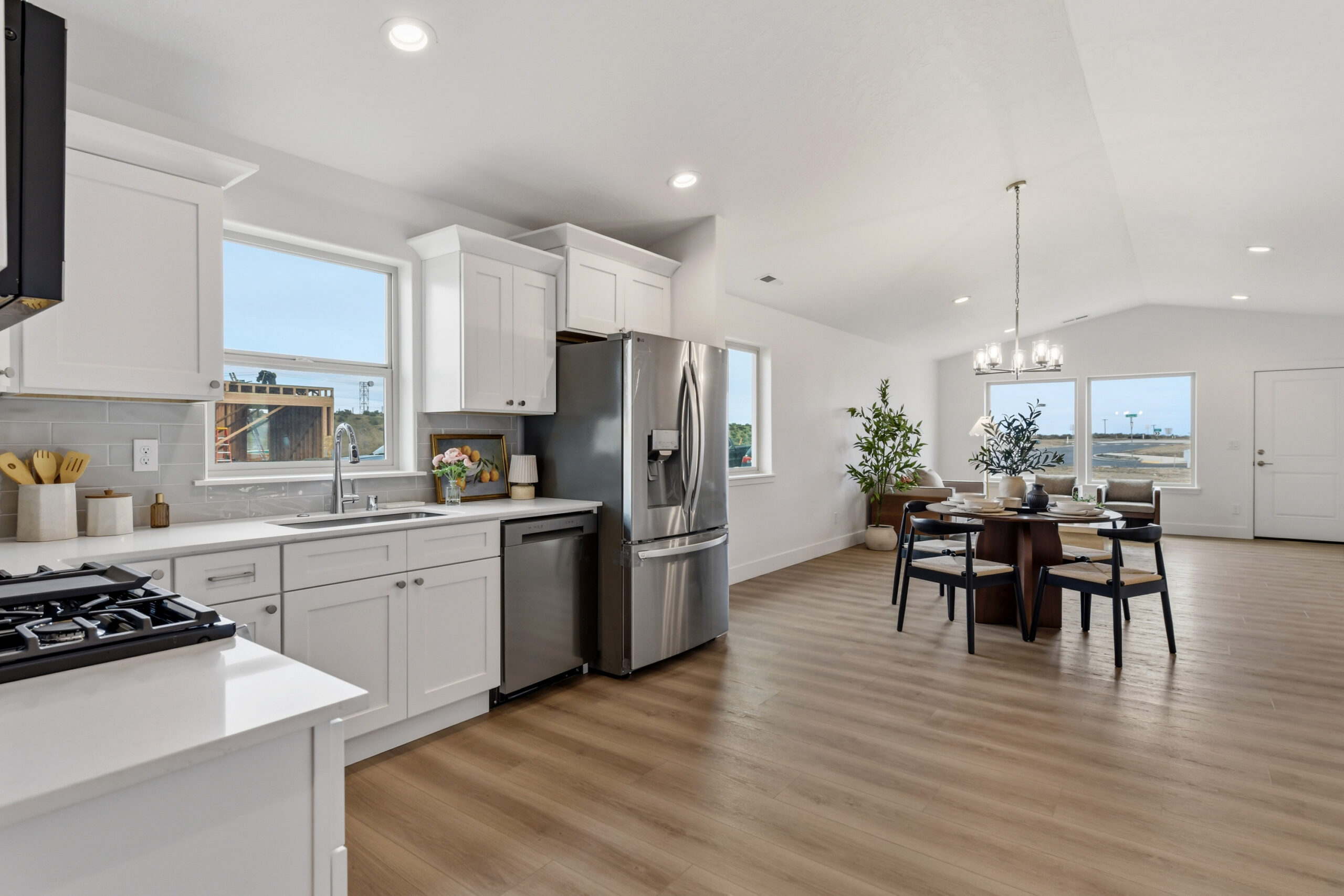 Step into this stunning 1,305 square foot home where smart design meets effortless style. With three spacious bedrooms and two beautifully appointed bathrooms—including a private ensuite in the primary—this layout offers the perfect blend of comfort and convenience. The heart of the home is a bright, open-concept living area that seamlessly connects the living room, dining space, and a sleek, modern kitchen complete with generous counter space and plenty of cabinetry. Just off the kitchen, you’ll find a functional laundry room and a two-car garage. Thoughtful touches like ample closet space, a hallway linen closet, and easy access to a cozy backyard patio make everyday living feel extraordinary. Perfect for first-time buyers, growing families, or anyone looking to enjoy stylish, efficient living in a home that truly has it all. This compact yet efficient layout maximizes every square foot while offering all the essentials for comfortable living.