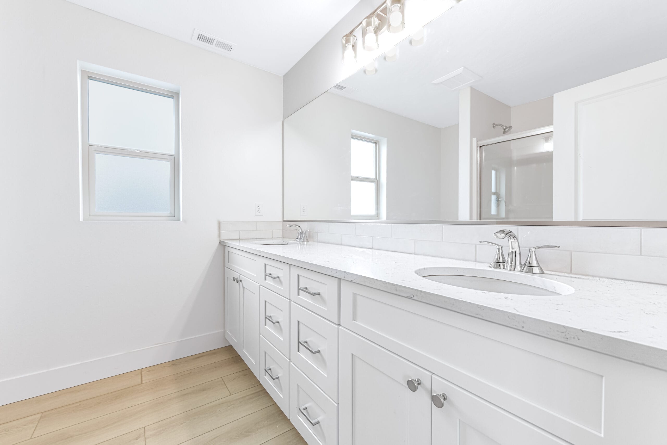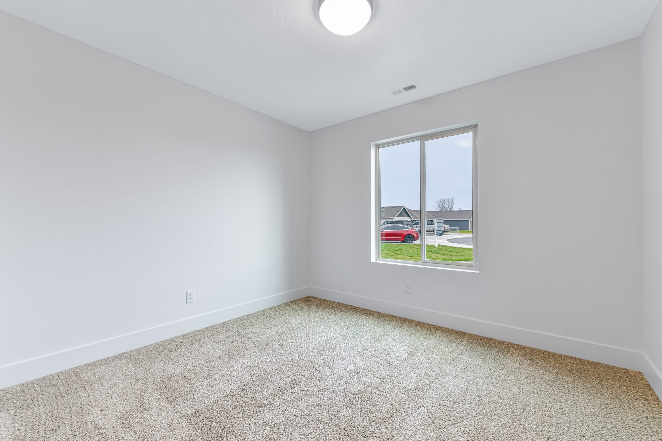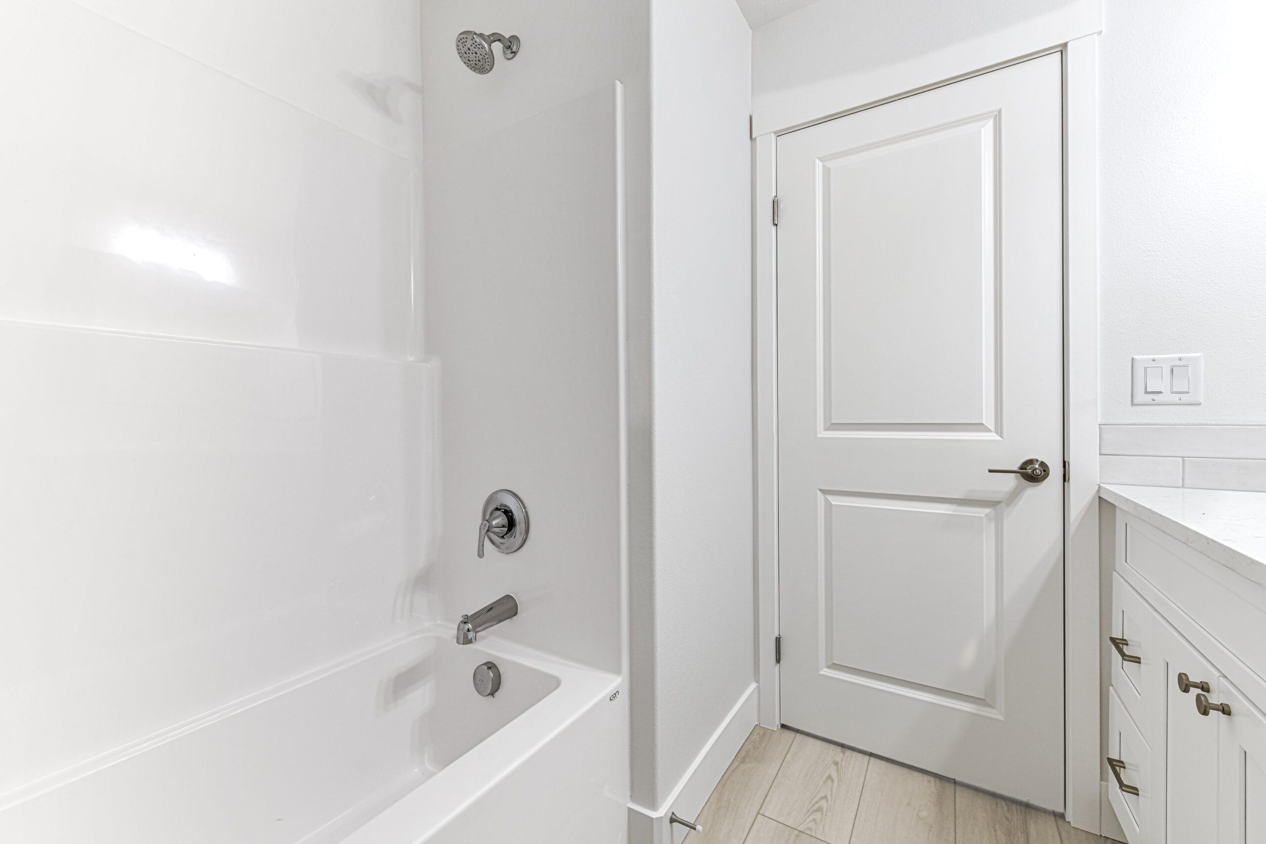 Retreat to the main suite featuring a dual vanity bathroom with options for a fiberglass shower or customizable tiled walls. Plus, indulge in the dream-worthy walk-in closet. At the opposite end, two bedrooms share a well-appointed bathroom.