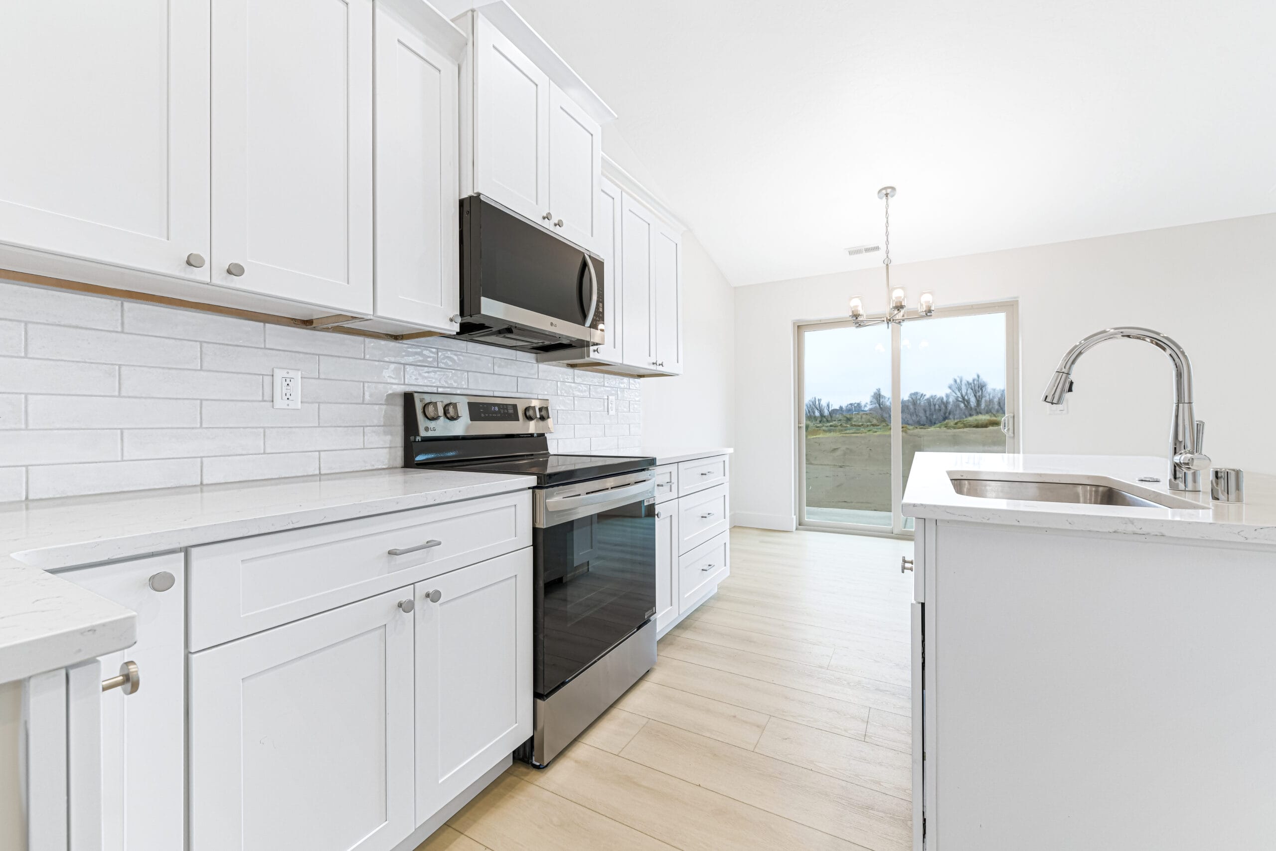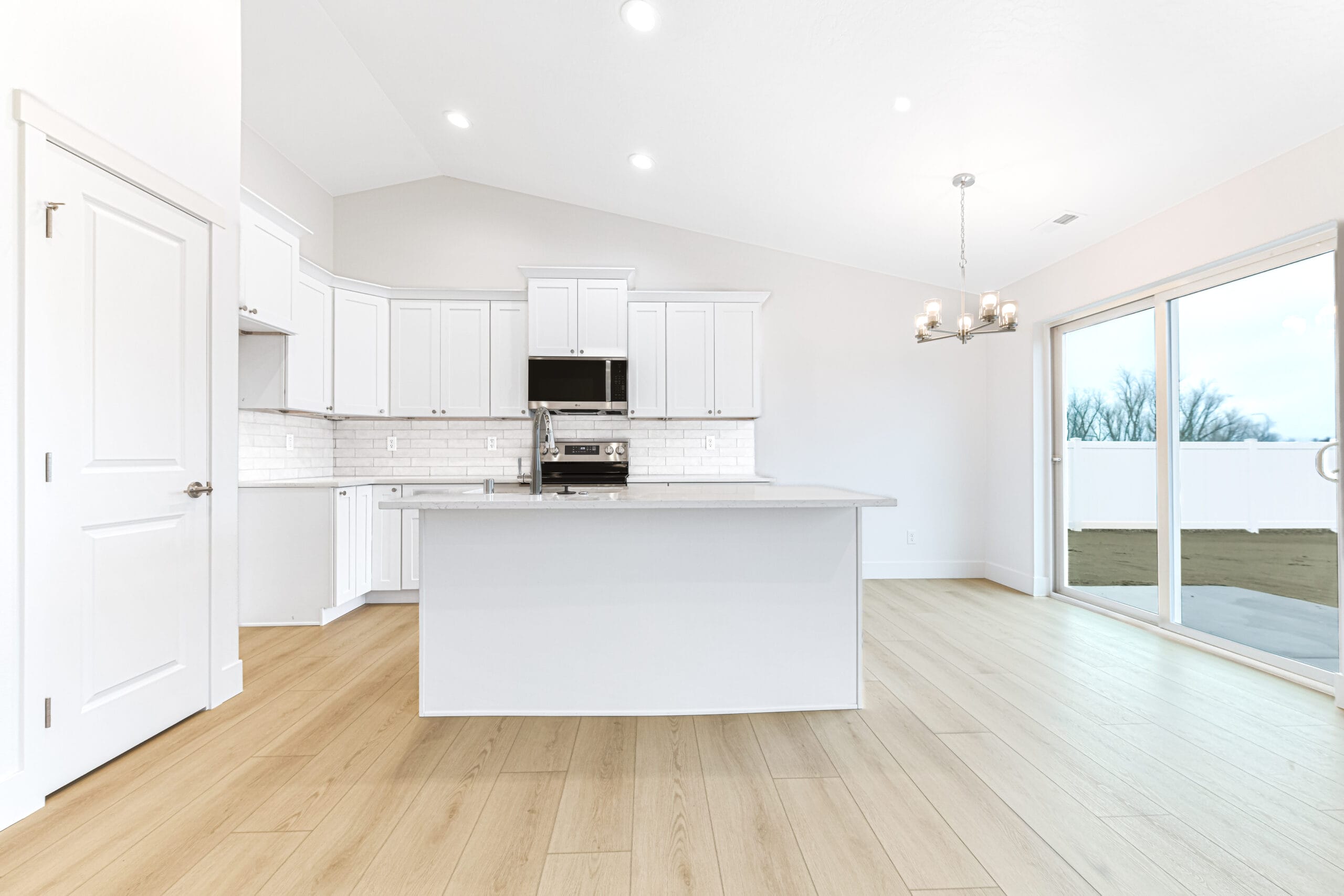 In the 1403 floor plan, you’ll be greeted by the grandeur of the high vaulted ceiling in the great room, seamlessly flowing into the spacious kitchen and dining area. Flooded with natural light from the large window and patio slide door, this space feels open and inviting. Conveniently located near the garage entrance, the laundry room offers ease and functionality.