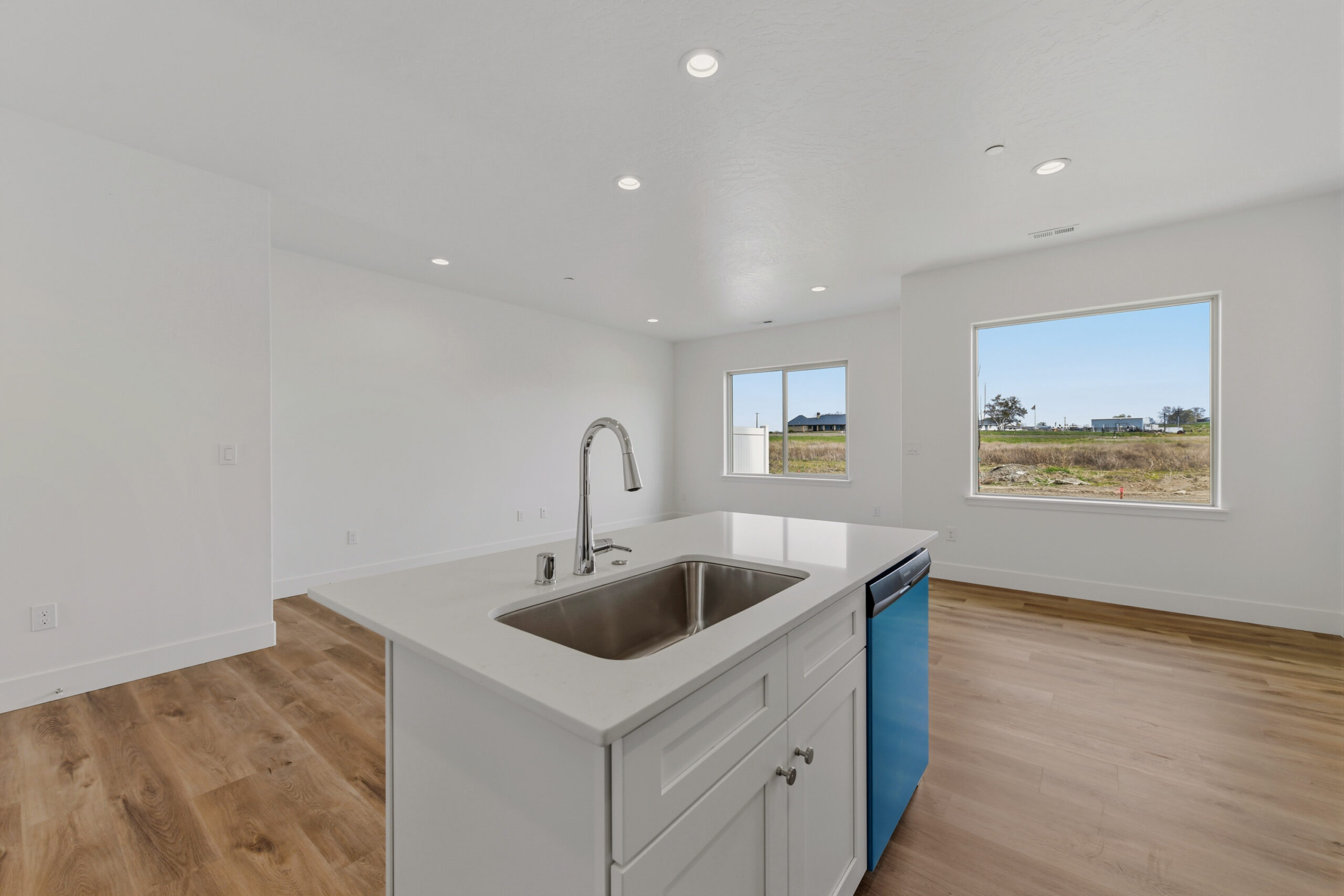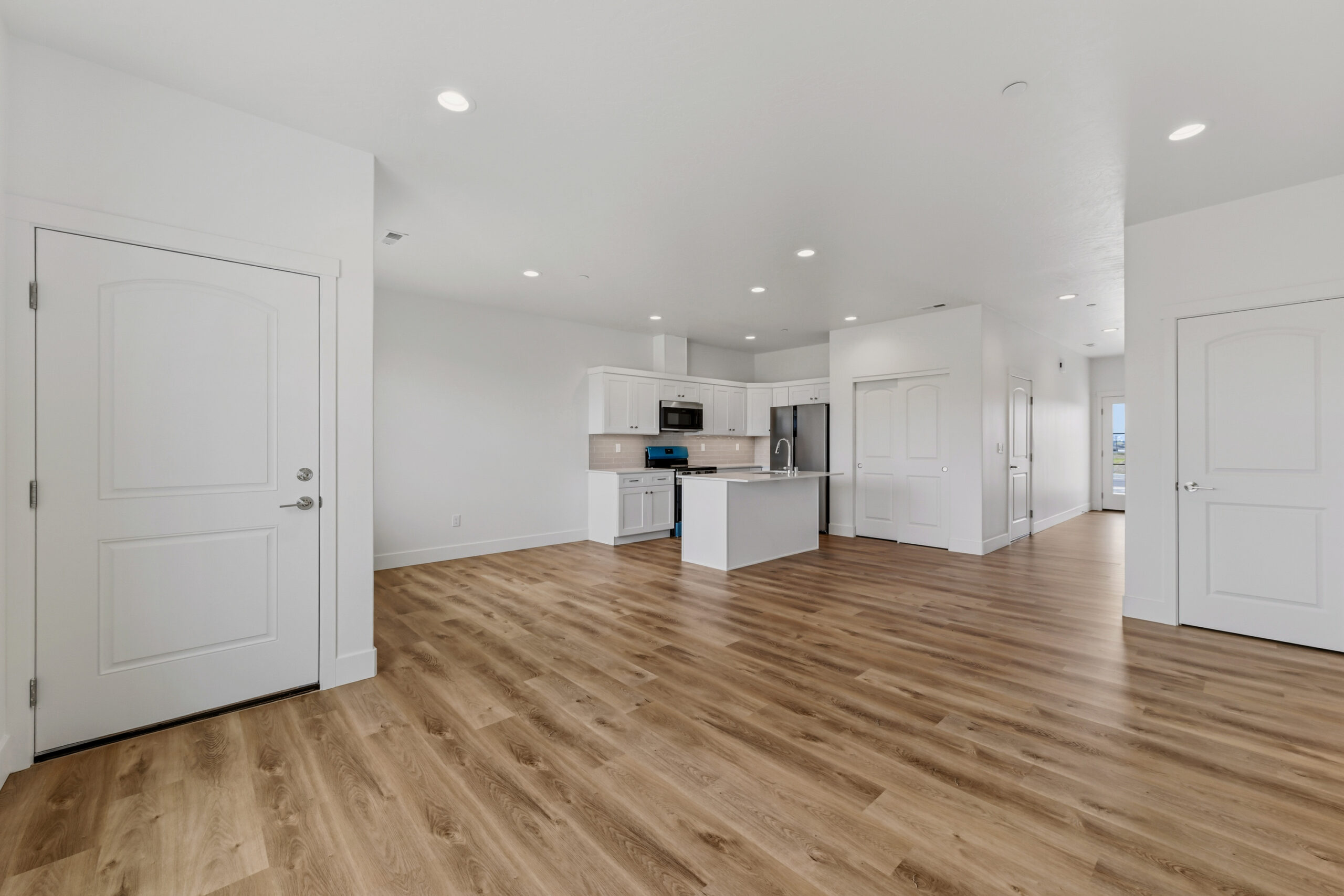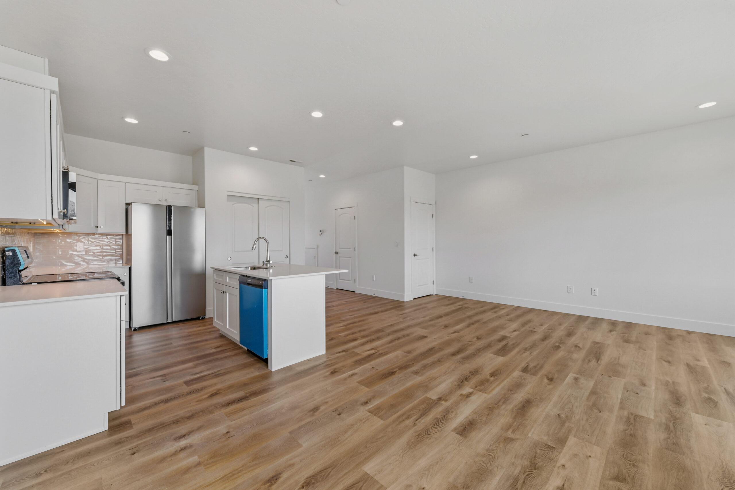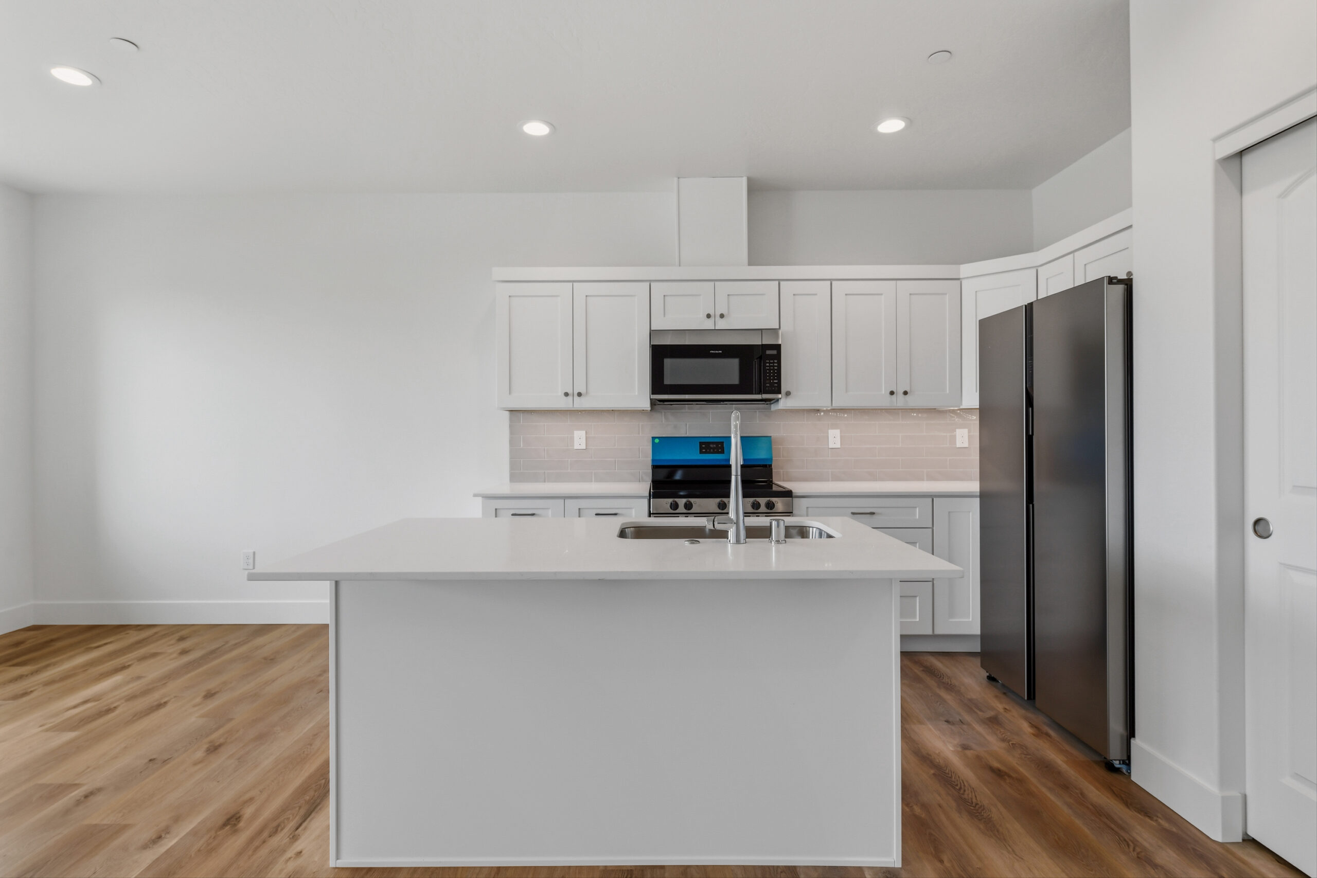 This well-designed 1,651 sq. ft. townhouse plan combines open living with smart functionality. The main floor features a welcoming entry with a conveniently located half bathroom and direct access to the garage. The open-concept kitchen, complete with a large island and ample cabinetry, flows seamlessly into the dining and living areas, creating an ideal space for both everyday living and entertaining. Sliding doors lead to a private outdoor patio, perfect for relaxing or dining al fresco.