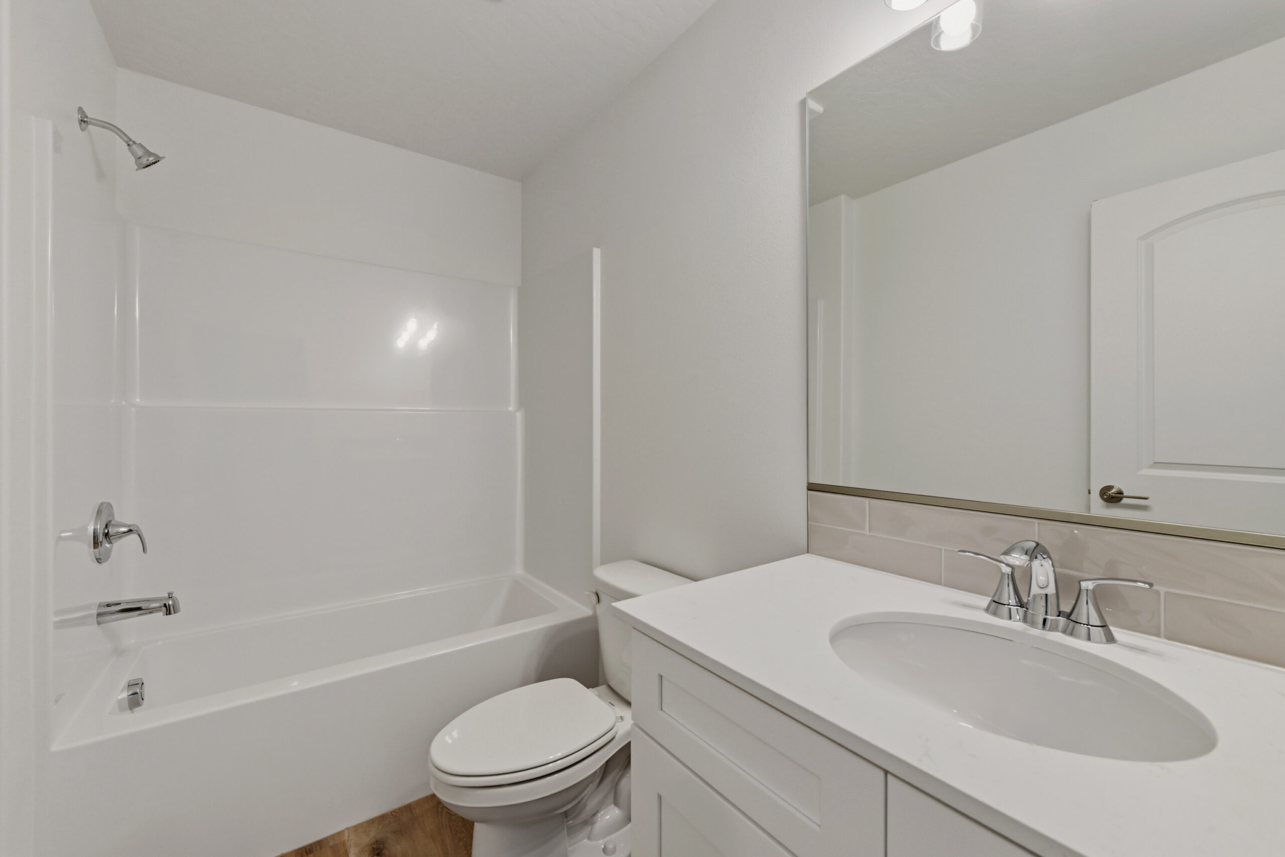 Upstairs, you’ll find three spacious bedrooms and two full bathrooms, including a thoughtfully designed primary suite with a dual-sink vanity, walk-in shower, and generous closet space. A centrally located laundry area adds to the home’s convenience, while two additional bedrooms share a well-appointed bathroom. This layout offers a perfect balance of comfort, privacy, and flexibility for modern lifestyles.