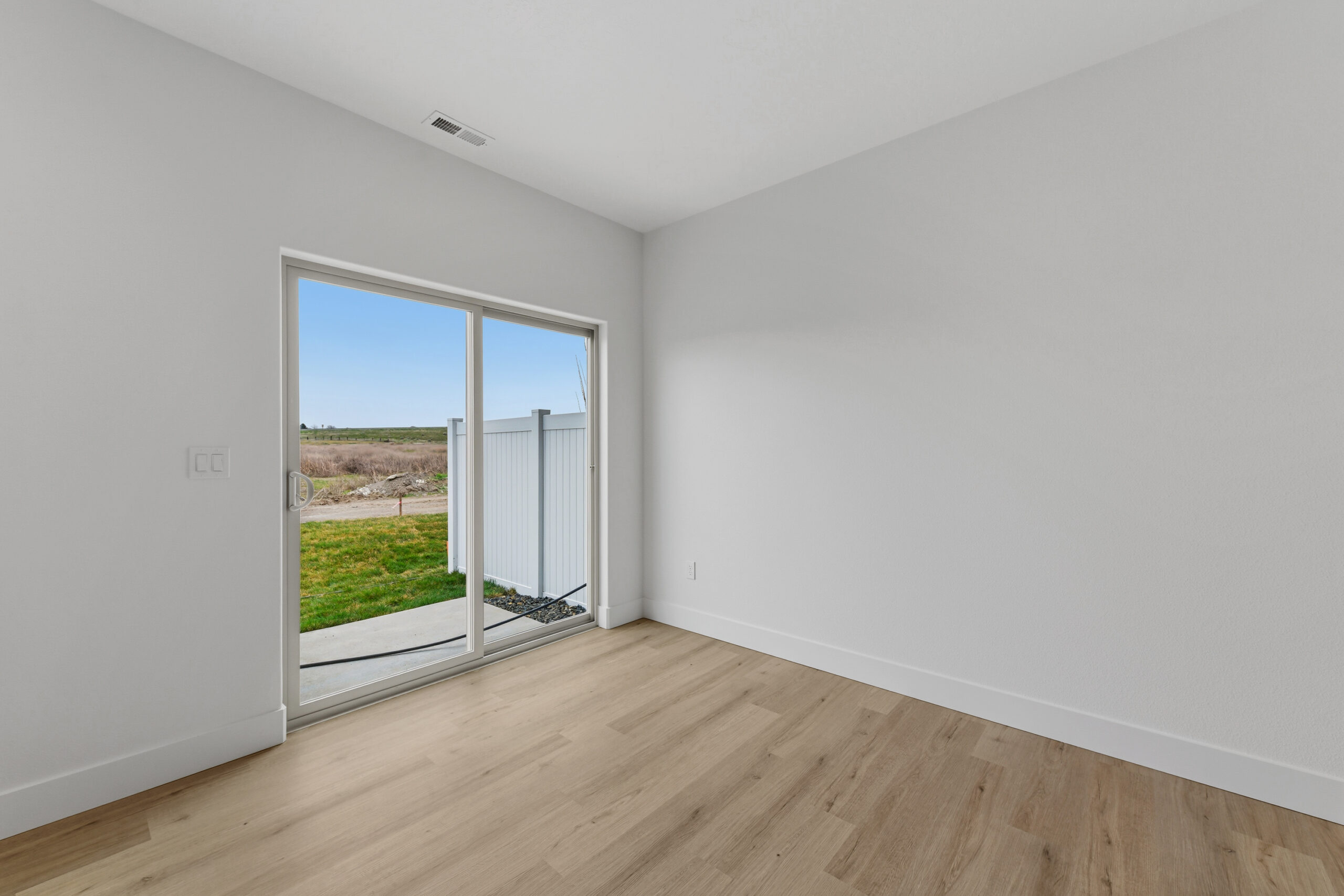 White vinyl fencing with one gate