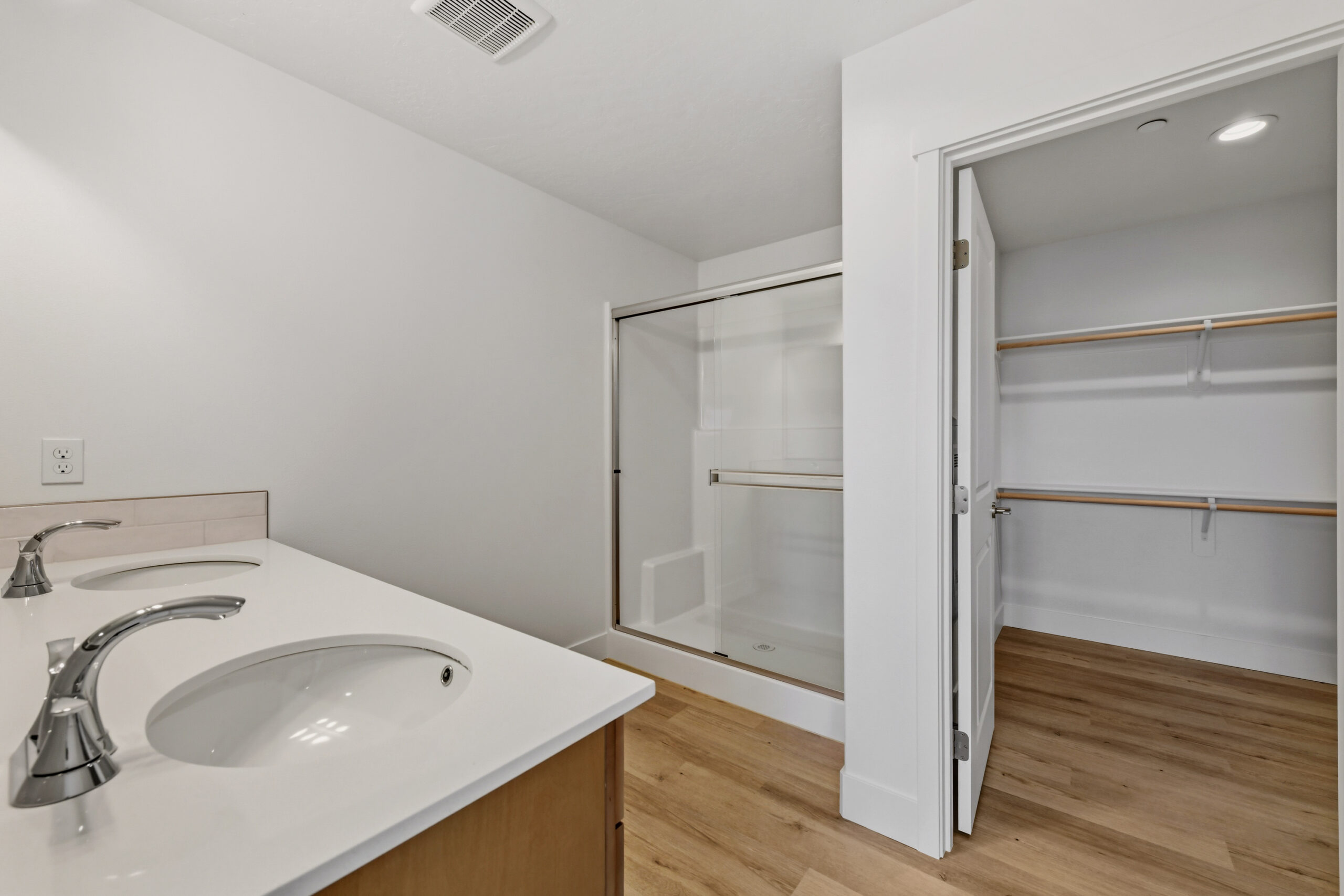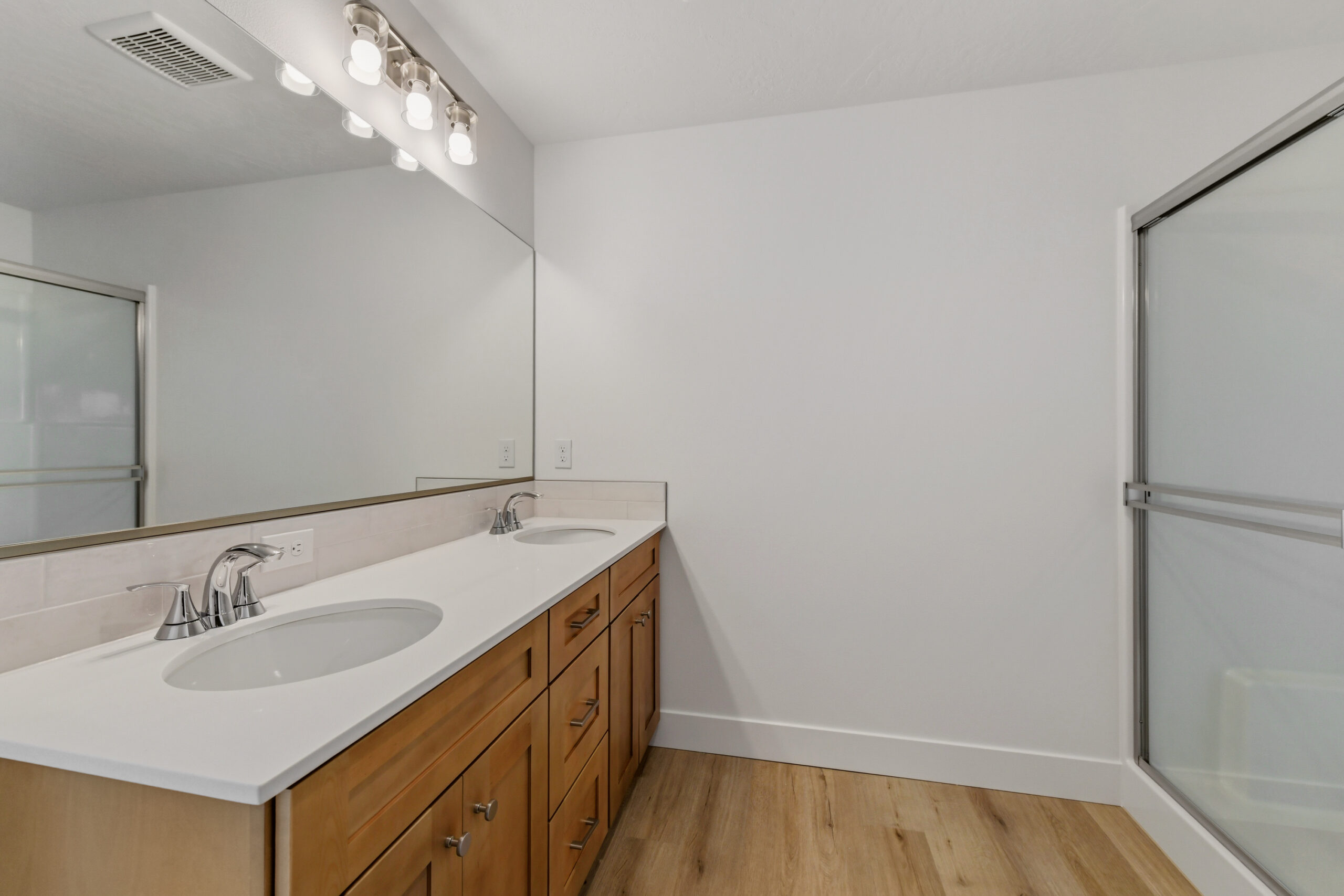 By-pass shower door in master bath