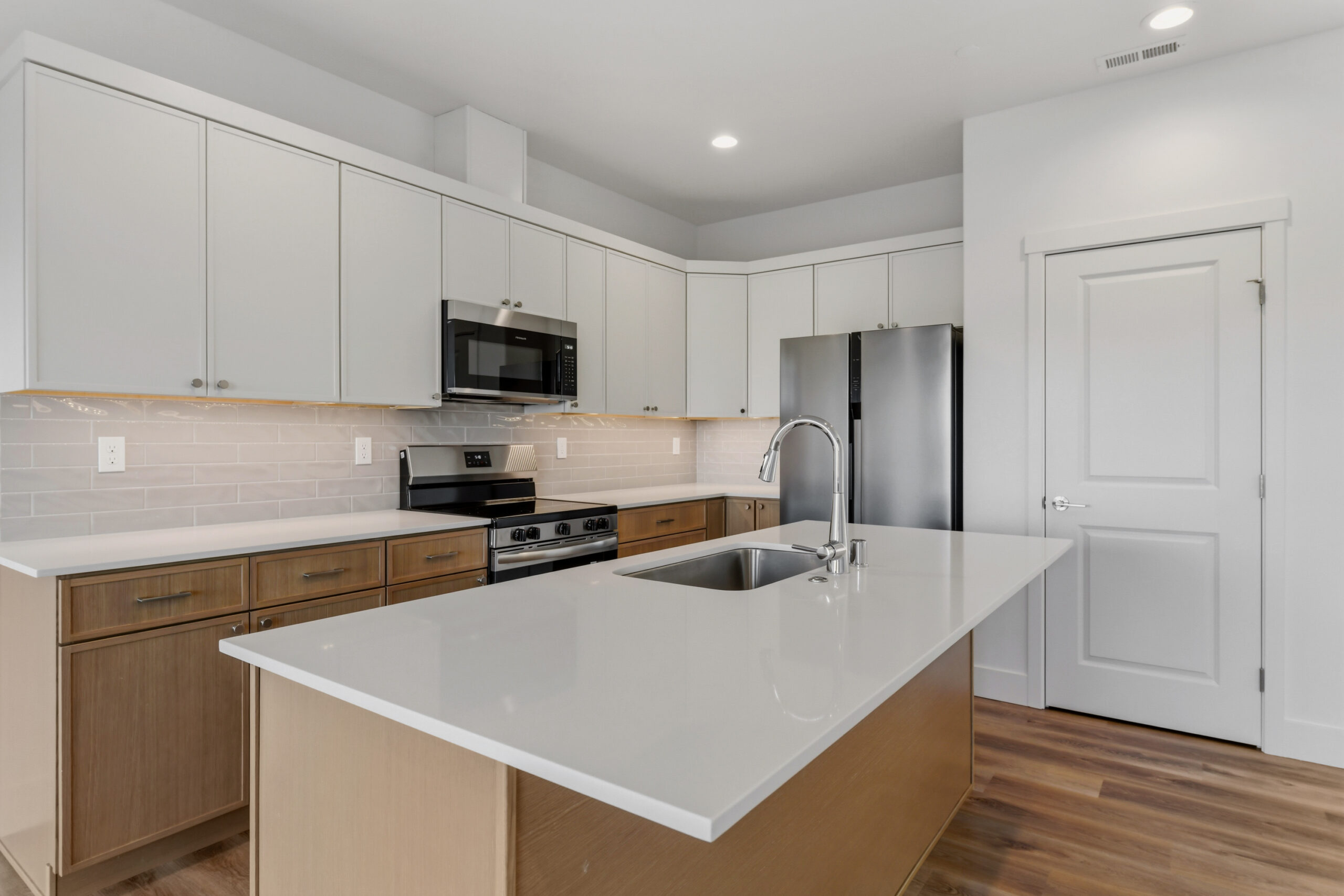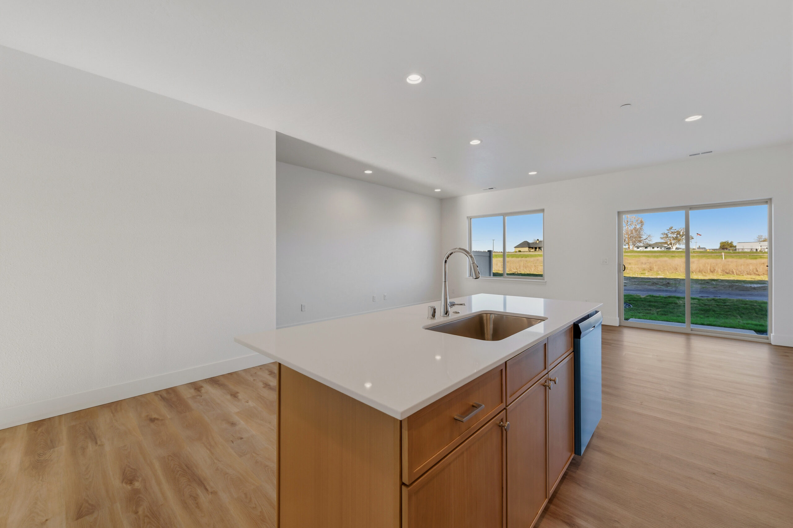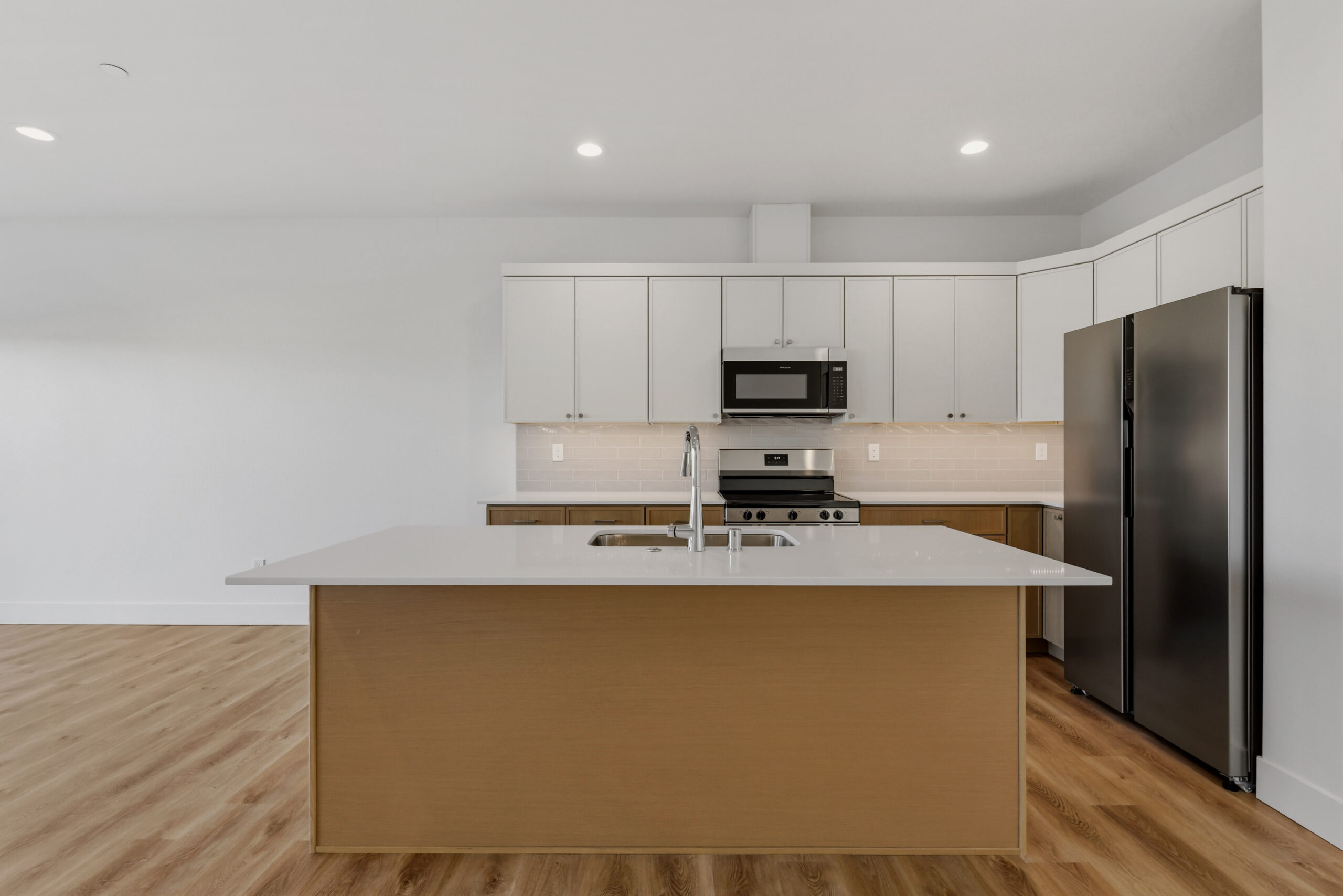 This thoughtfully designed 1,673 sq. ft. townhouse plan offers a spacious and functional layout ideal for modern living. Upon entry, a convenient half bathroom and access to the garage lead into an expansive open-concept main floor featuring a well-appointed kitchen with a large island, flowing seamlessly into the dining and living areas—perfect for everyday living and entertaining. Sliding doors open to a private outdoor patio, extending the living space.