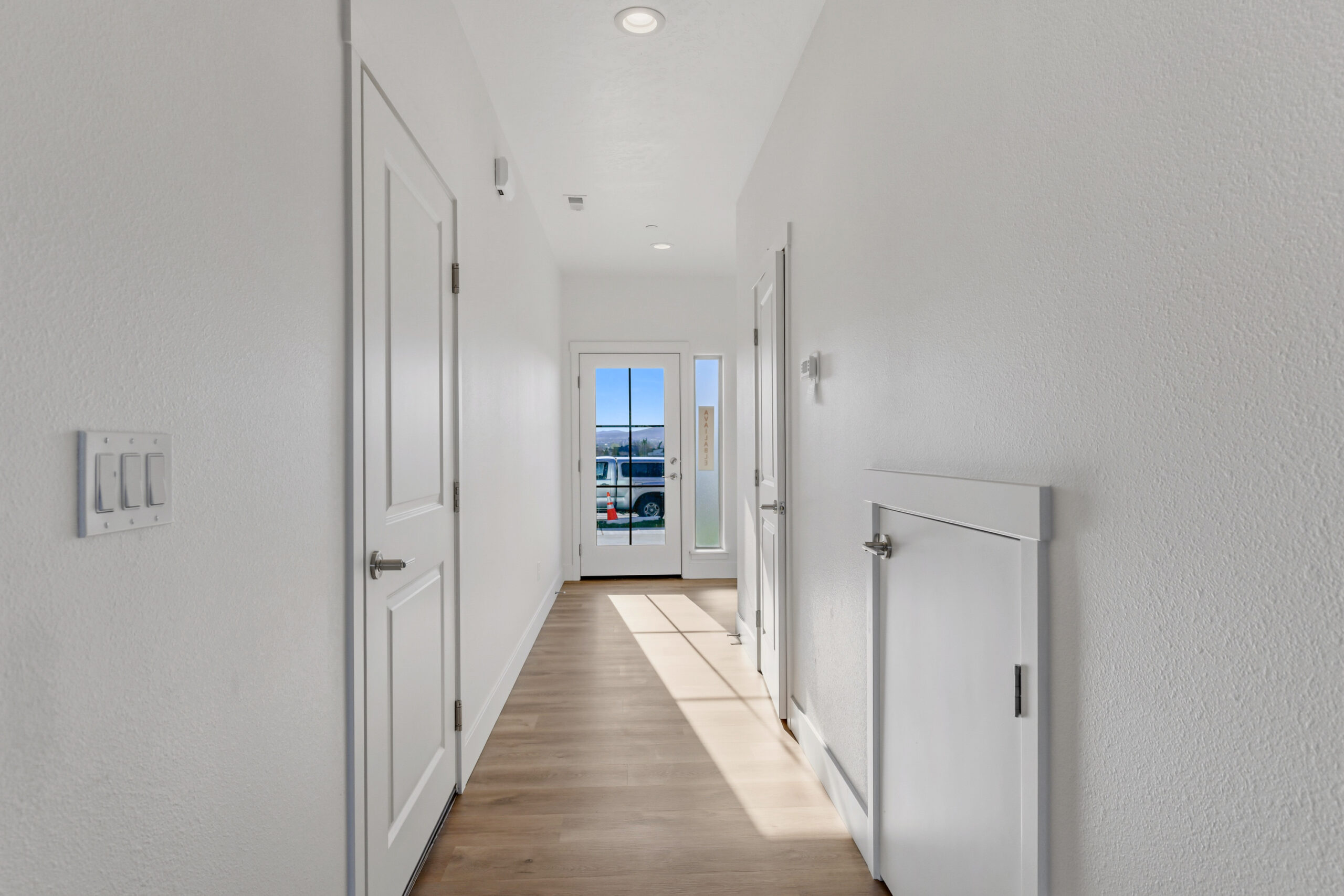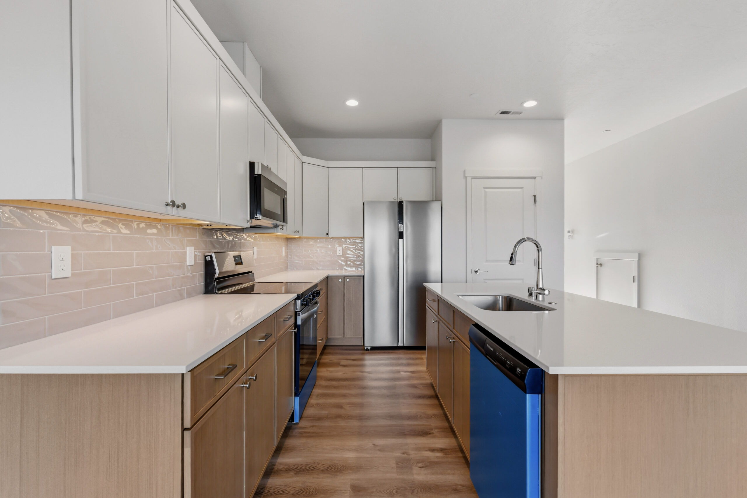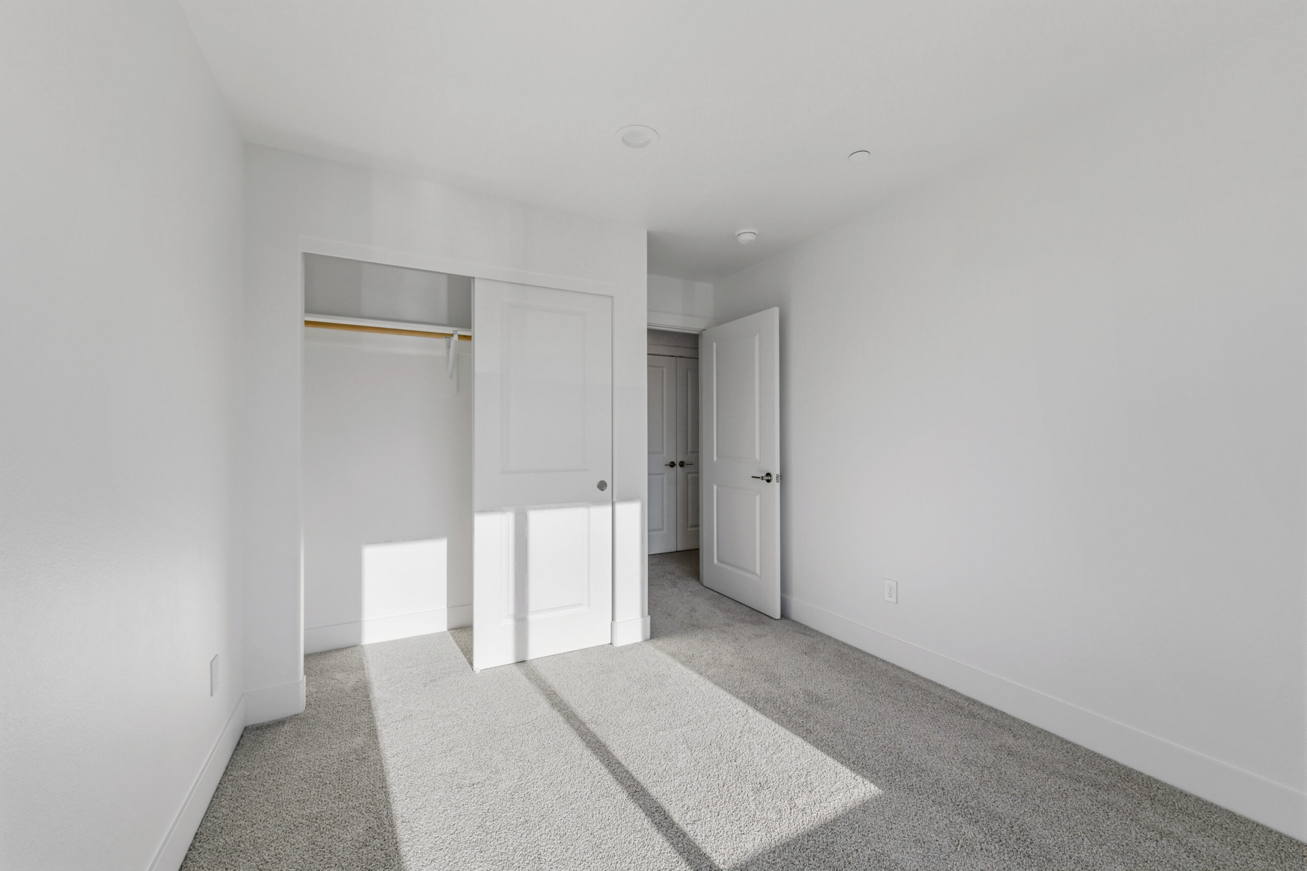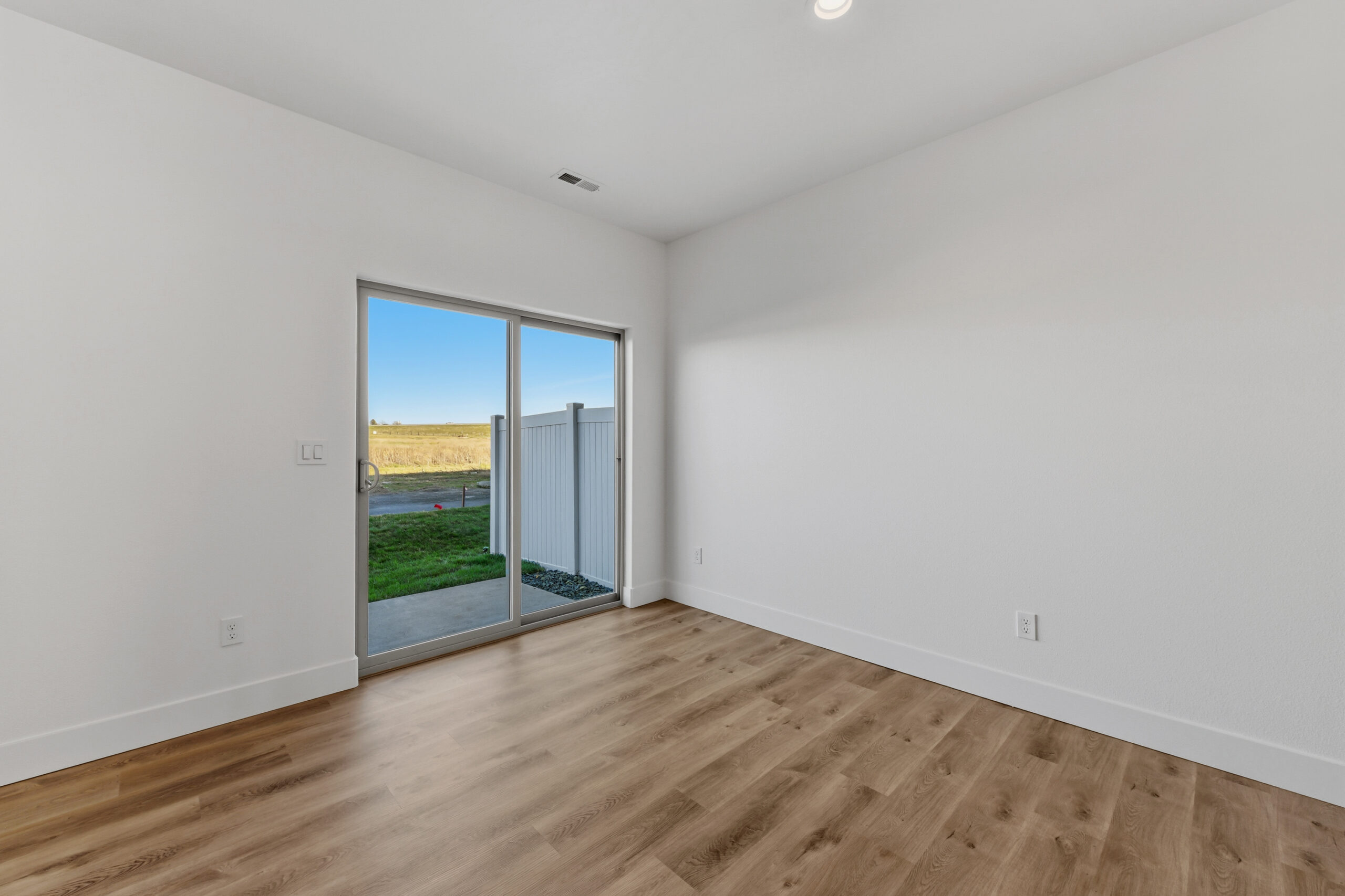 This thoughtfully designed 1,673 sq. ft. townhouse plan offers a spacious and functional layout ideal for modern living. Upon entry, a convenient half bathroom and access to the garage lead into an expansive open-concept main floor featuring a well-appointed kitchen with a large island, flowing seamlessly into the dining and living areas—perfect for everyday living and entertaining. Sliding doors open to a private outdoor patio, extending the living space.