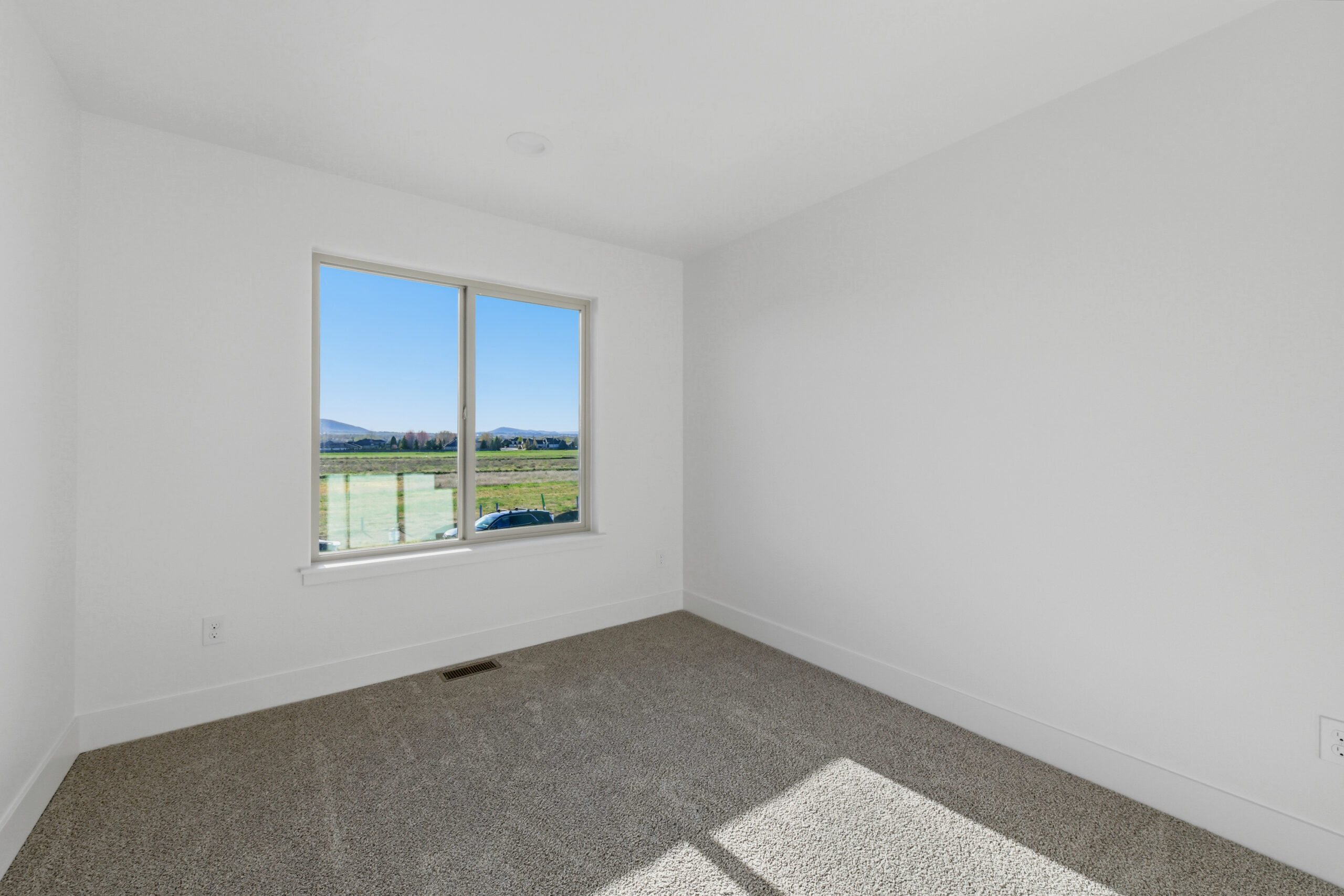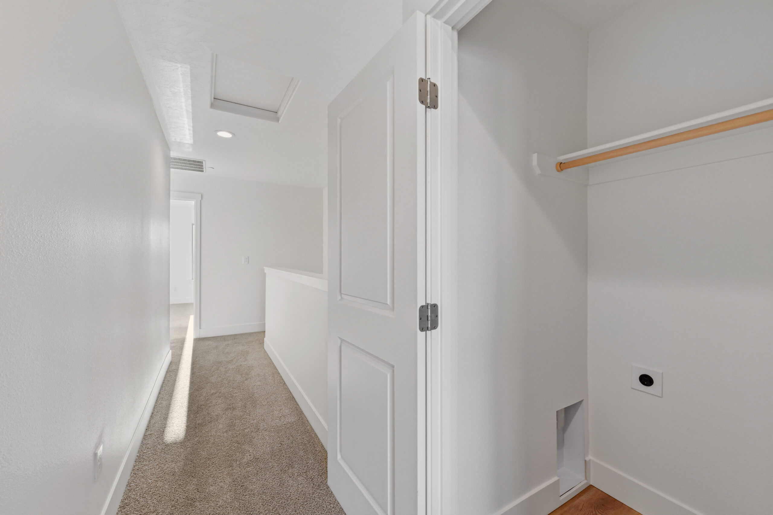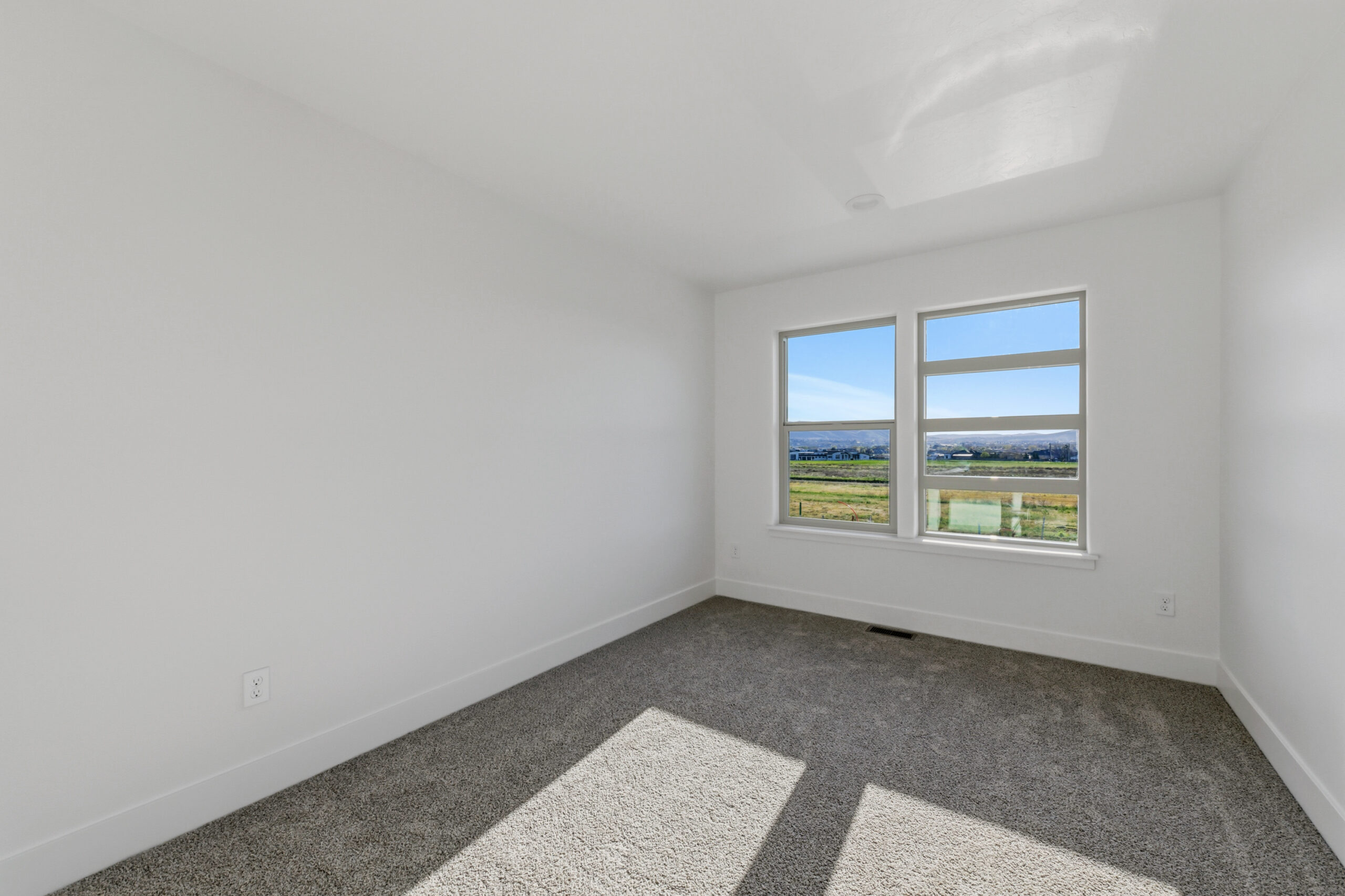 Upstairs, the second floor features three bedrooms and two full bathrooms, including a generously sized primary suite complete with a dual-sink vanity, walk-in shower, and ample closet space. Two additional bedrooms share a full bathroom, while a centrally located laundry area adds everyday convenience. This plan balances open living with private retreats, creating a home that’s both versatile and inviting.