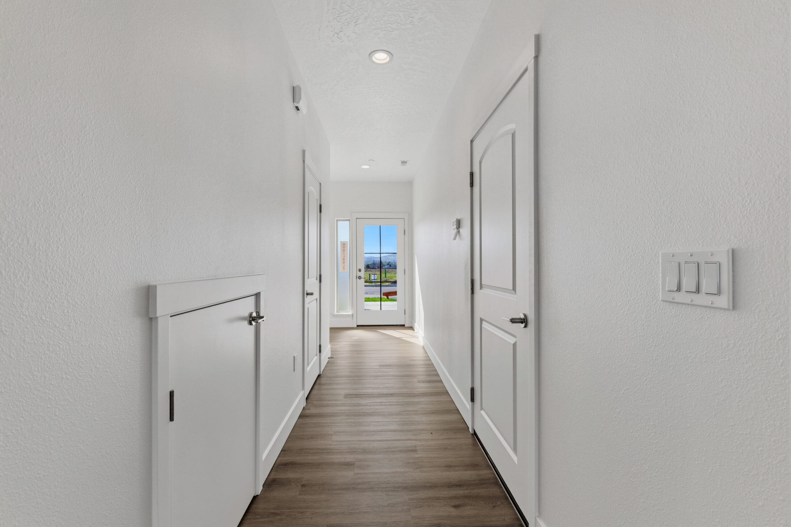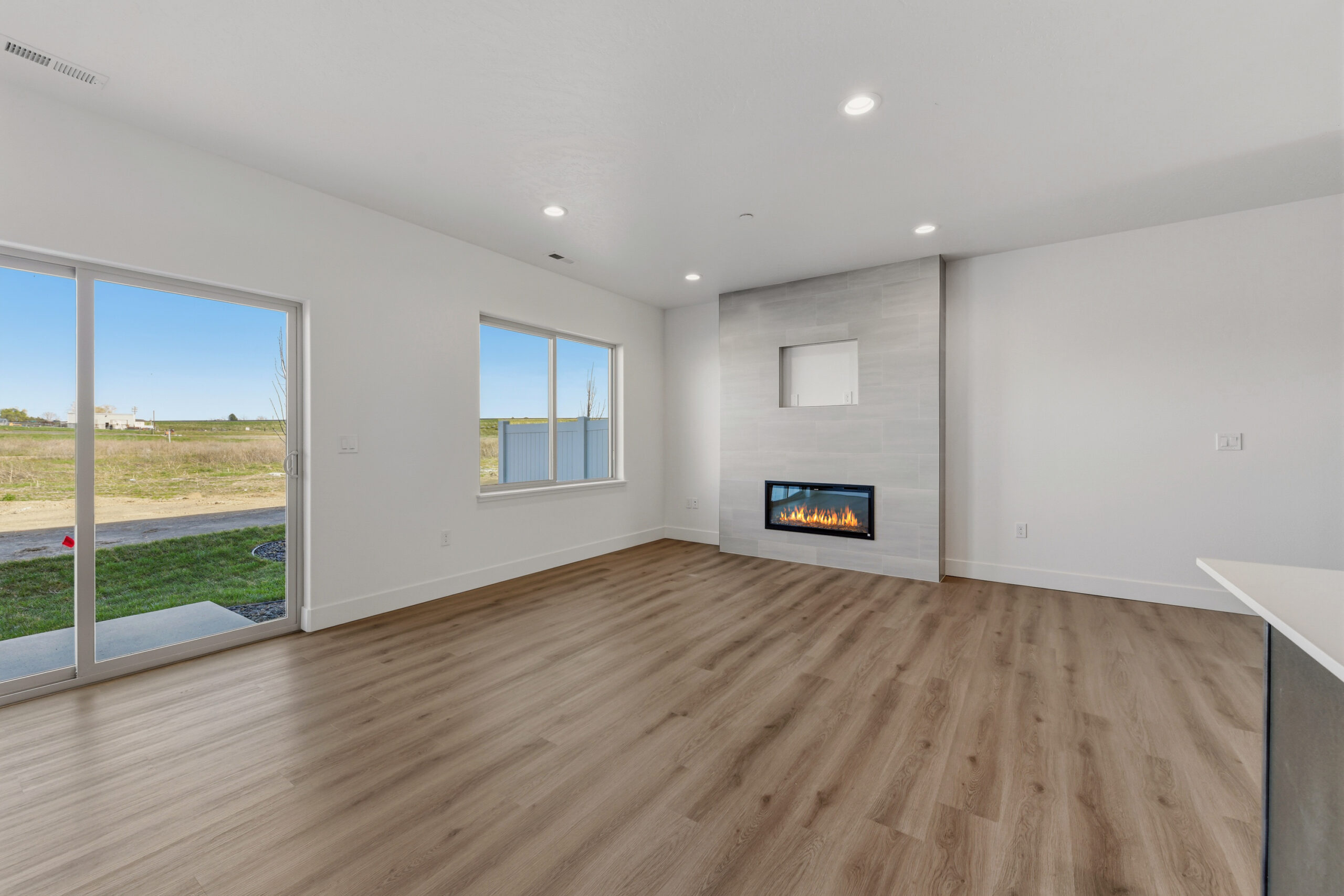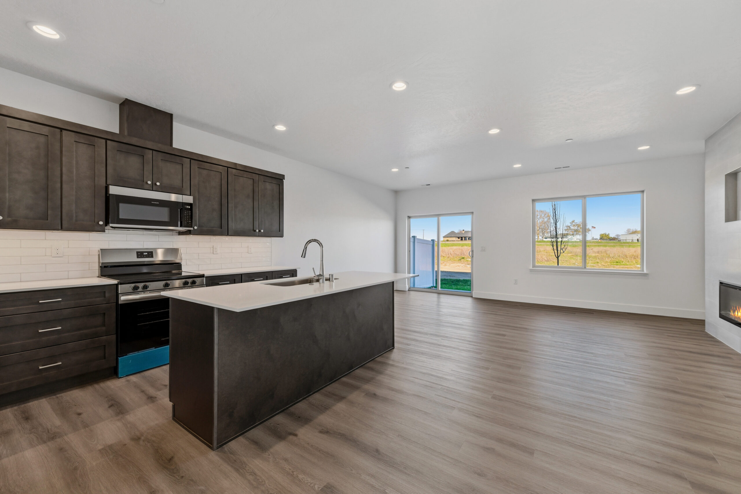 This well-designed 1,651 sq. ft. townhouse plan combines open living with smart functionality. The main floor features a welcoming entry with a conveniently located half bathroom and direct access to the garage. The open-concept kitchen, complete with a large island and ample cabinetry, flows seamlessly into the dining and living areas, creating an ideal space for both everyday living and entertaining. Sliding doors lead to a private outdoor patio, perfect for relaxing or dining al fresco.
