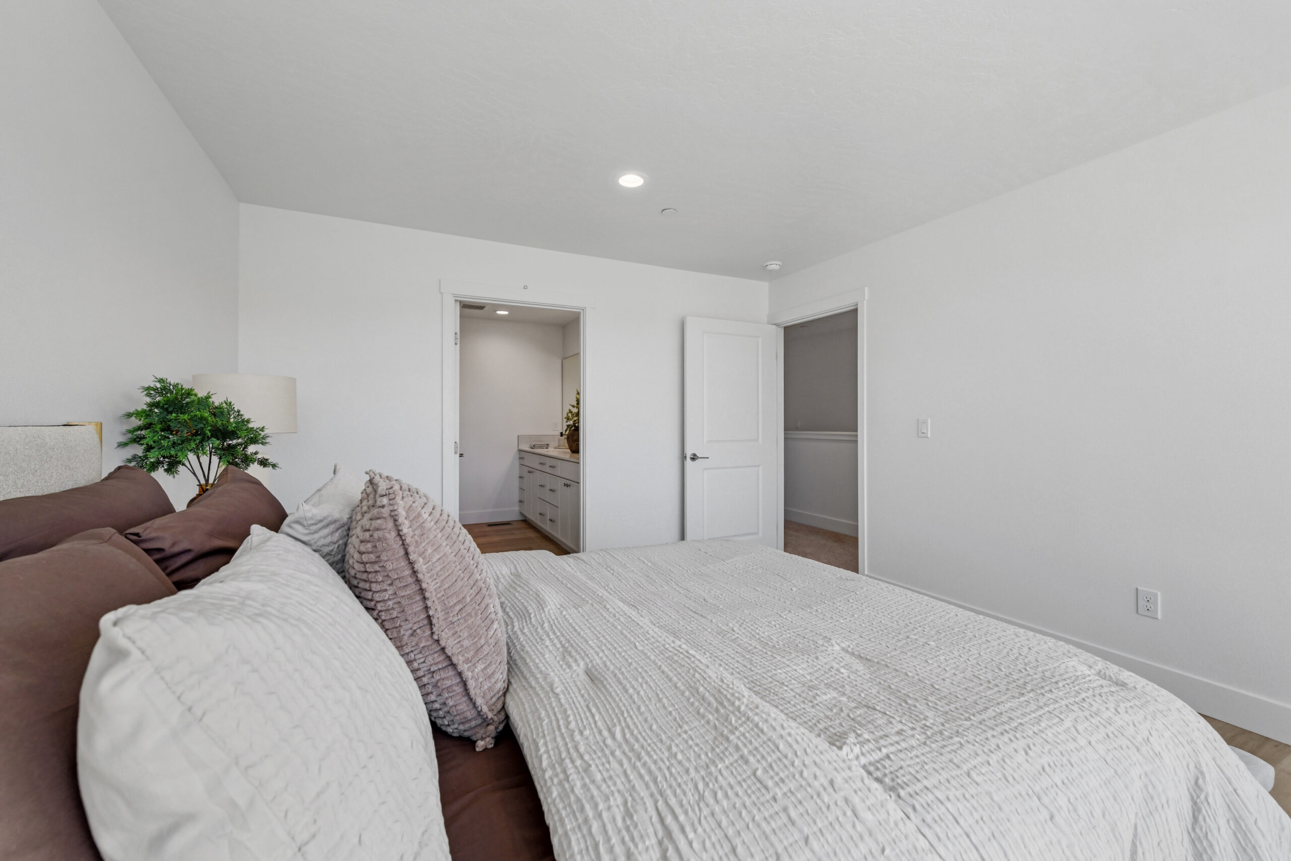 Upstairs, you’ll find three spacious bedrooms and two full bathrooms, including a thoughtfully designed primary suite with a dual-sink vanity, walk-in shower, and generous closet space. A centrally located laundry area adds to the home’s convenience, while two additional bedrooms share a well-appointed bathroom. This layout offers a perfect balance of comfort, privacy, and flexibility for modern lifestyles.