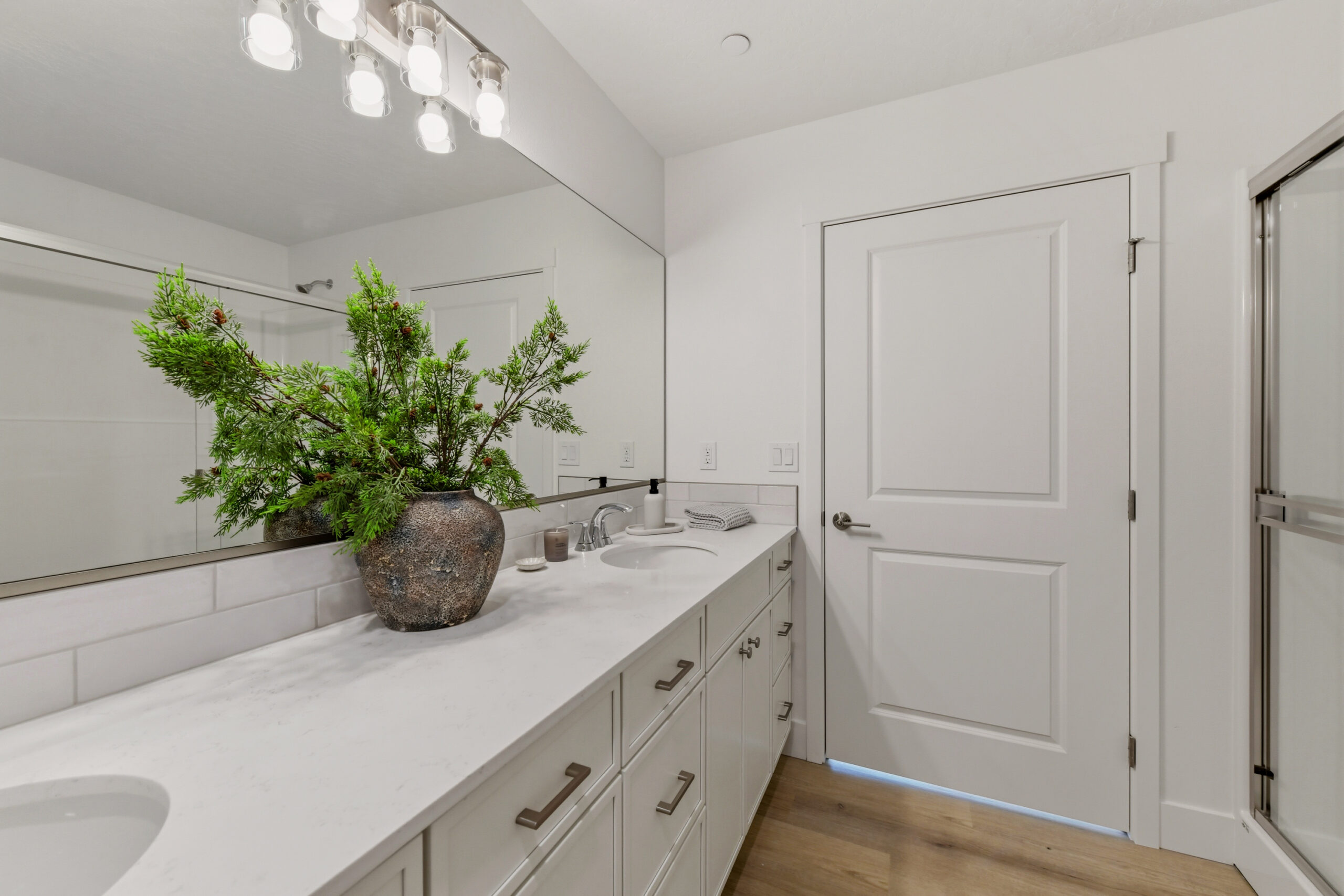 By-pass shower door in master bath