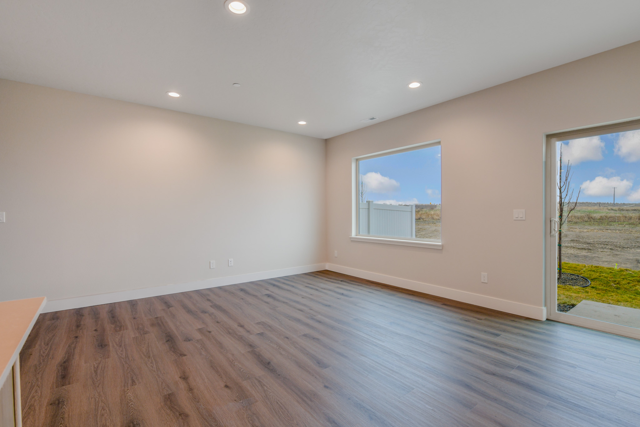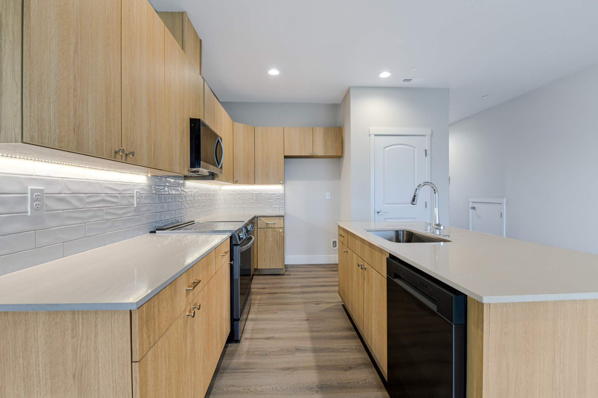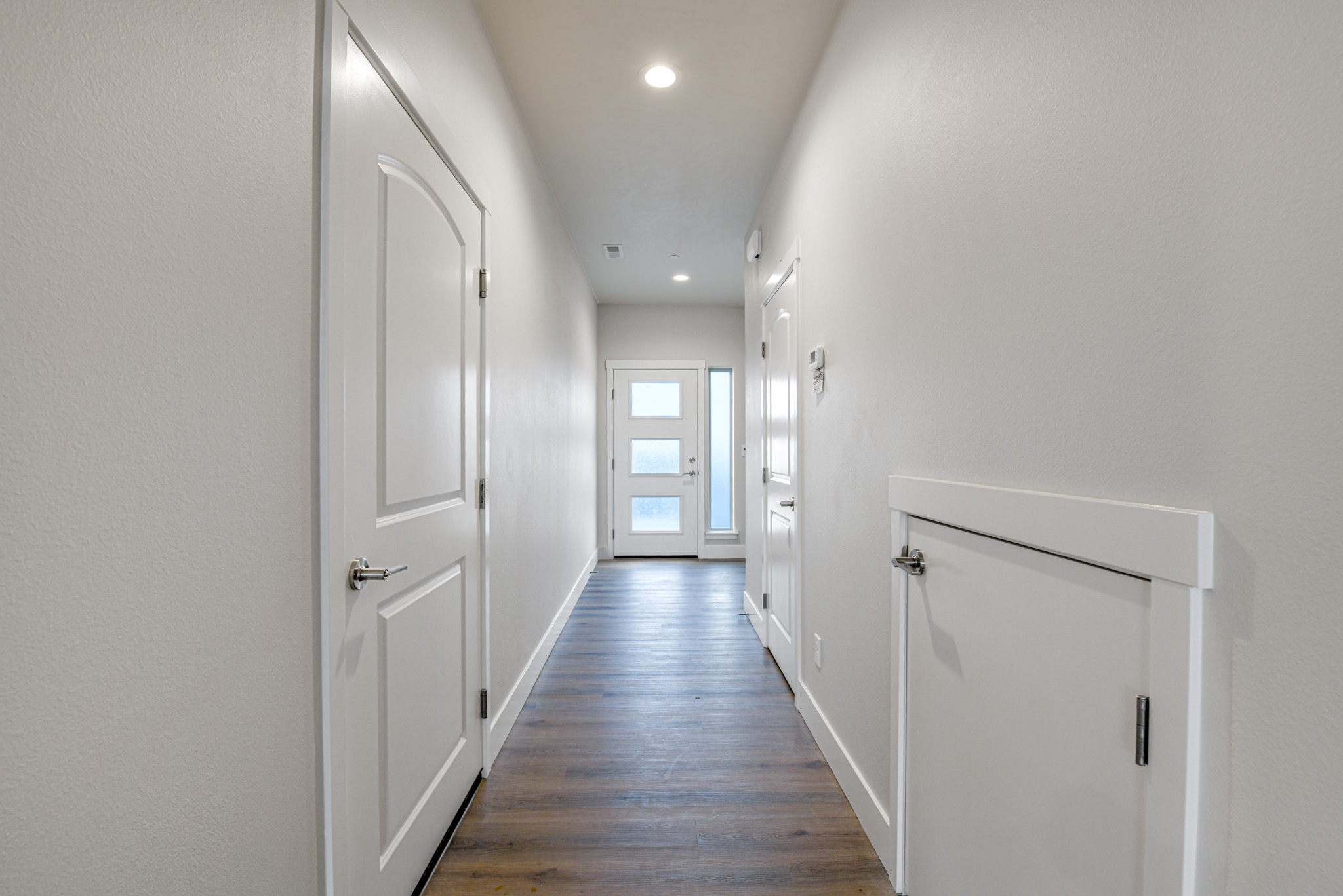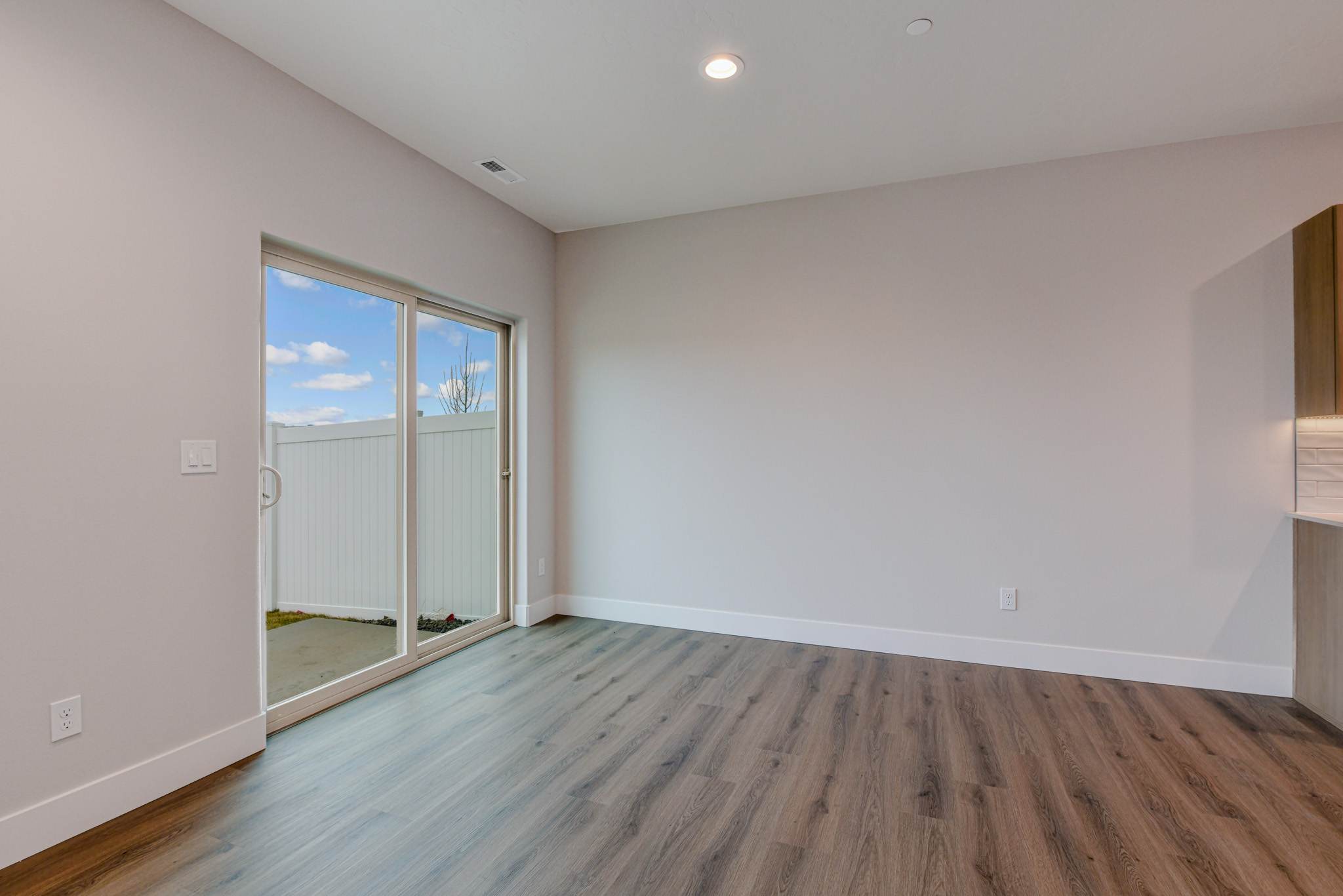 This thoughtfully designed 1,673 sq. ft. townhouse plan offers a spacious and functional layout ideal for modern living. Upon entry, a convenient half bathroom and access to the garage lead into an expansive open-concept main floor featuring a well-appointed kitchen with a large island, flowing seamlessly into the dining and living areas—perfect for everyday living and entertaining. Sliding doors open to a private outdoor patio, extending the living space.