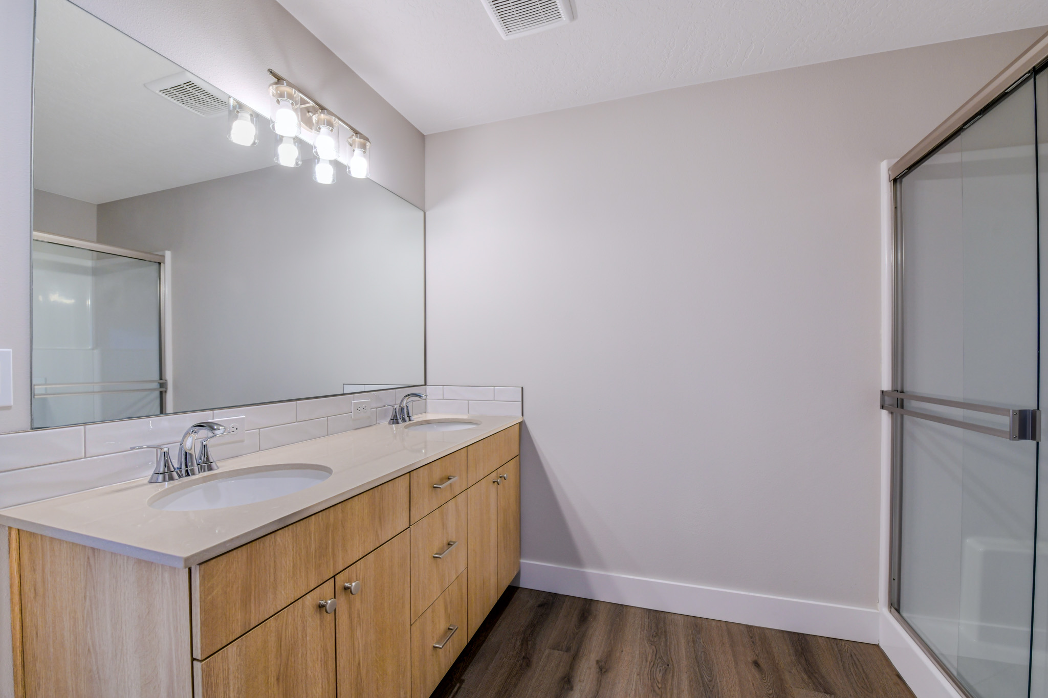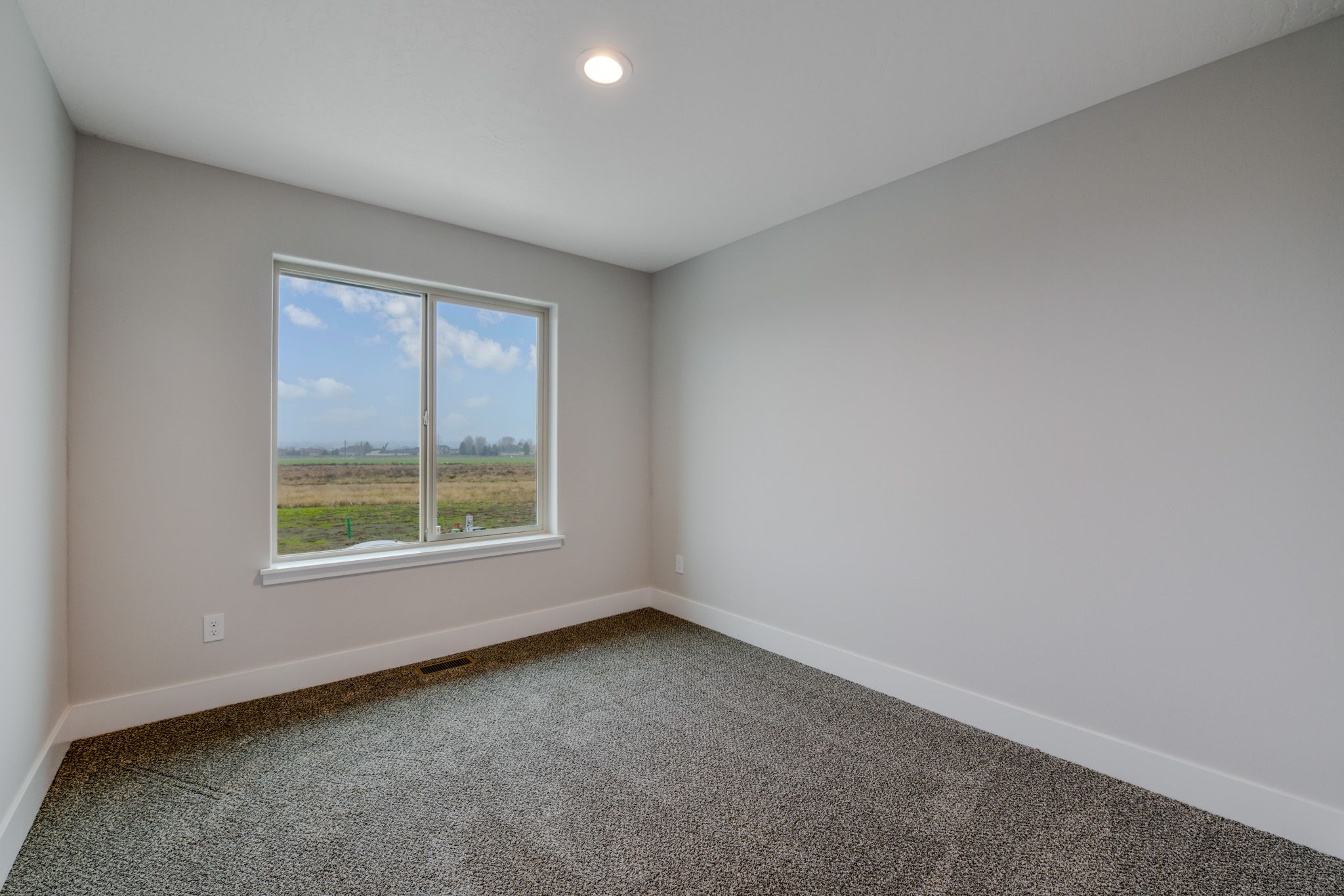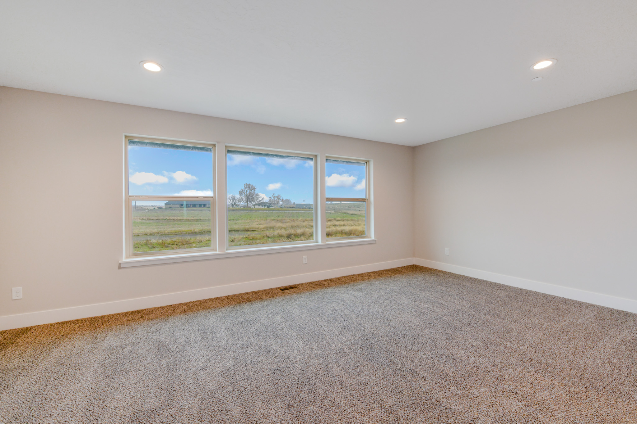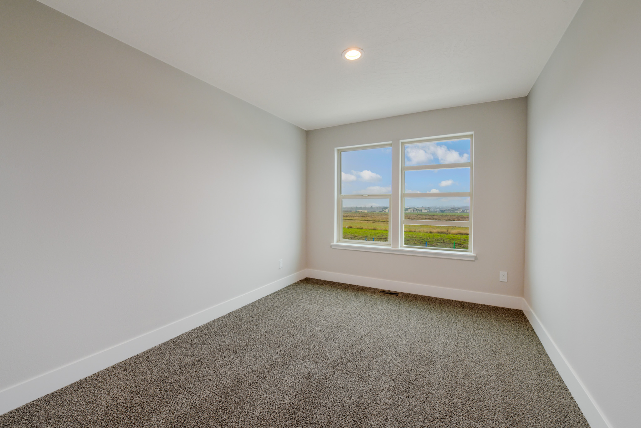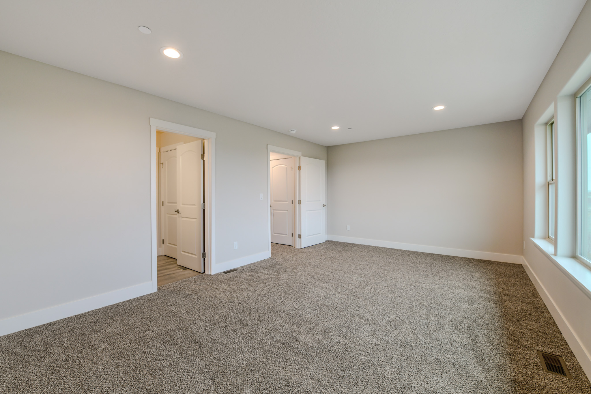 Upstairs, the second floor features three bedrooms and two full bathrooms, including a generously sized primary suite complete with a dual-sink vanity, walk-in shower, and ample closet space. Two additional bedrooms share a full bathroom, while a centrally located laundry area adds everyday convenience. This plan balances open living with private retreats, creating a home that’s both versatile and inviting.