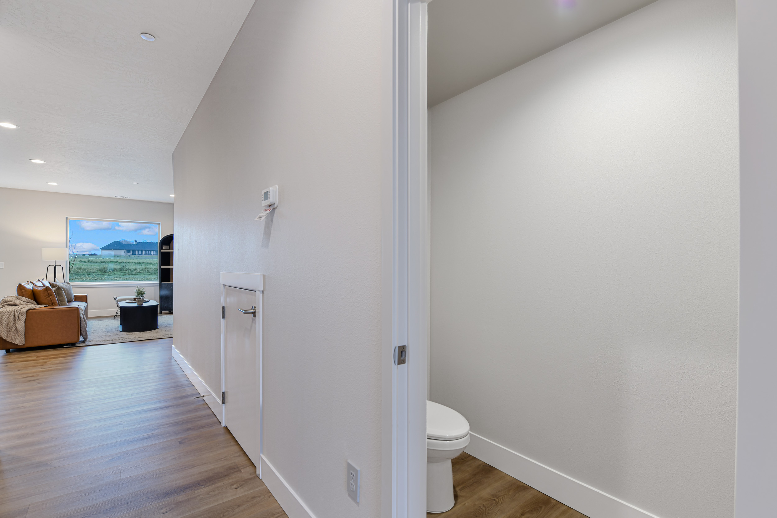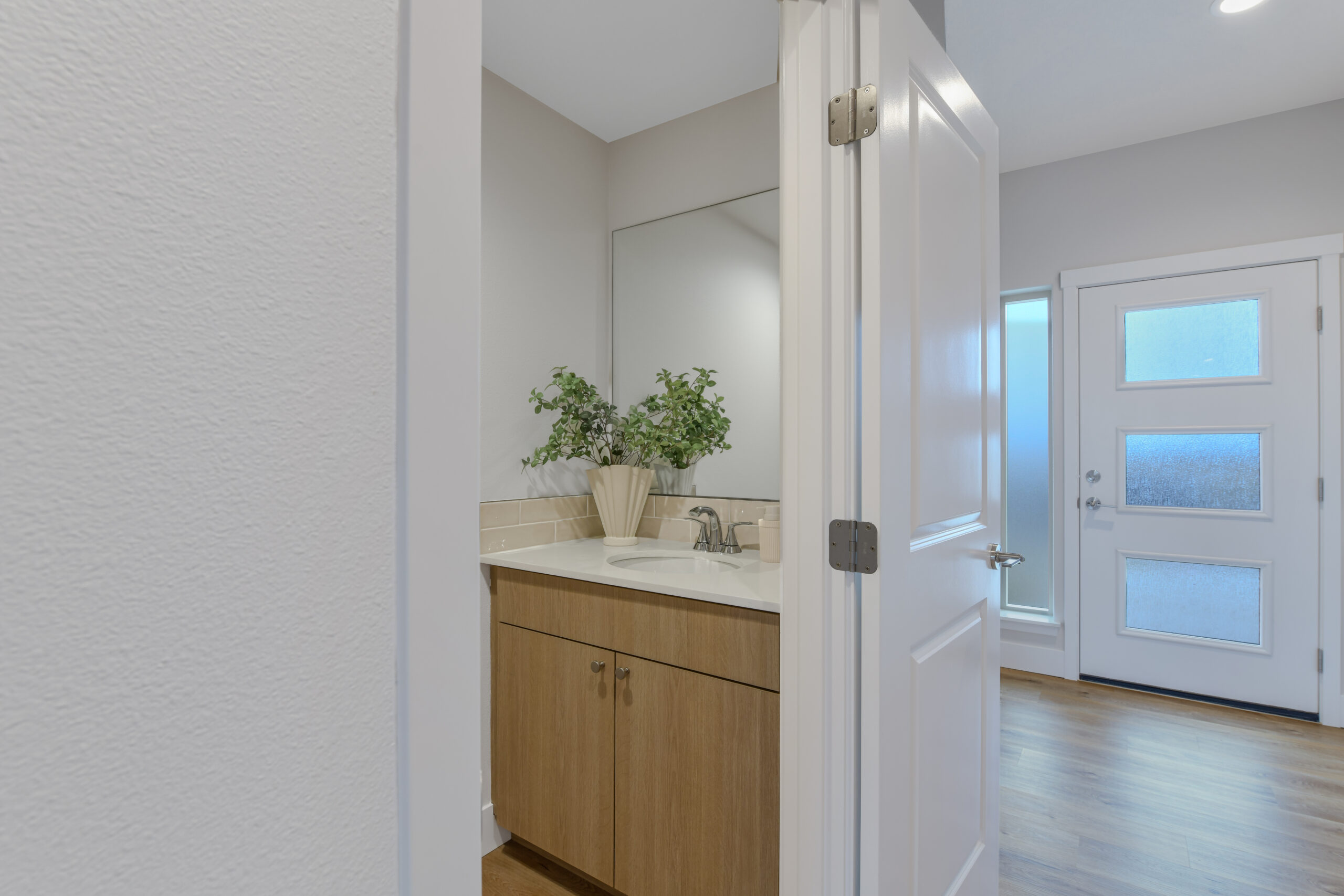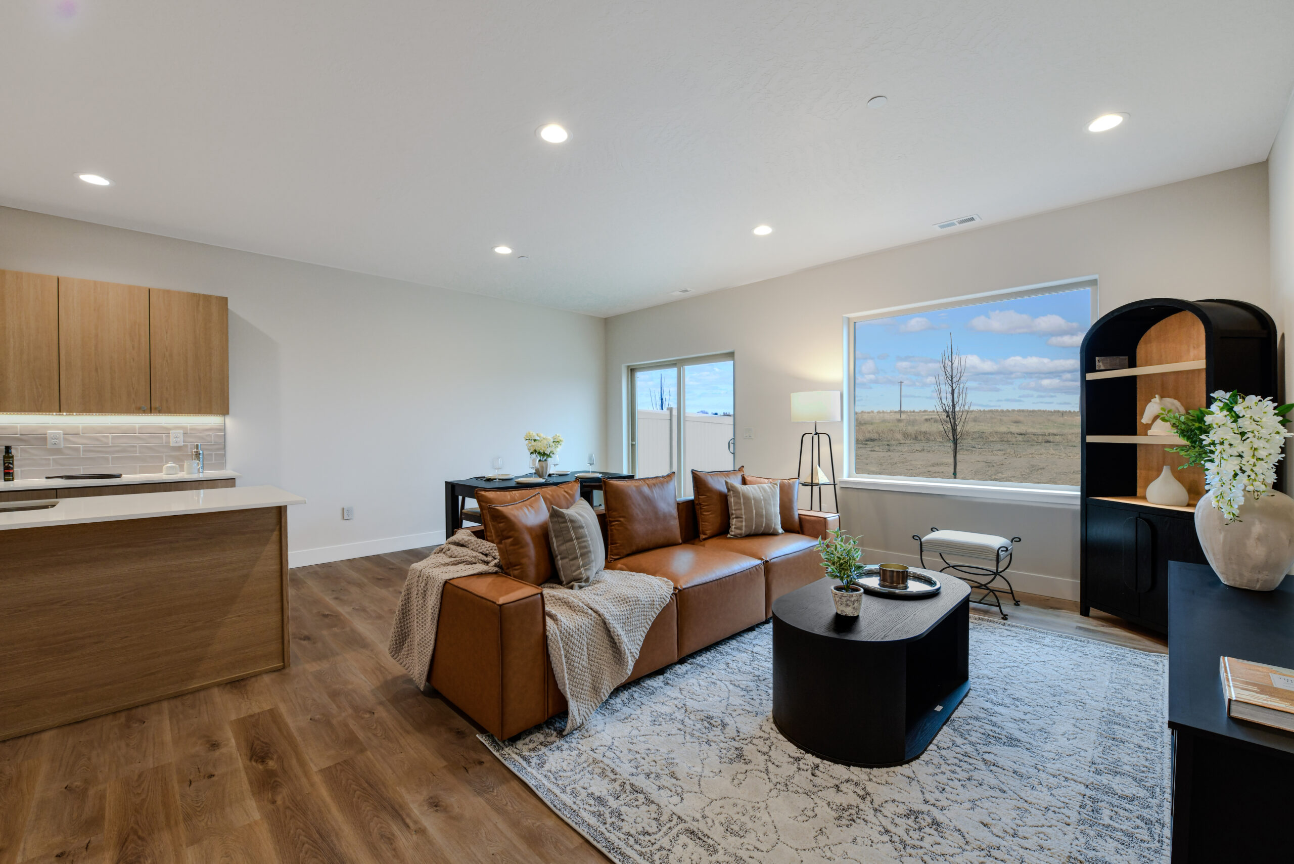 This thoughtfully designed 1,673 sq. ft. townhouse plan offers a spacious and functional layout ideal for modern living. Upon entry, a convenient half bathroom and access to the garage lead into an expansive open-concept main floor featuring a well-appointed kitchen with a large island, flowing seamlessly into the dining and living areas—perfect for everyday living and entertaining. Sliding doors open to a private outdoor patio, extending the living space.