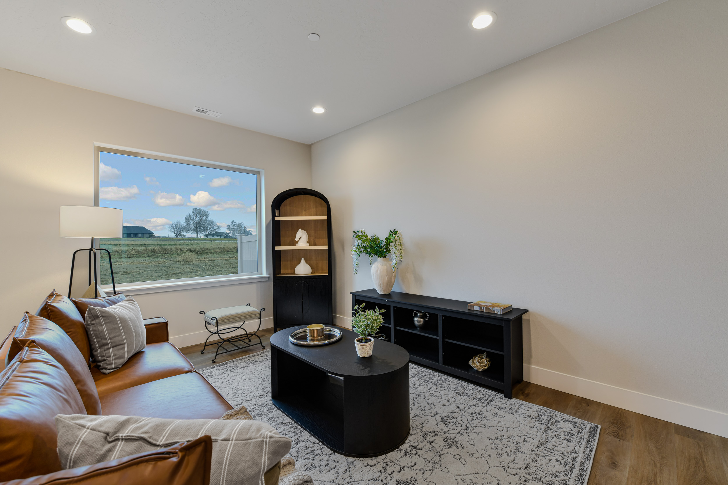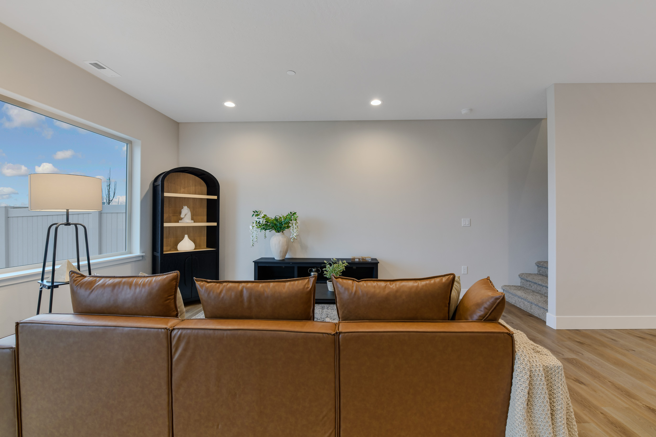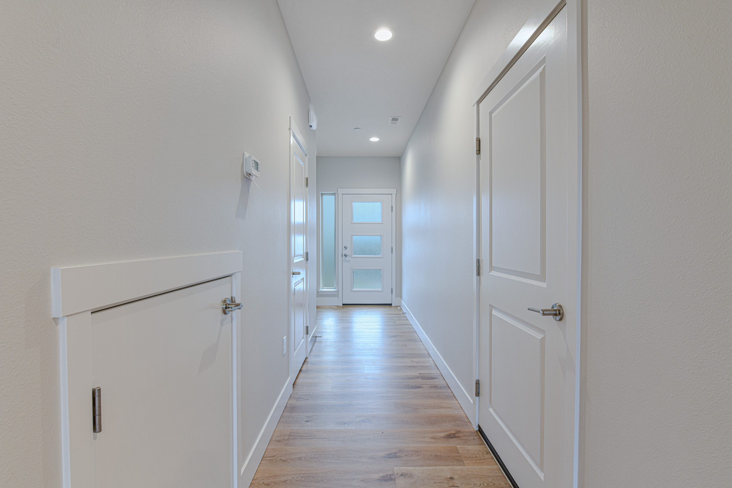 This thoughtfully designed 1,673 sq. ft. townhouse plan offers a spacious and functional layout ideal for modern living. Upon entry, a convenient half bathroom and access to the garage lead into an expansive open-concept main floor featuring a well-appointed kitchen with a large island, flowing seamlessly into the dining and living areas—perfect for everyday living and entertaining. Sliding doors open to a private outdoor patio, extending the living space.