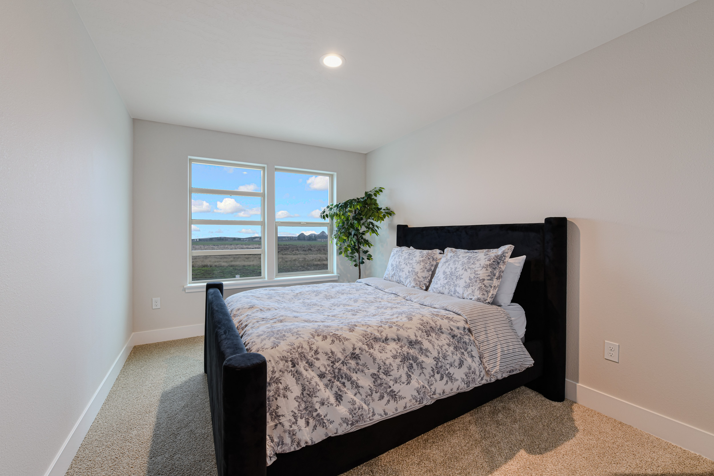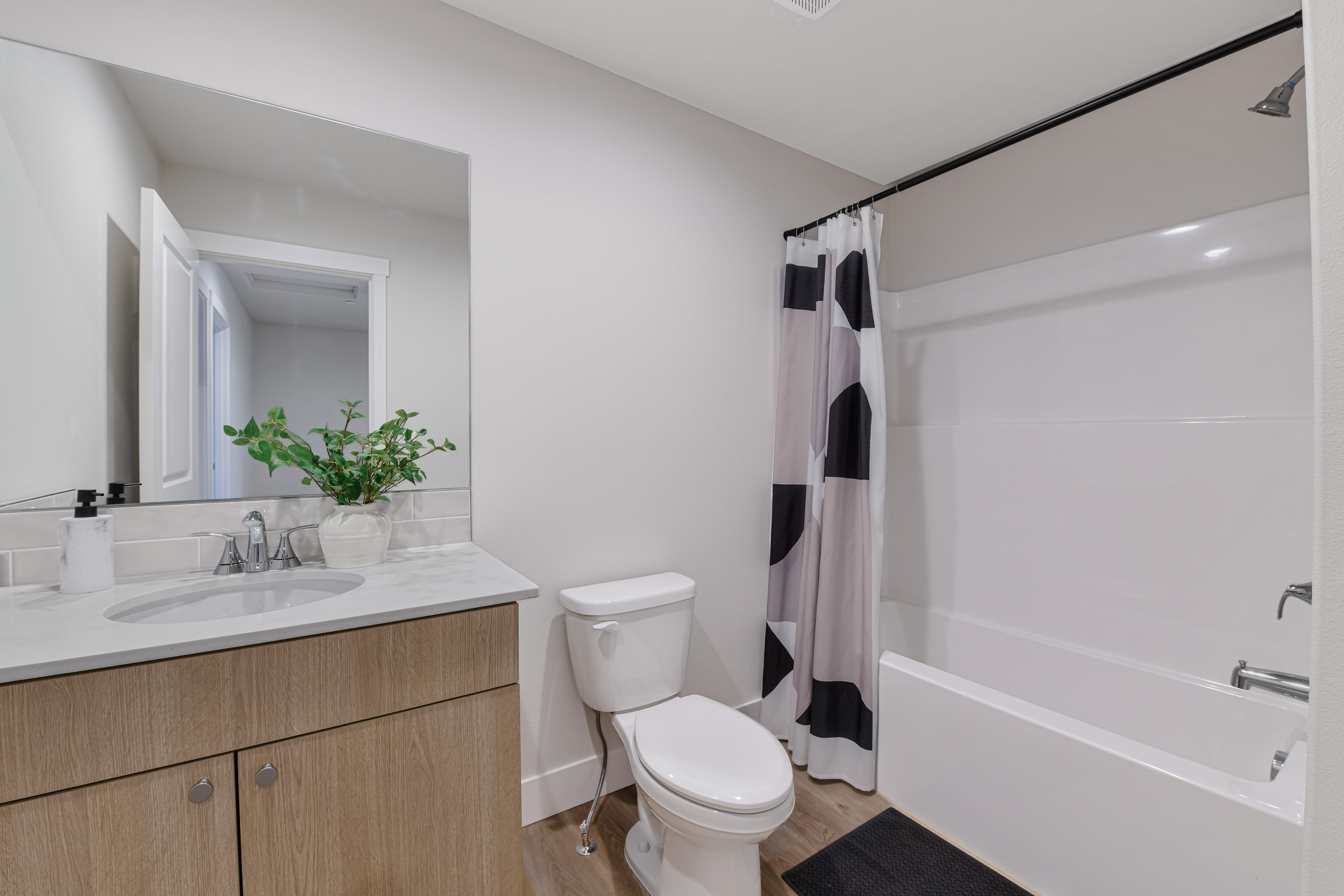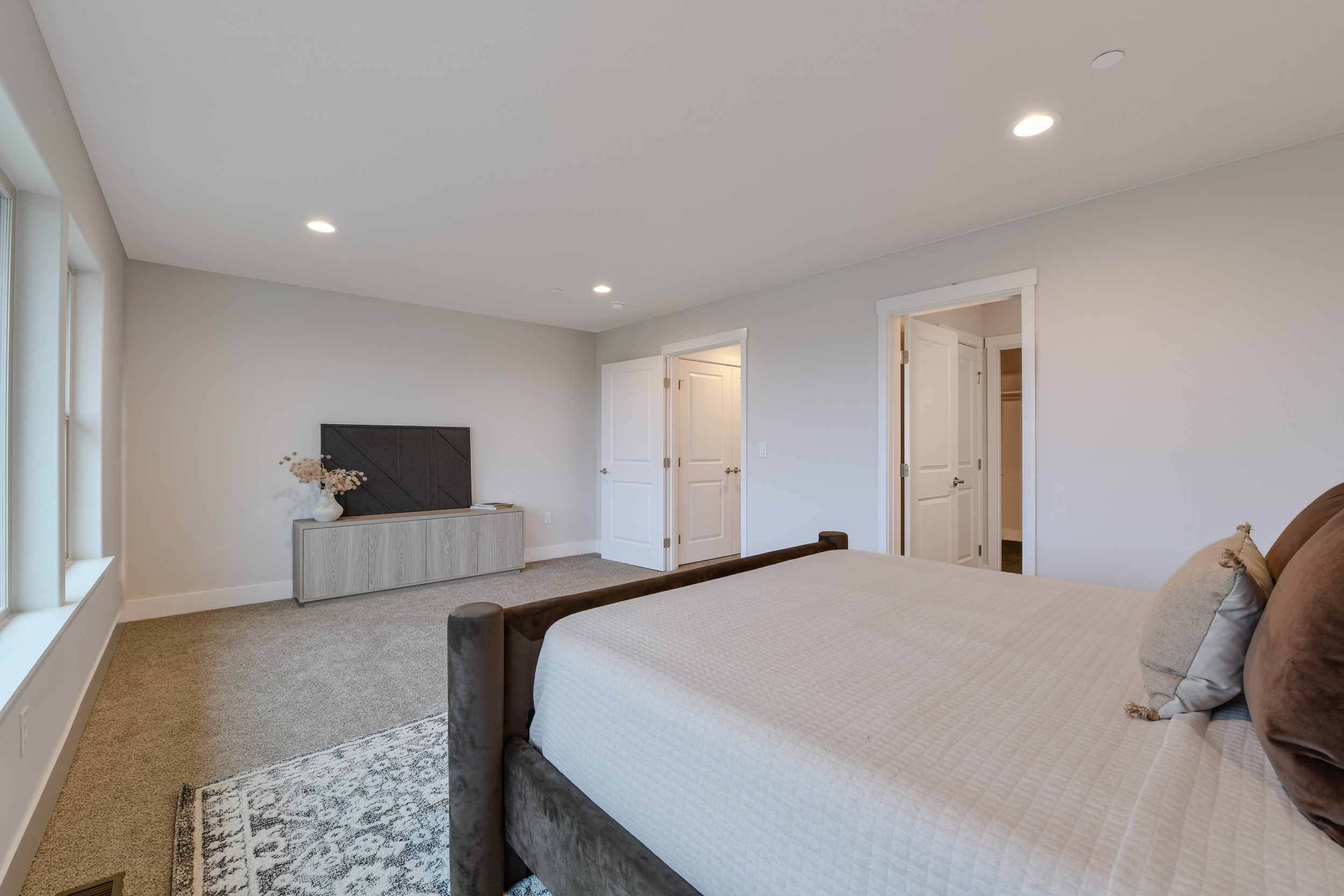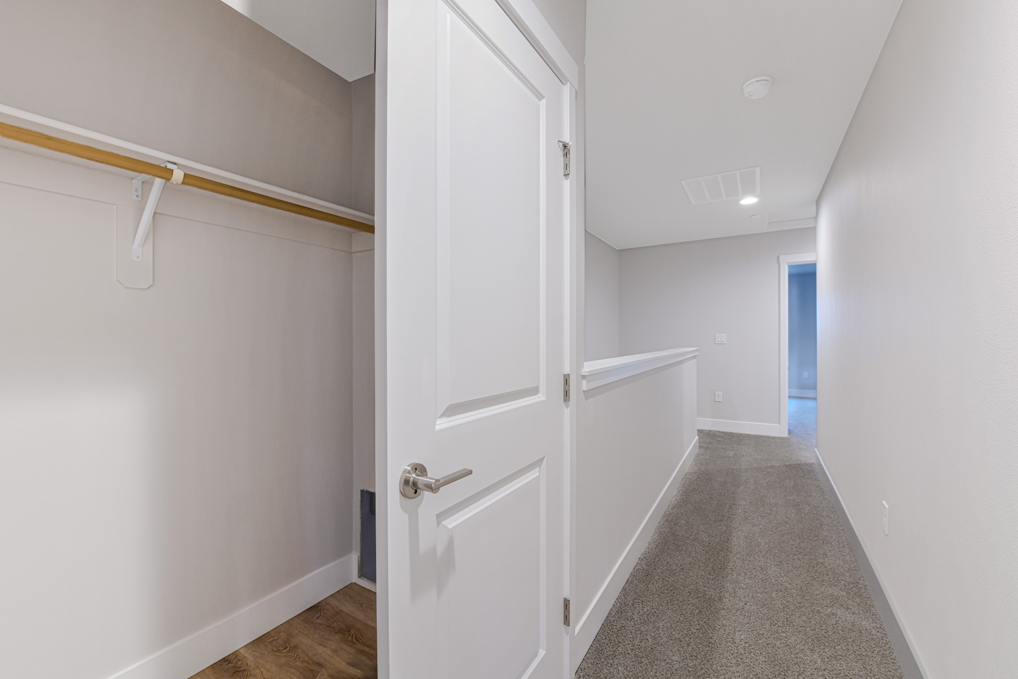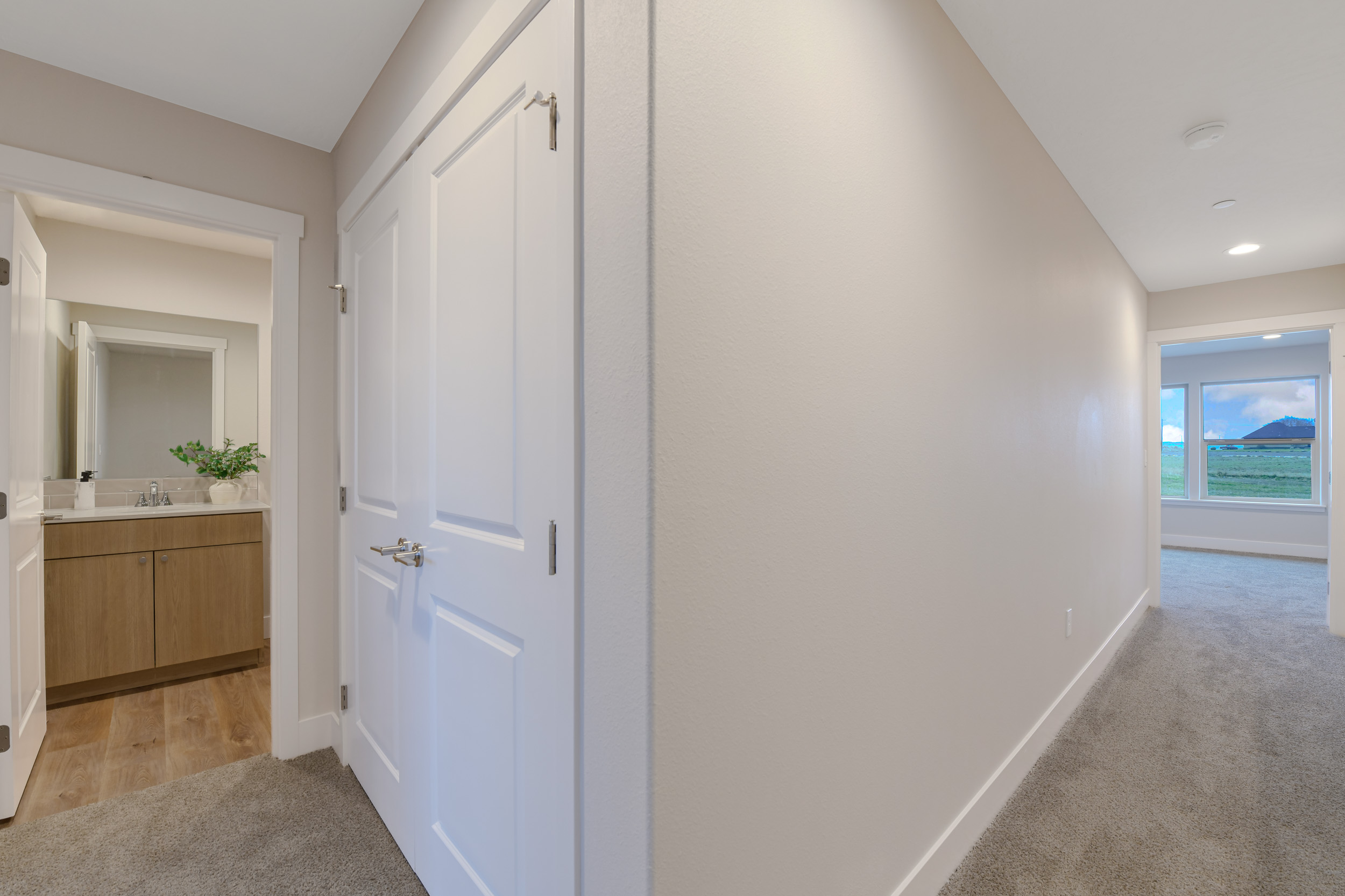 Upstairs, the second floor features three bedrooms and two full bathrooms, including a generously sized primary suite complete with a dual-sink vanity, walk-in shower, and ample closet space. Two additional bedrooms share a full bathroom, while a centrally located laundry area adds everyday convenience. This plan balances open living with private retreats, creating a home that’s both versatile and inviting.