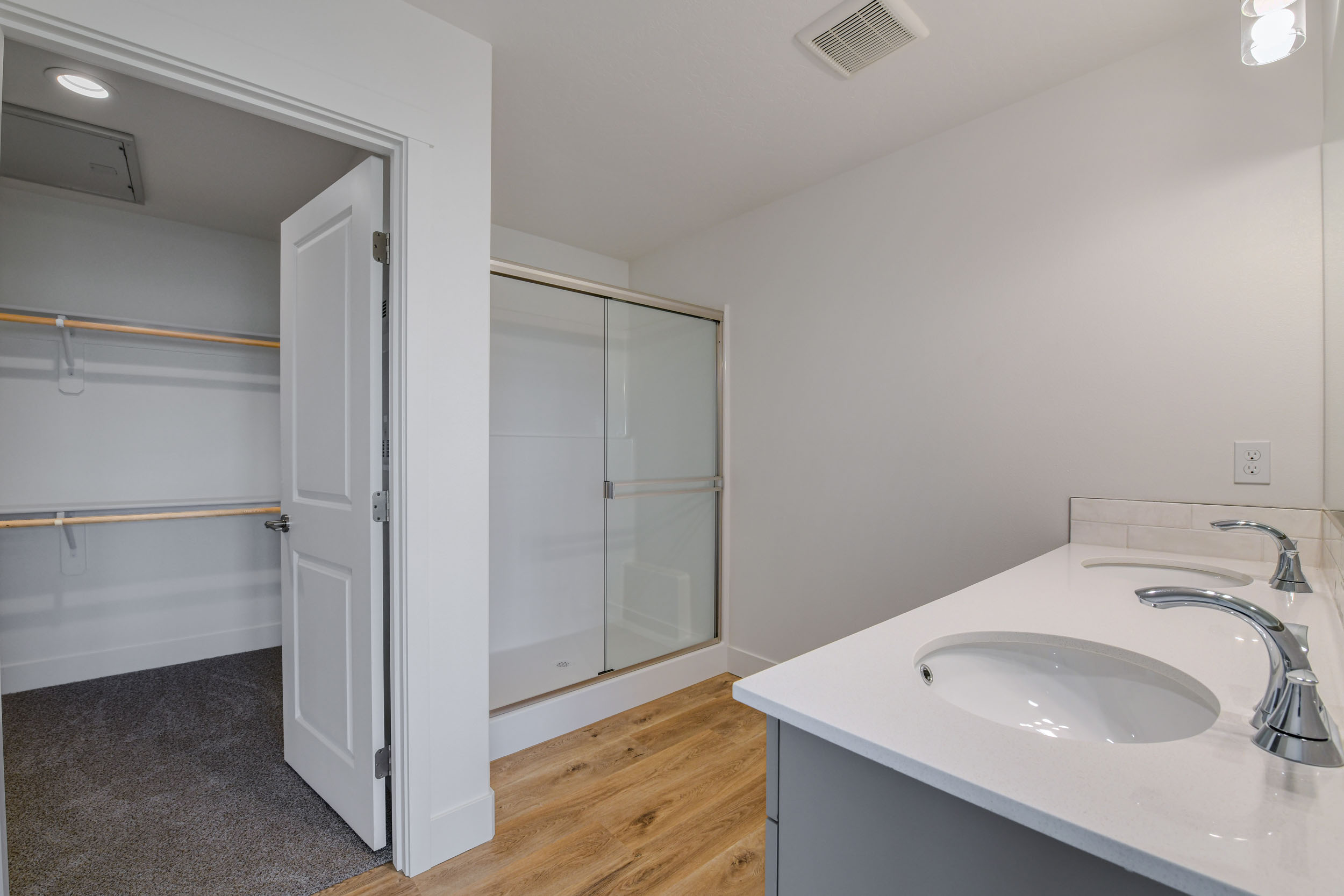 By-pass shower door in master bath