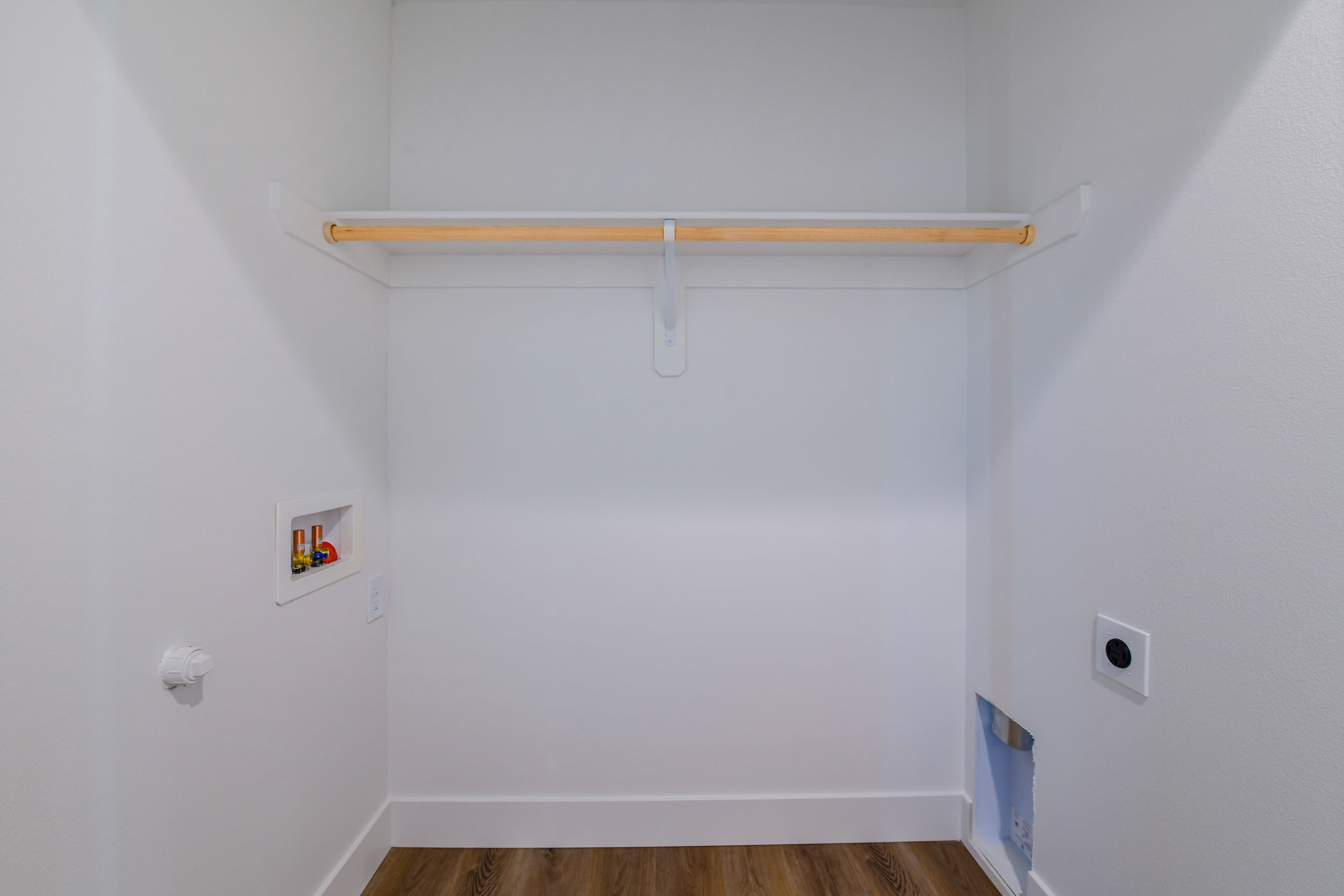 Pantry with wood shelves