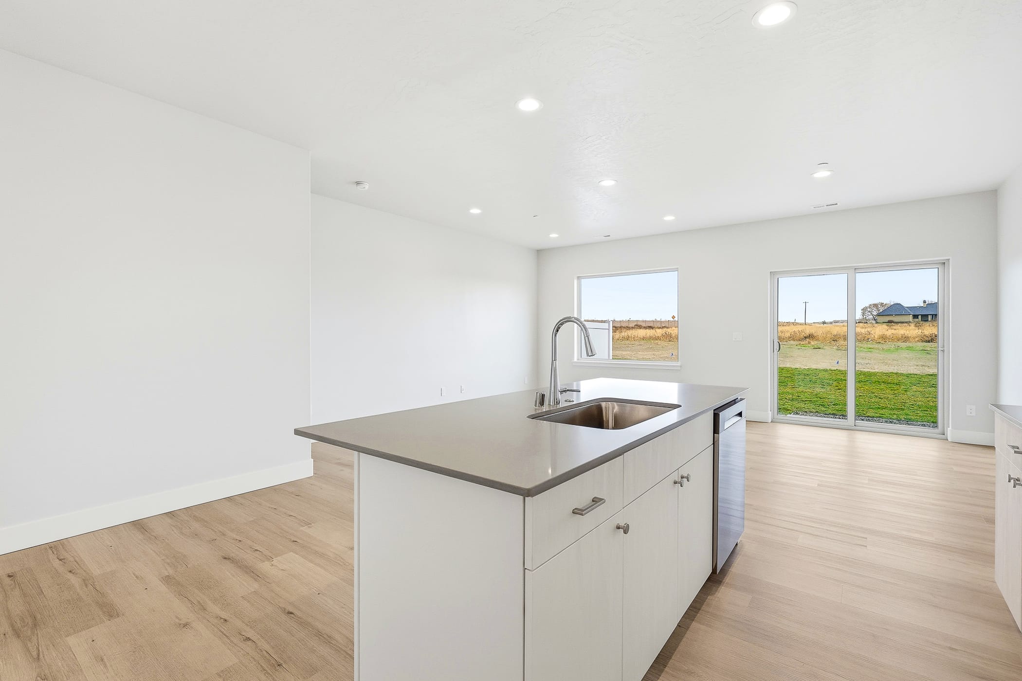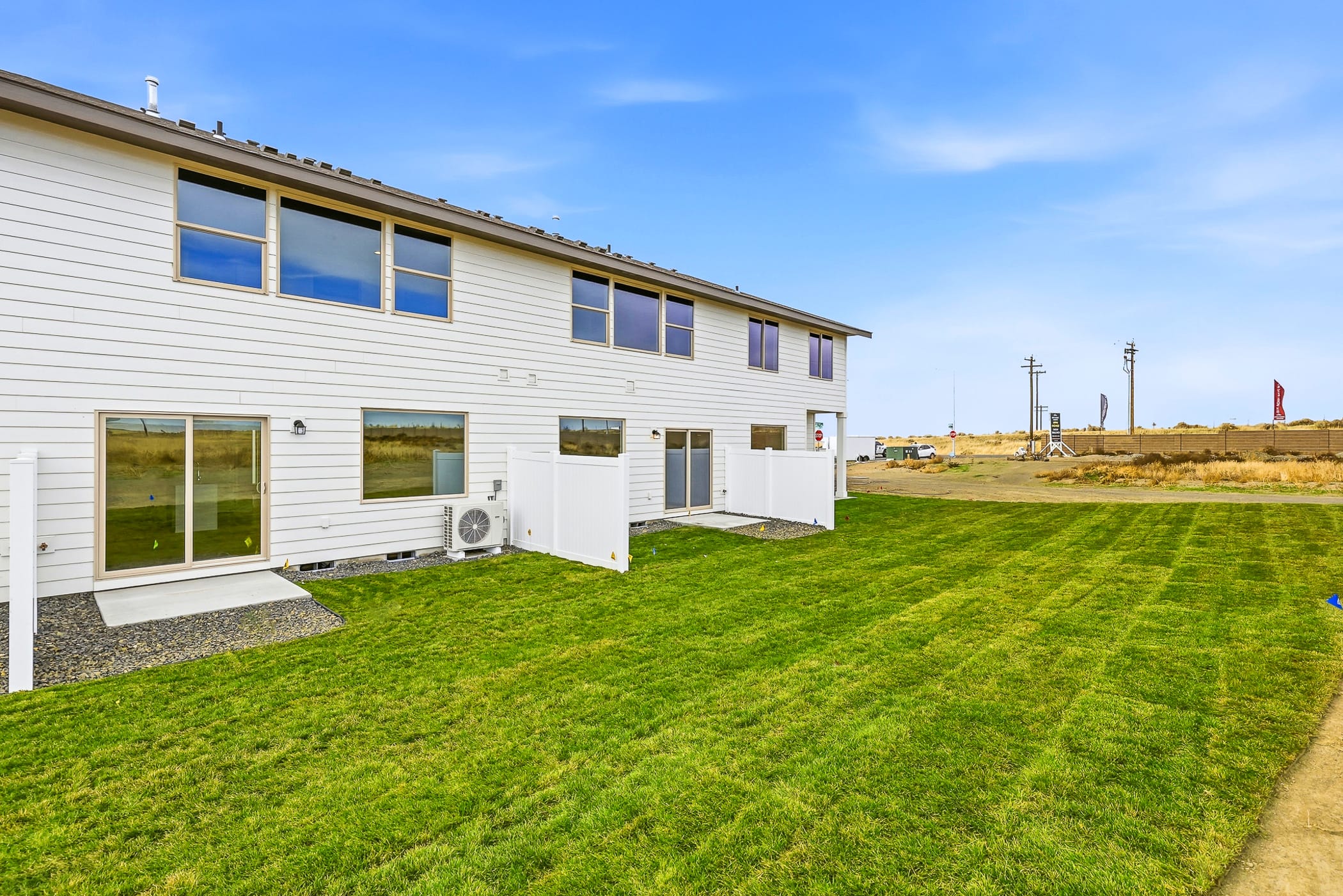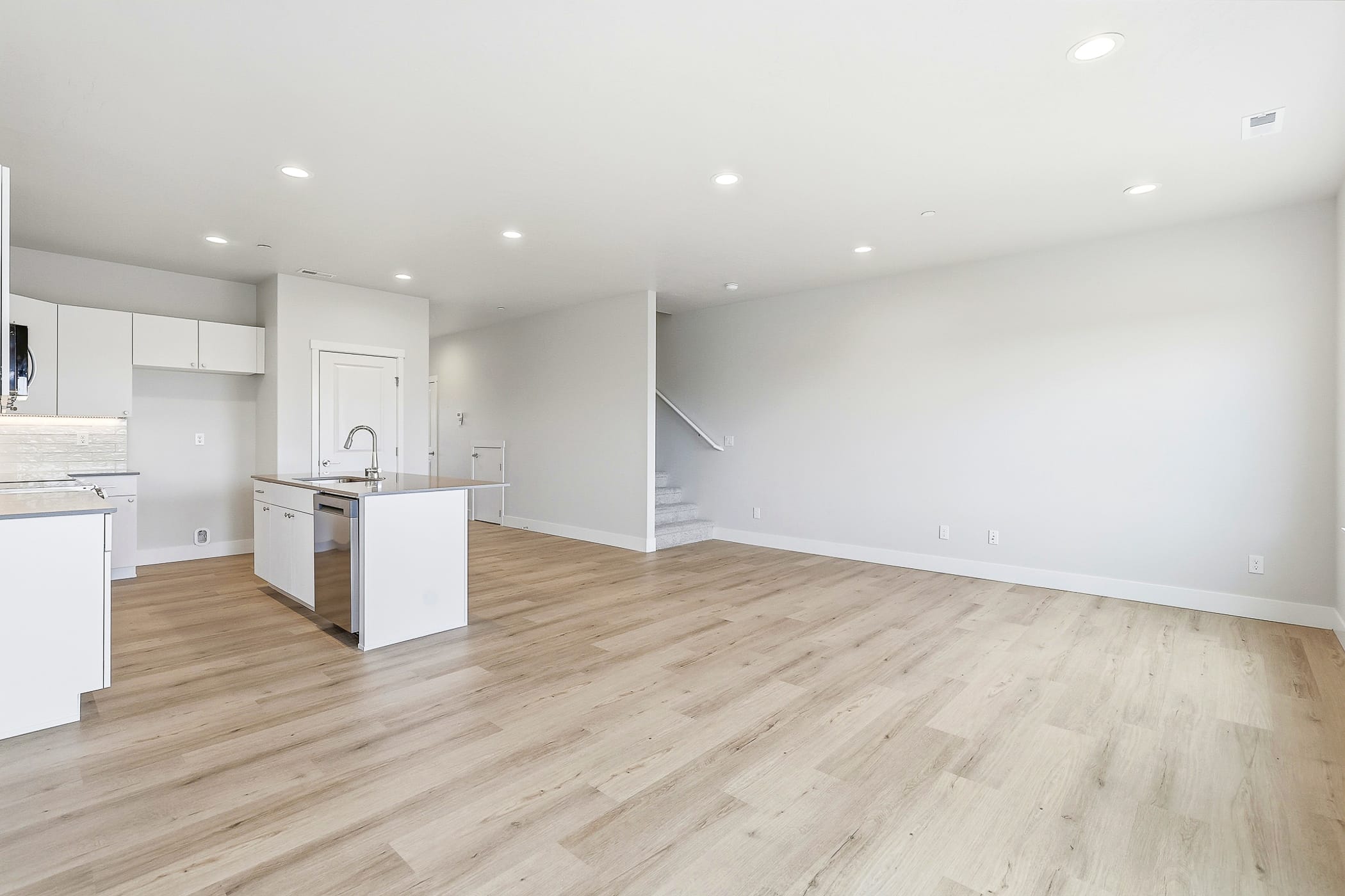 This thoughtfully designed 1,673 sq. ft. townhouse plan offers a spacious and functional layout ideal for modern living. Upon entry, a convenient half bathroom and access to the garage lead into an expansive open-concept main floor featuring a well-appointed kitchen with a large island, flowing seamlessly into the dining and living areas—perfect for everyday living and entertaining. Sliding doors open to a private outdoor patio, extending the living space.