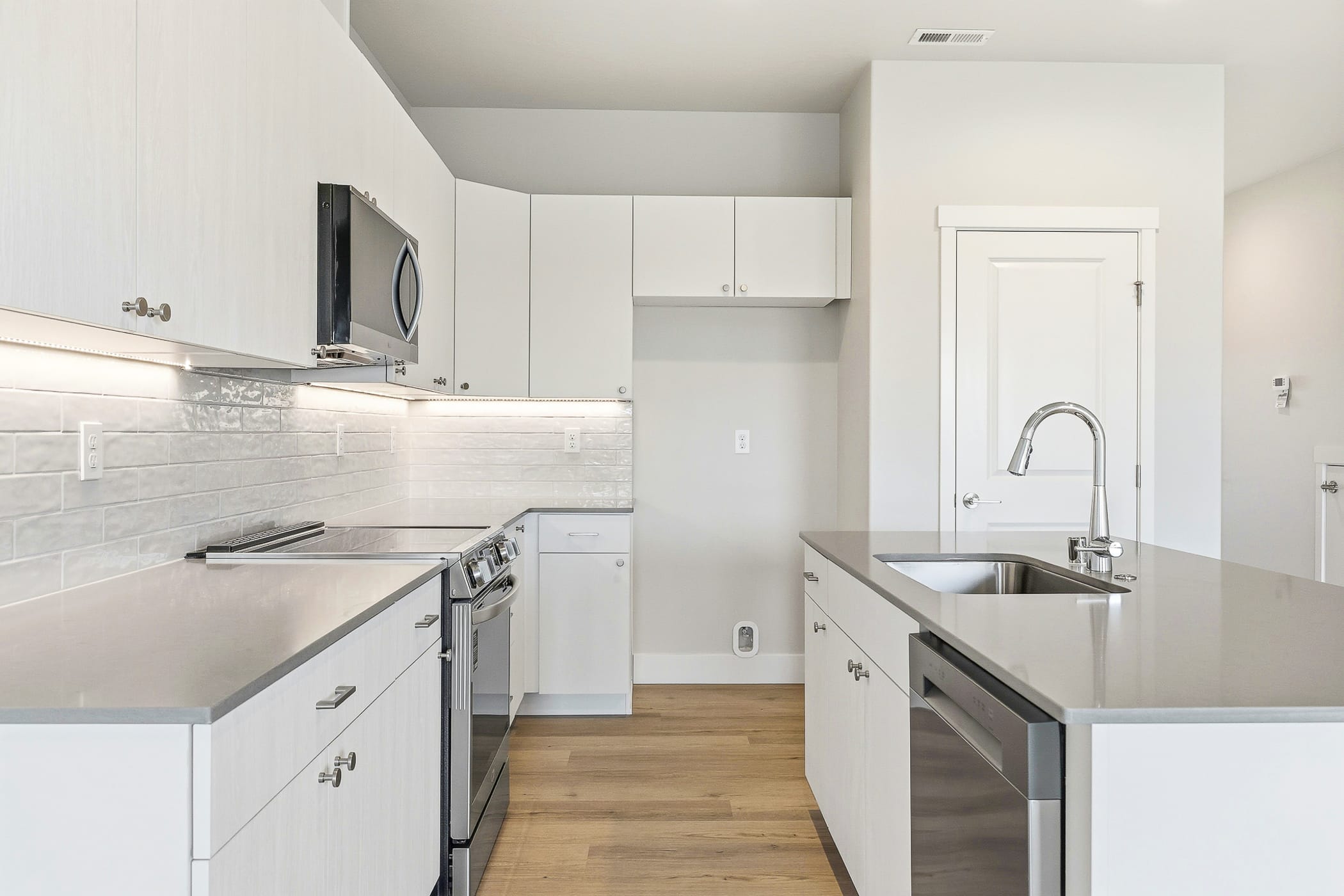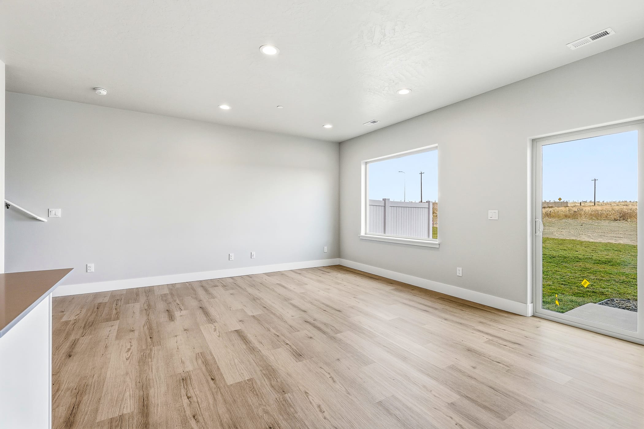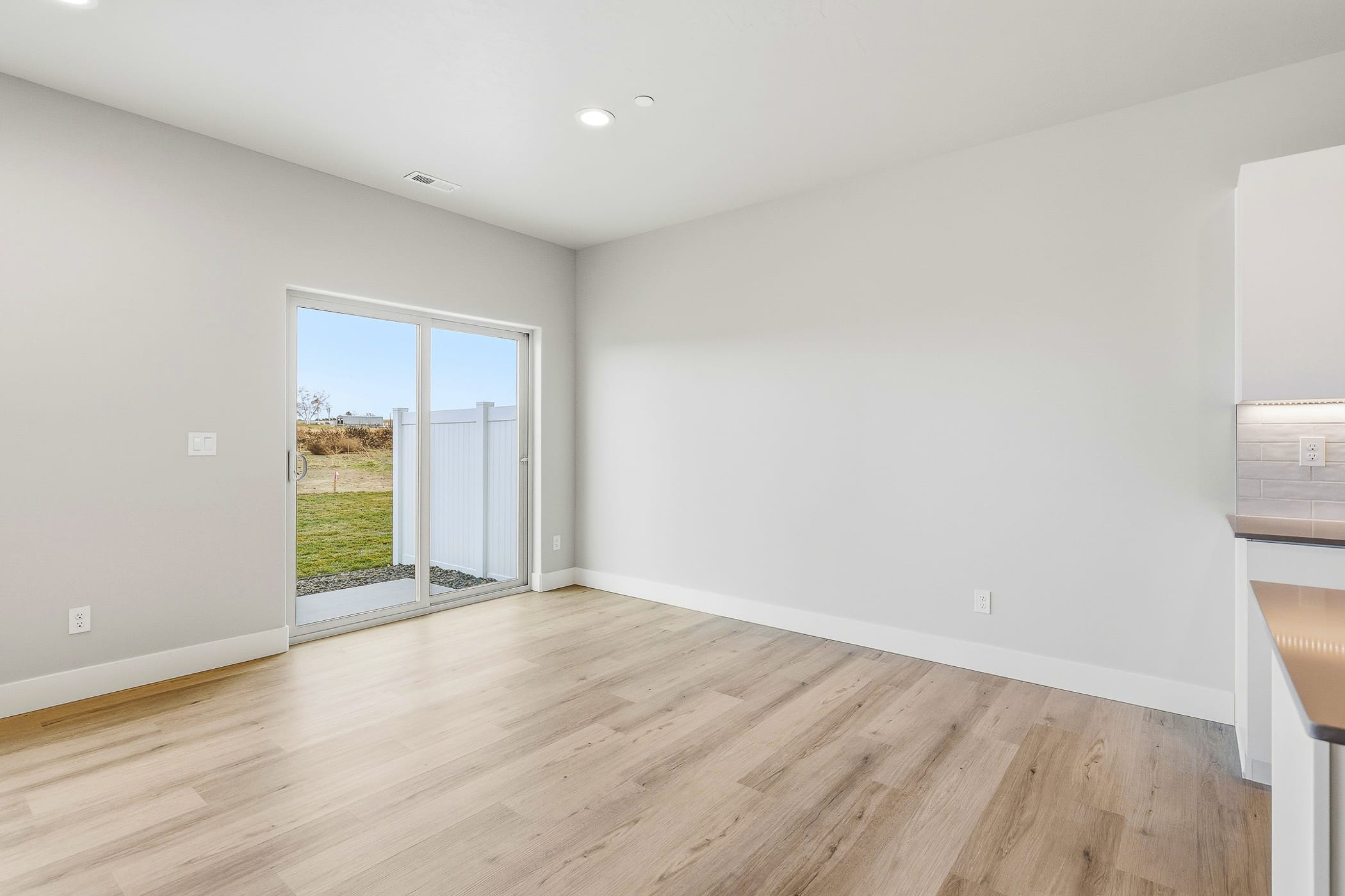 This thoughtfully designed 1,673 sq. ft. townhouse plan offers a spacious and functional layout ideal for modern living. Upon entry, a convenient half bathroom and access to the garage lead into an expansive open-concept main floor featuring a well-appointed kitchen with a large island, flowing seamlessly into the dining and living areas—perfect for everyday living and entertaining. Sliding doors open to a private outdoor patio, extending the living space.