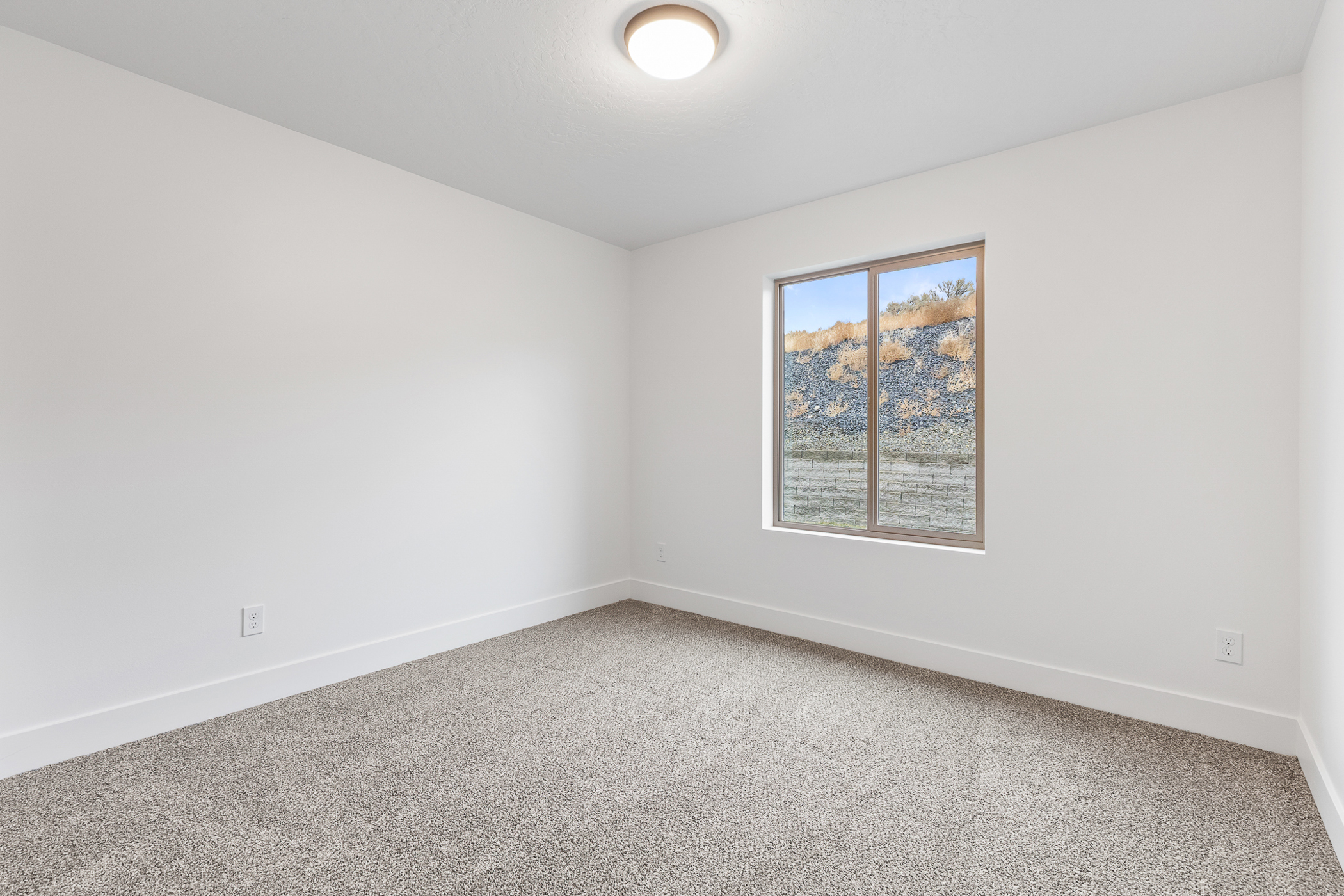 Retreat to the main suite featuring a dual vanity bathroom with options for a fiberglass shower or customizable tiled walls. Plus, indulge in the dream-worthy walk-in closet. At the opposite end, two bedrooms share a well-appointed bathroom.