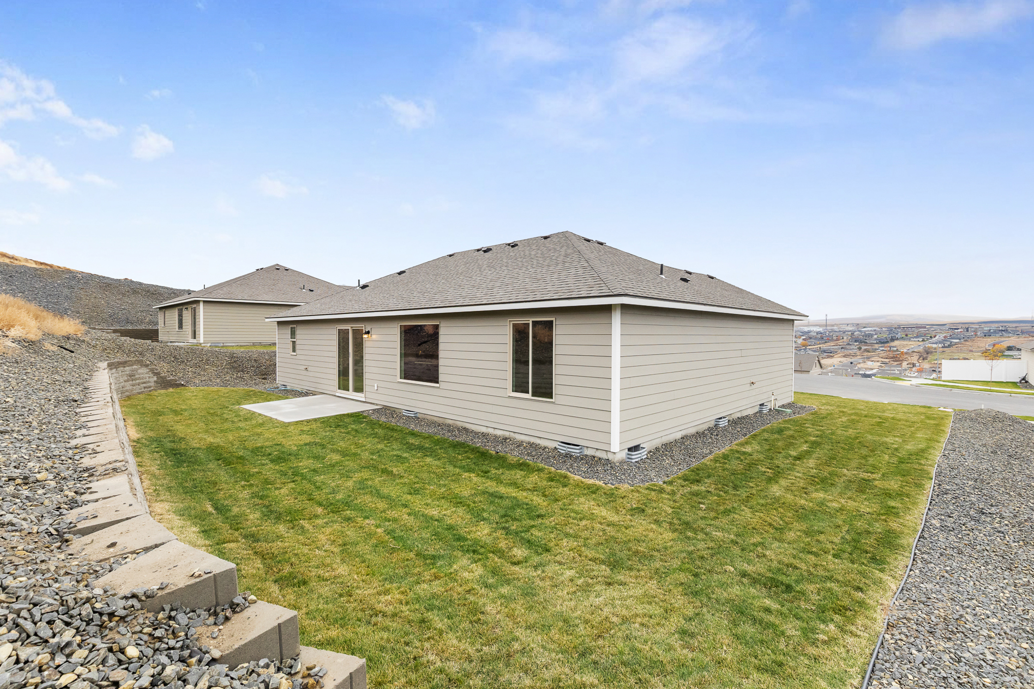 In the 1403 floor plan, you’ll be greeted by the grandeur of the high vaulted ceiling in the great room, seamlessly flowing into the spacious kitchen and dining area. Flooded with natural light from the large window and patio slide door, this space feels open and inviting. Conveniently located near the garage entrance, the laundry room offers ease and functionality.