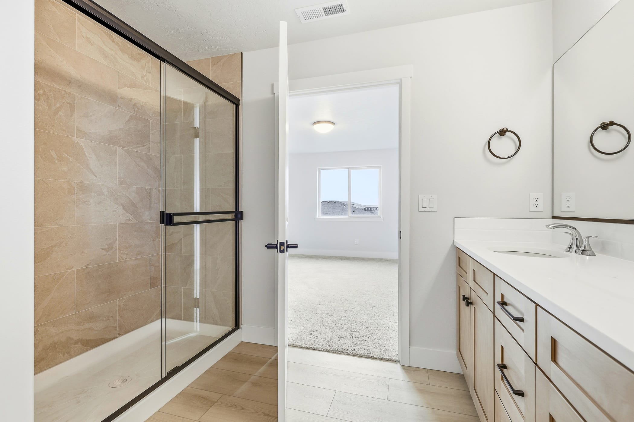 By-pass shower door in master bath