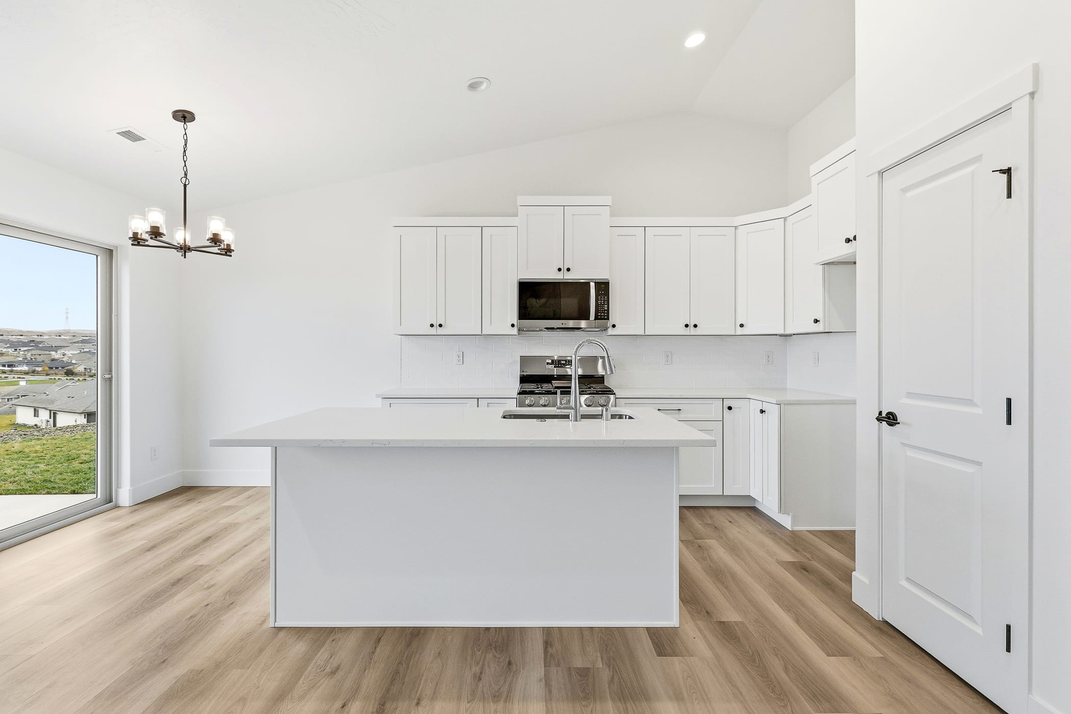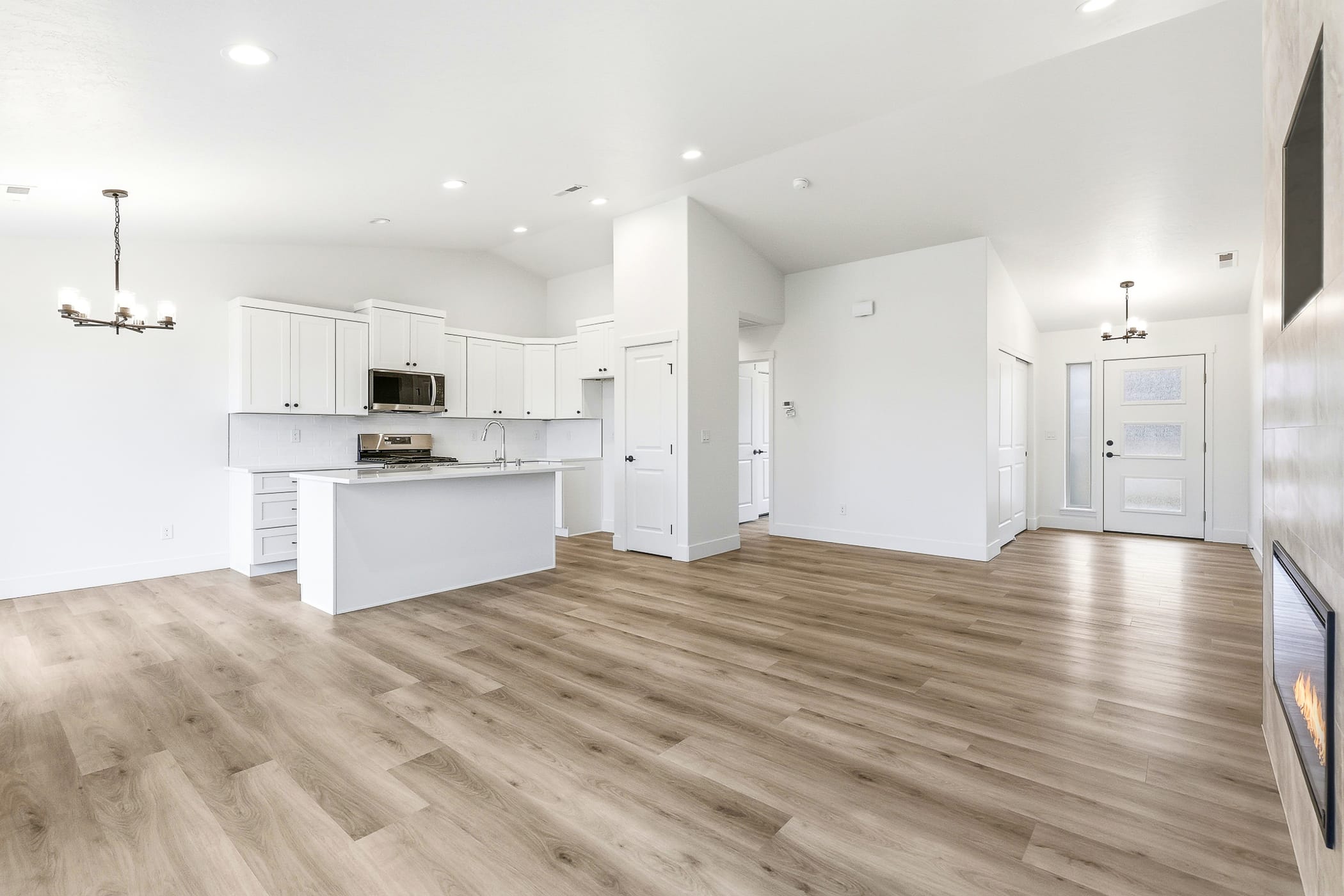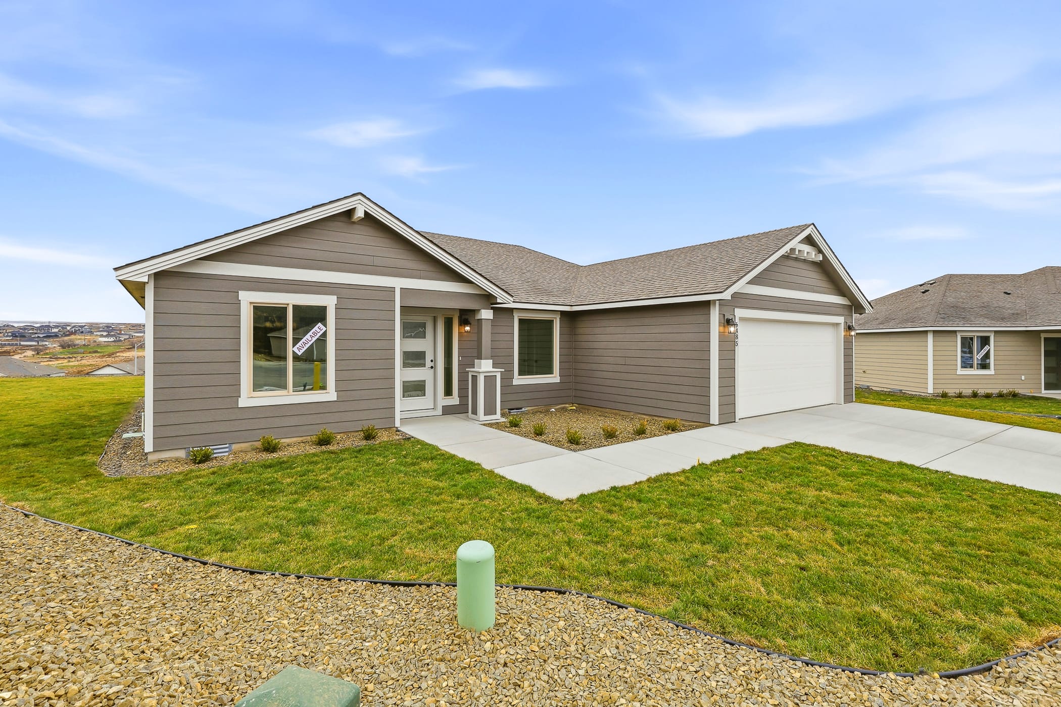 In the 1403 floor plan, you’ll be greeted by the grandeur of the high vaulted ceiling in the great room, seamlessly flowing into the spacious kitchen and dining area. Flooded with natural light from the large window and patio slide door, this space feels open and inviting. Conveniently located near the garage entrance, the laundry room offers ease and functionality.