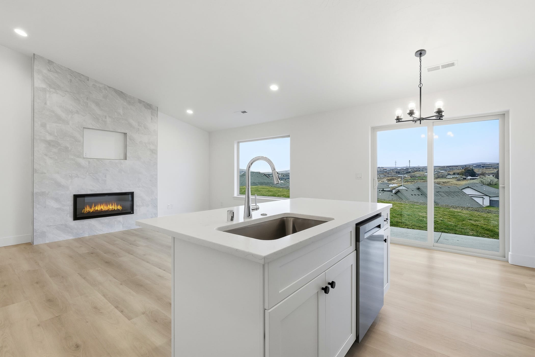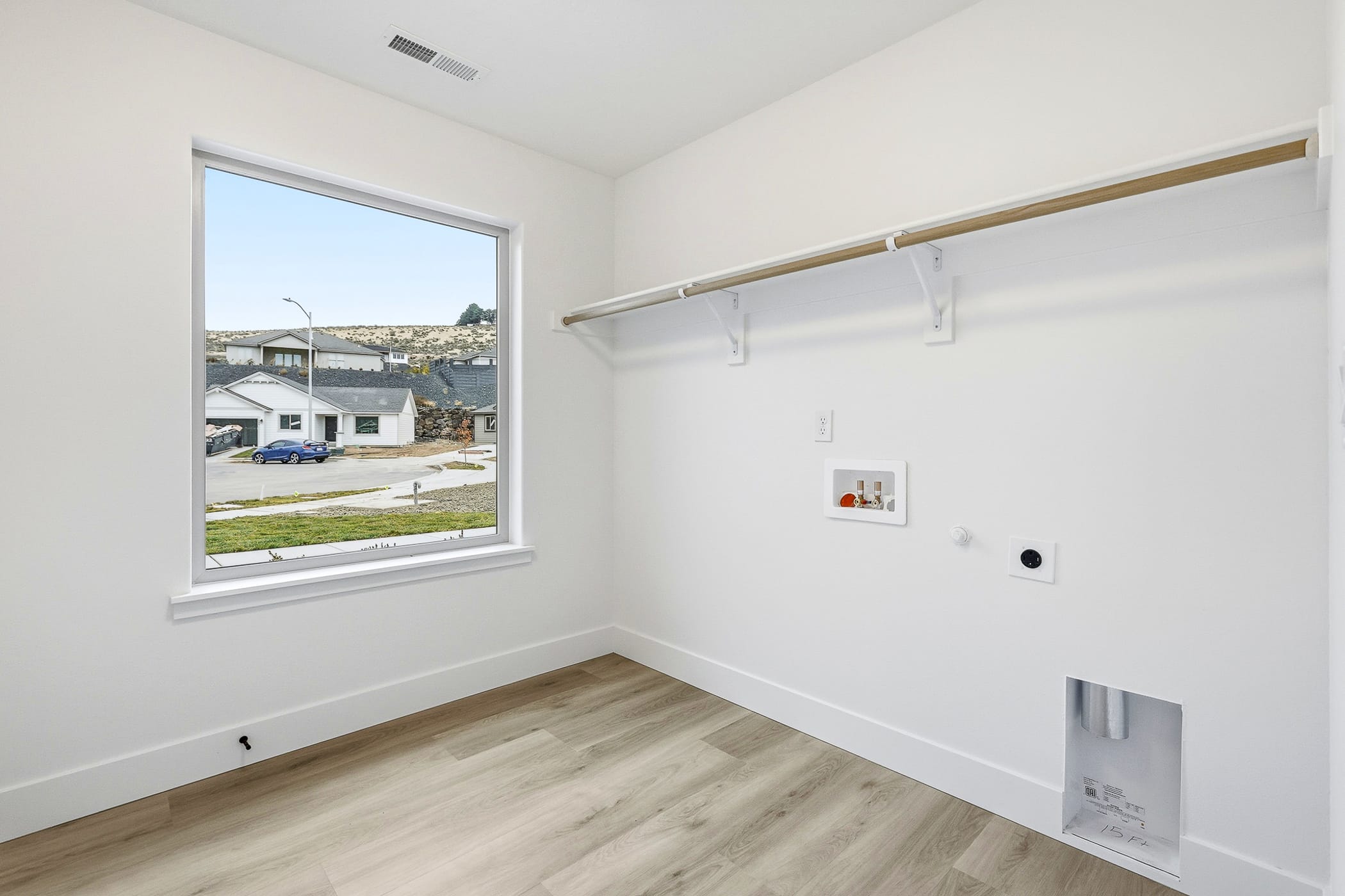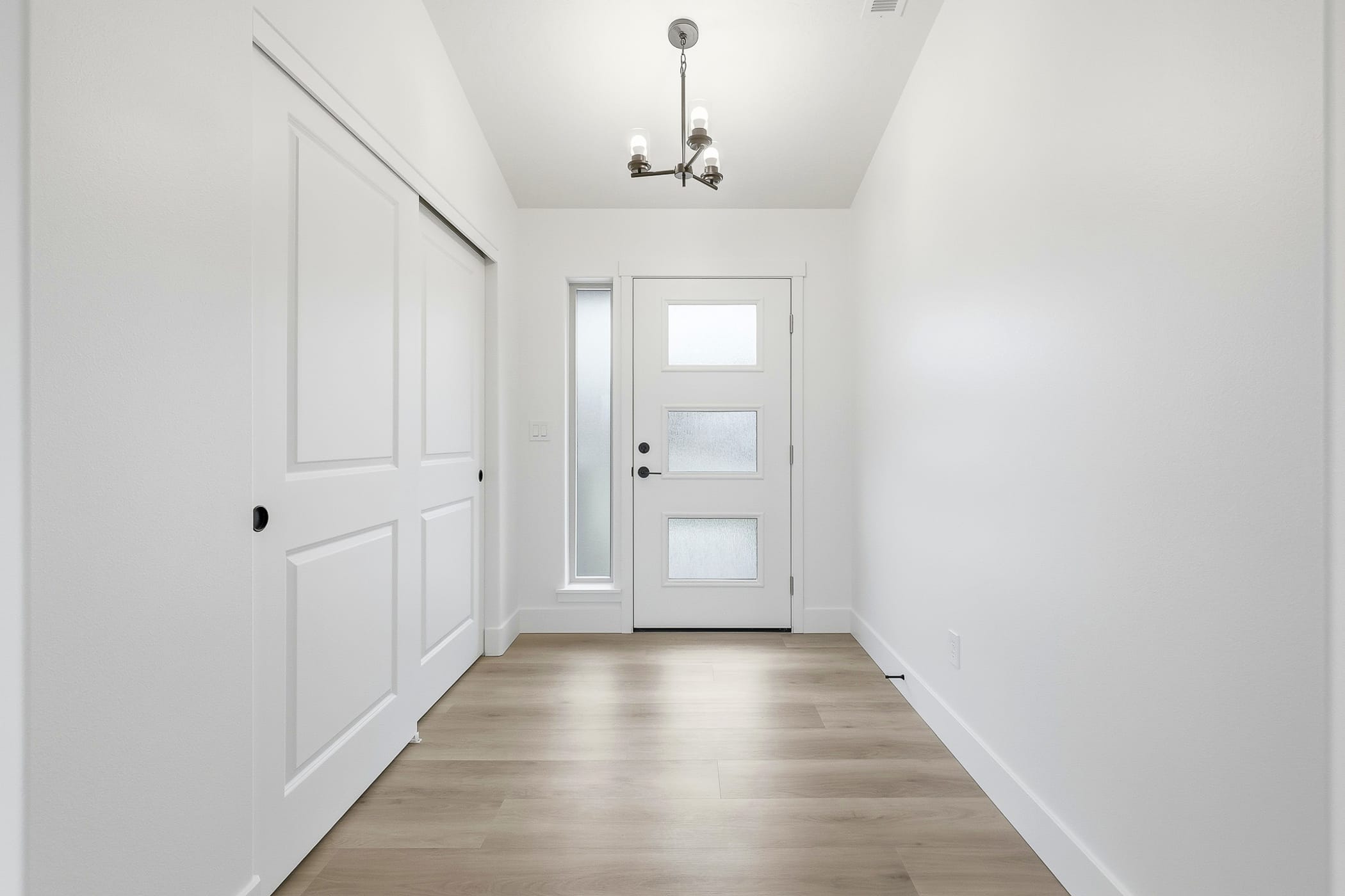 In the 1403 floor plan, you’ll be greeted by the grandeur of the high vaulted ceiling in the great room, seamlessly flowing into the spacious kitchen and dining area. Flooded with natural light from the large window and patio slide door, this space feels open and inviting. Conveniently located near the garage entrance, the laundry room offers ease and functionality.