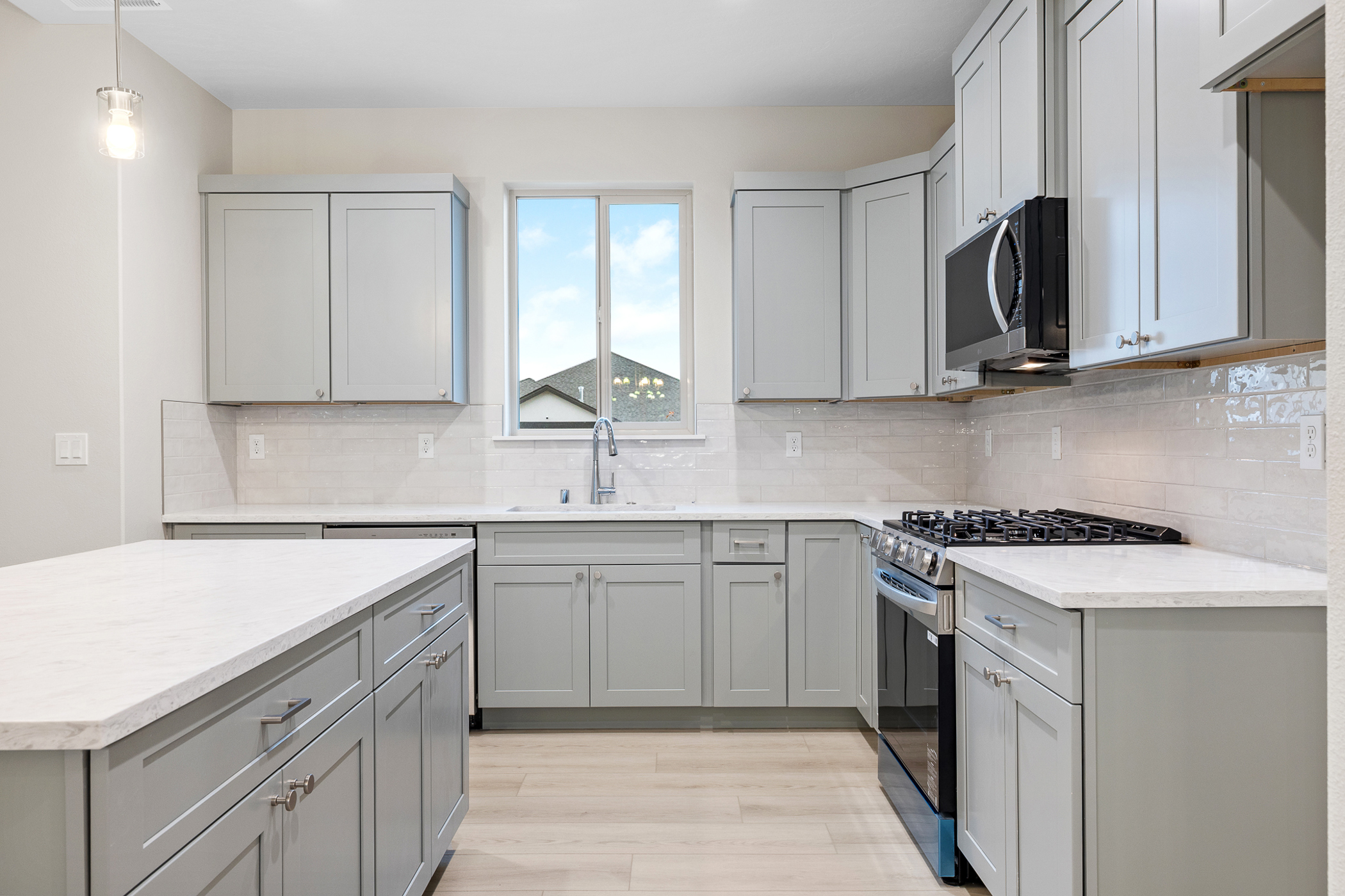 Designed for comfort and practicality, the 1972 plan blends open living spaces with defined areas. A welcoming foyer leads into a generous living area, ideal for entertaining or relaxation. The kitchen boasts ample storage, a central island, and seamless access to the dining area, which overlooks the backyard. The primary suite offers a luxurious en-suite bathroom and a spacious walk-in closet. Every detail in this home reflects modern elegance, creating a sophisticated yet comfortable living environment.