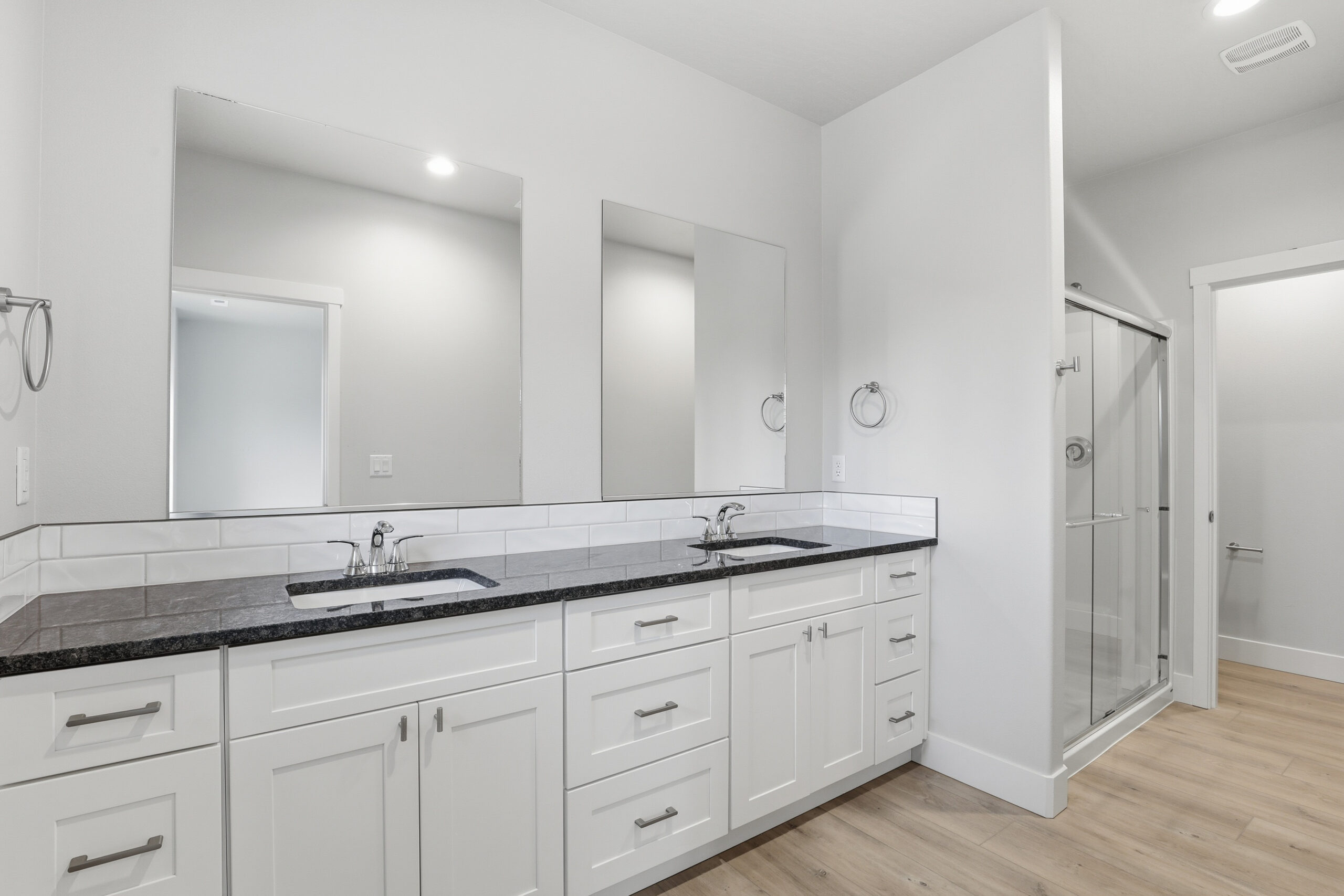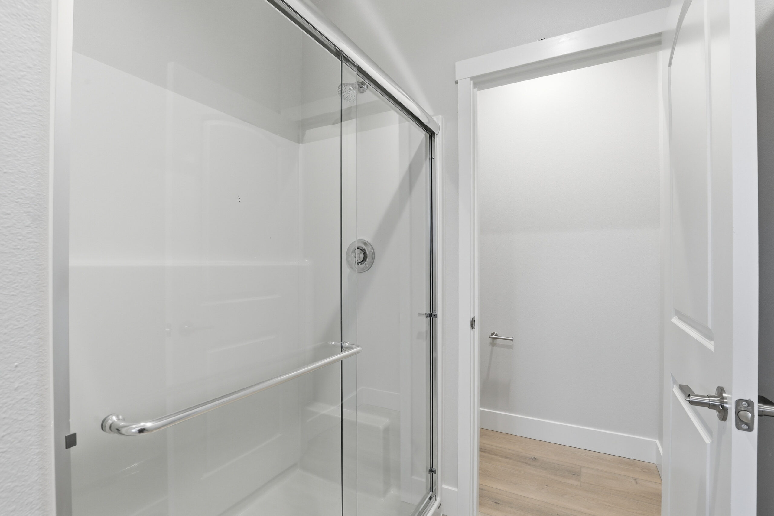 By-pass shower door in master bath