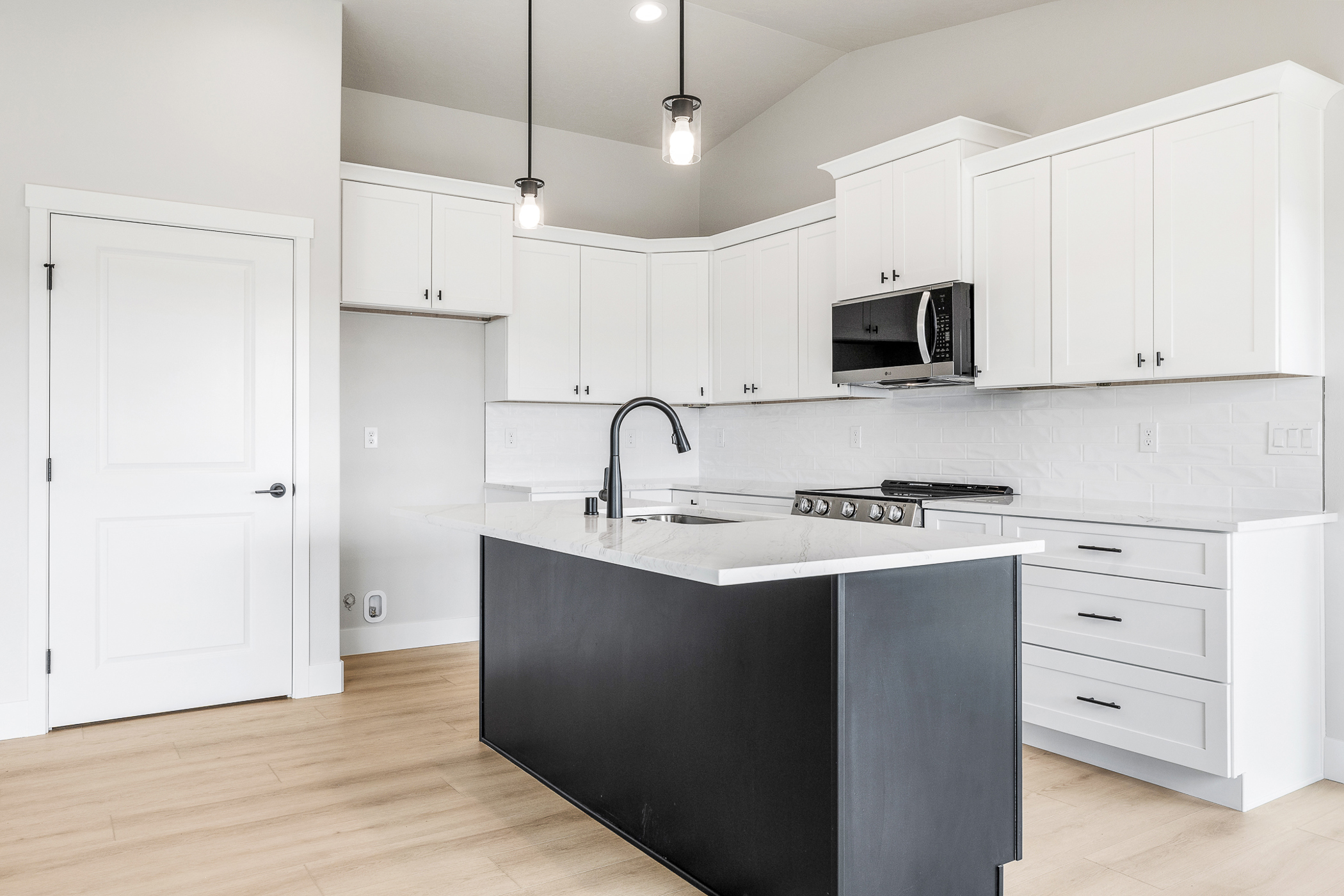 Full height tile backsplash