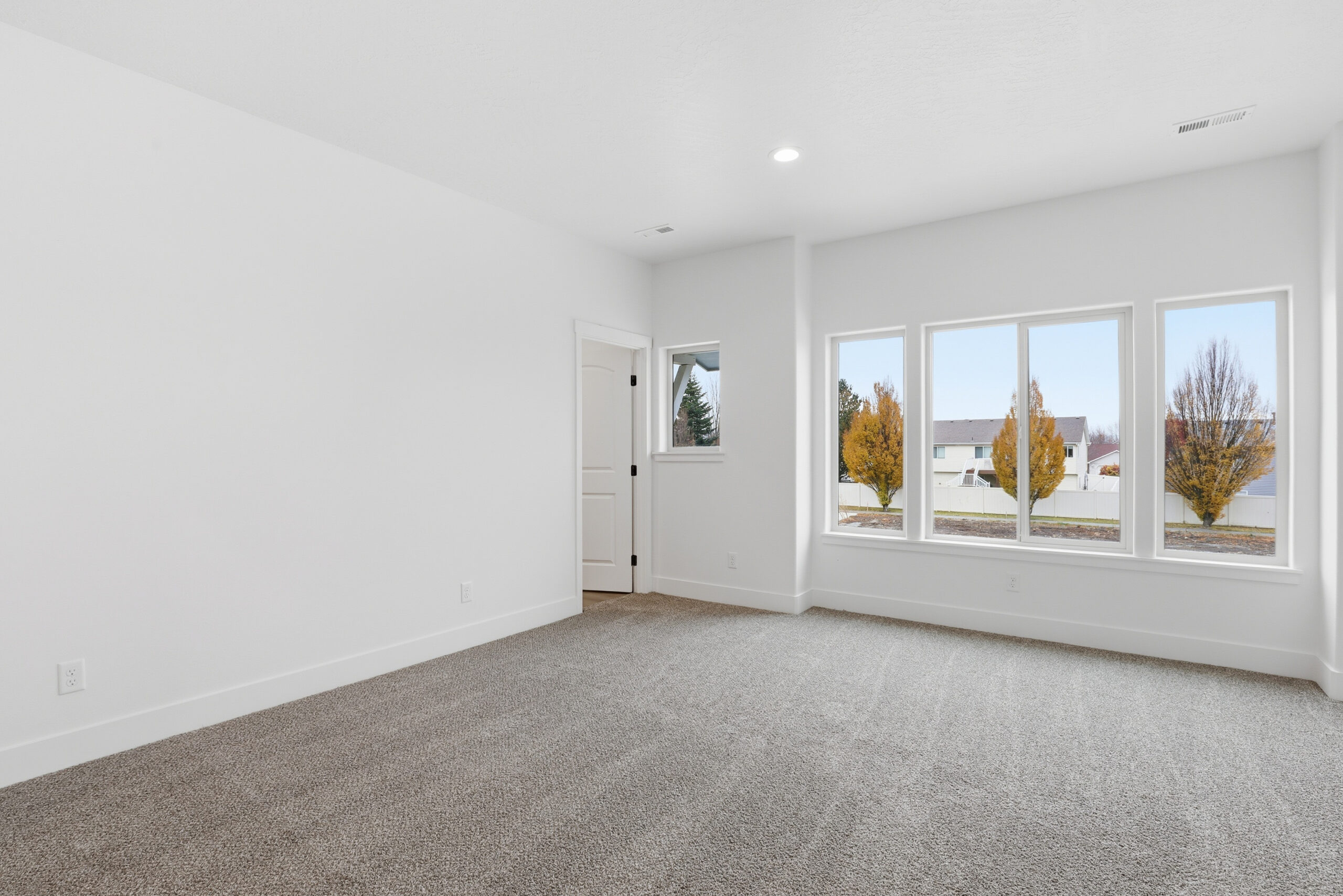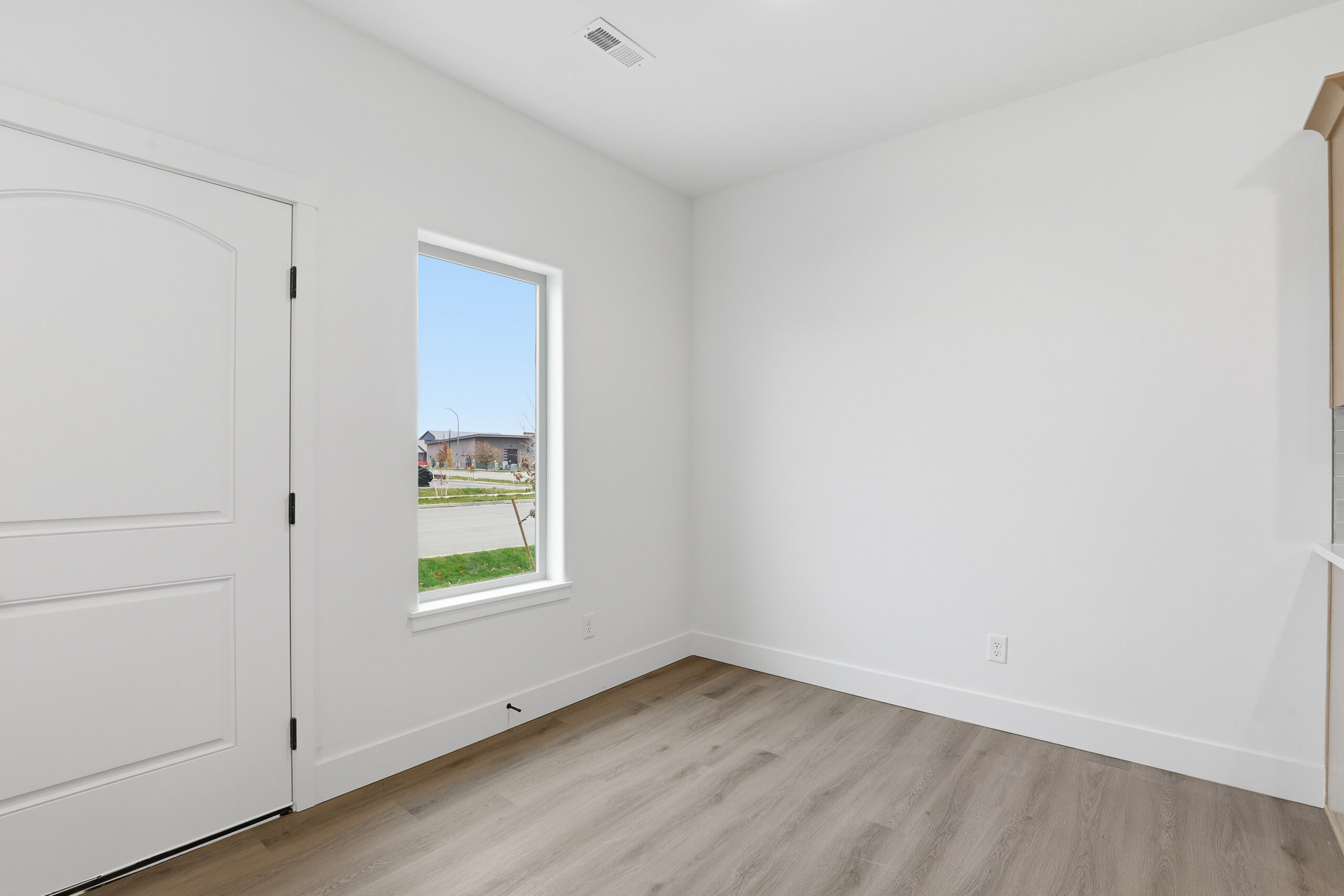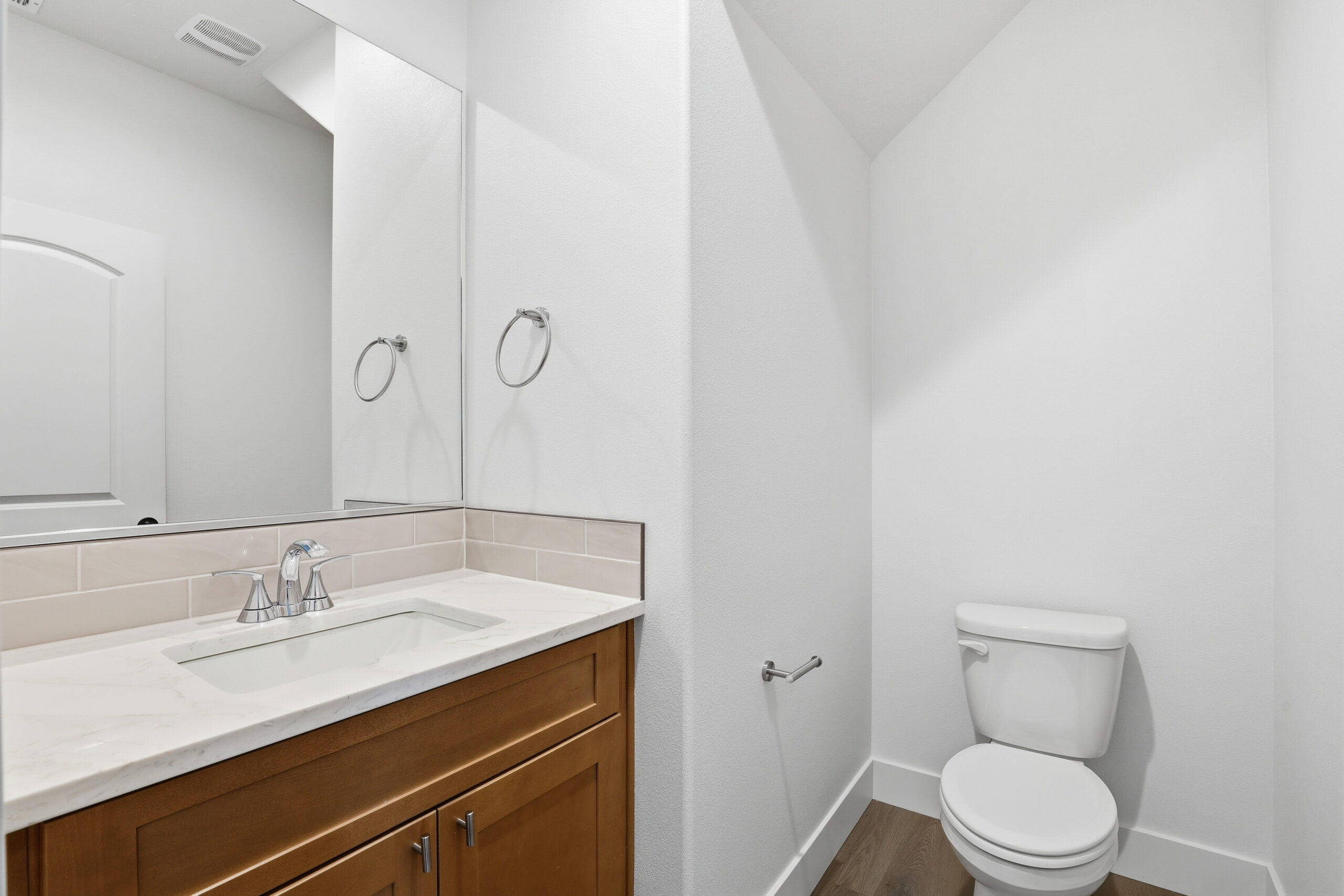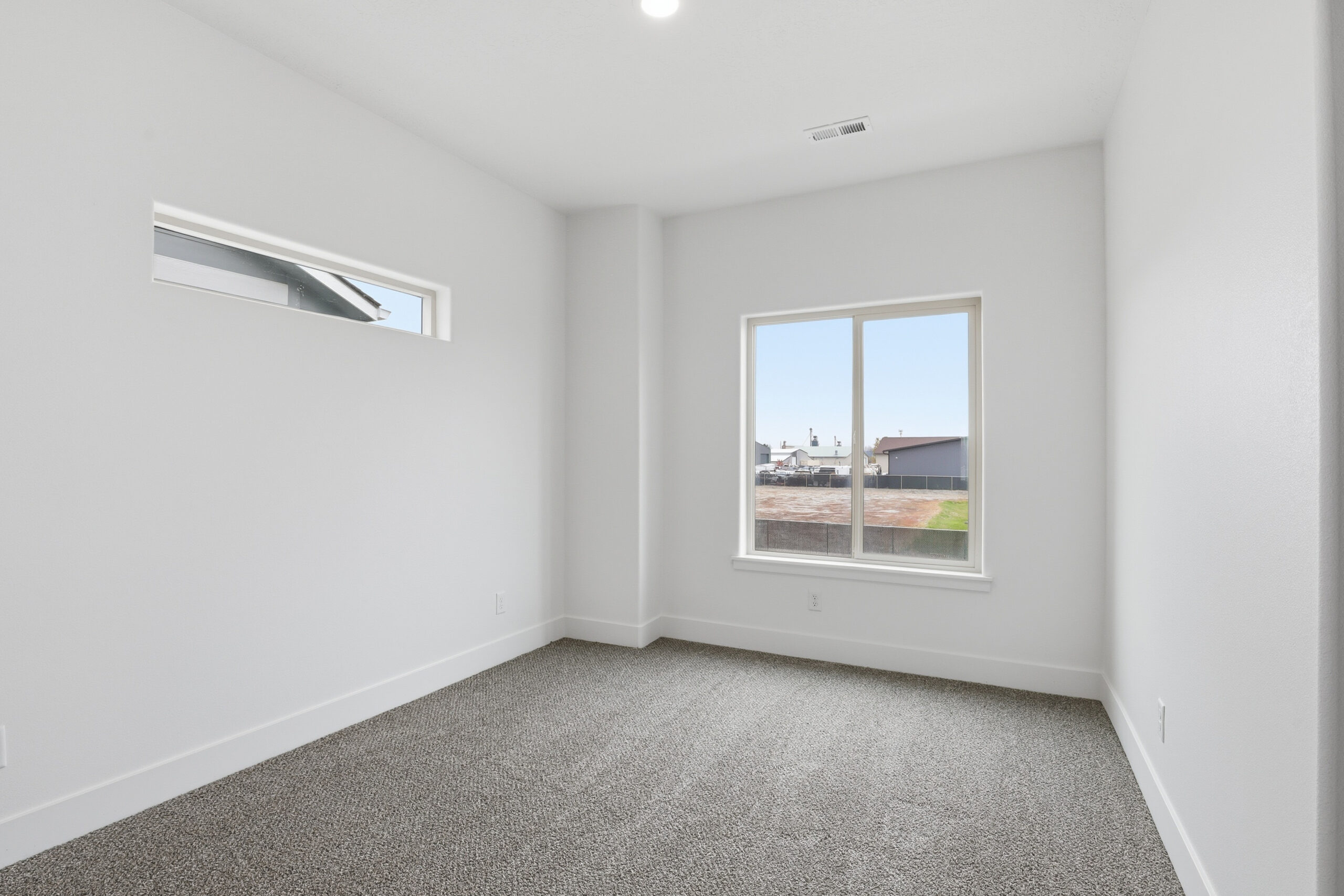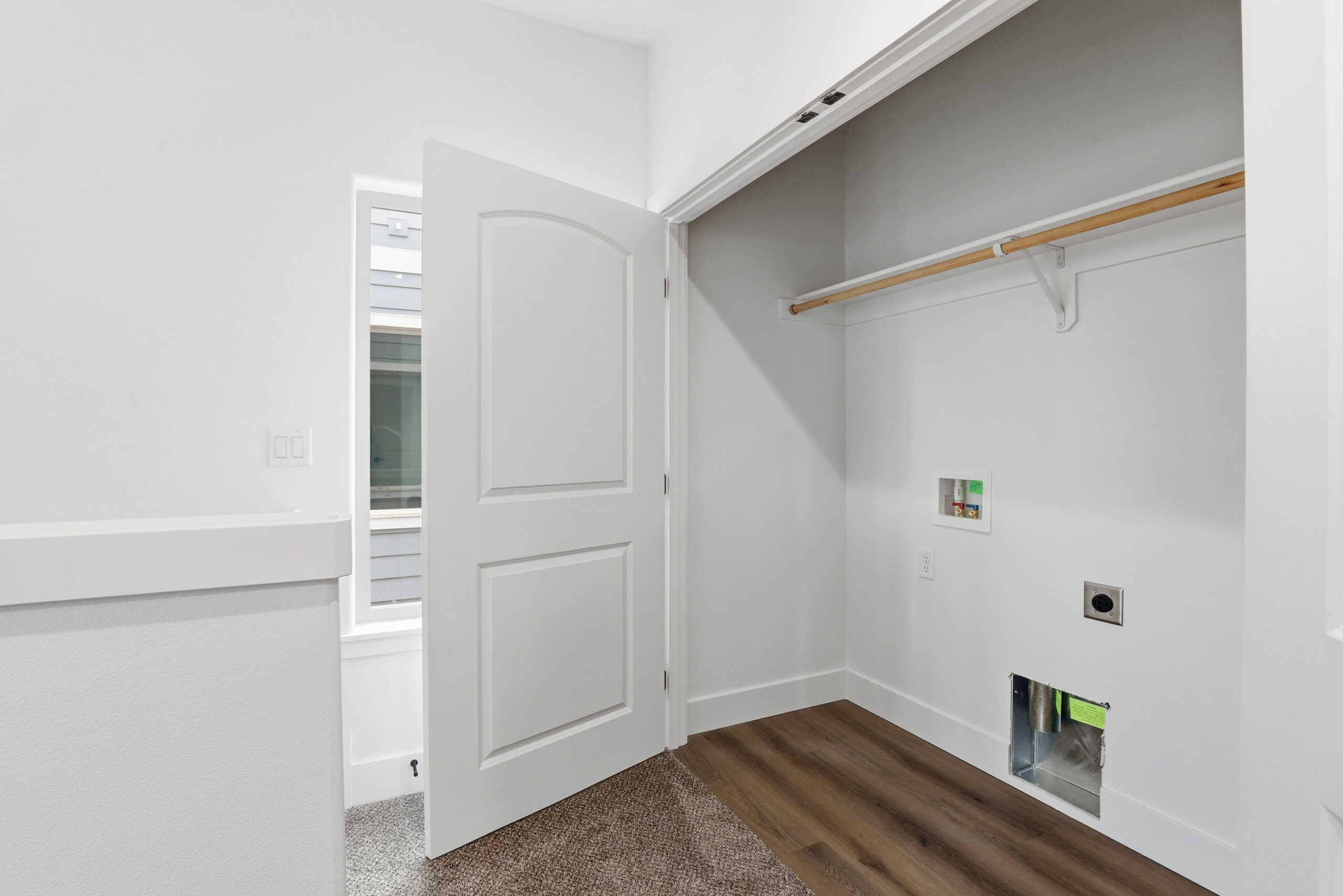 Upstairs, three bedrooms and two bathrooms maximize comfort and privacy. The primary bedroom is set apart for added seclusion, while a central hallway connects all rooms. A linen closet and laundry area enhance convenience for modern living.