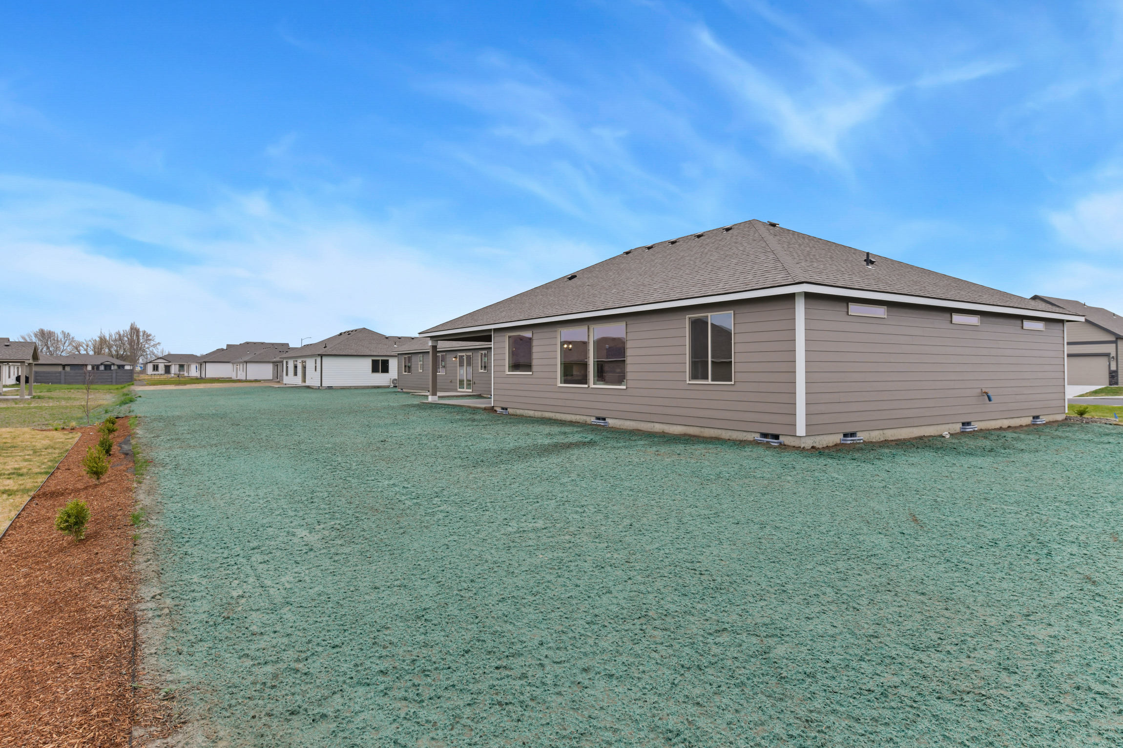Front yard landscape and sprinklers