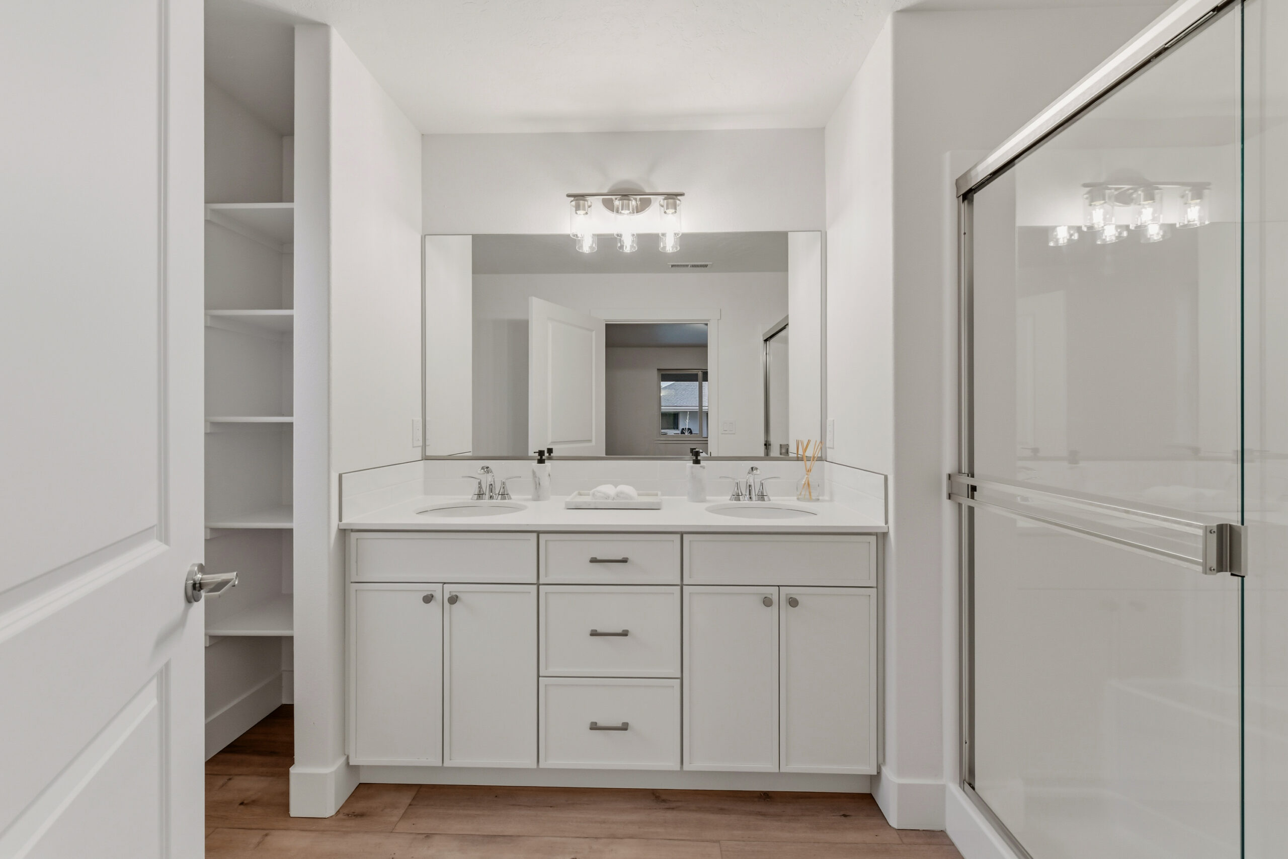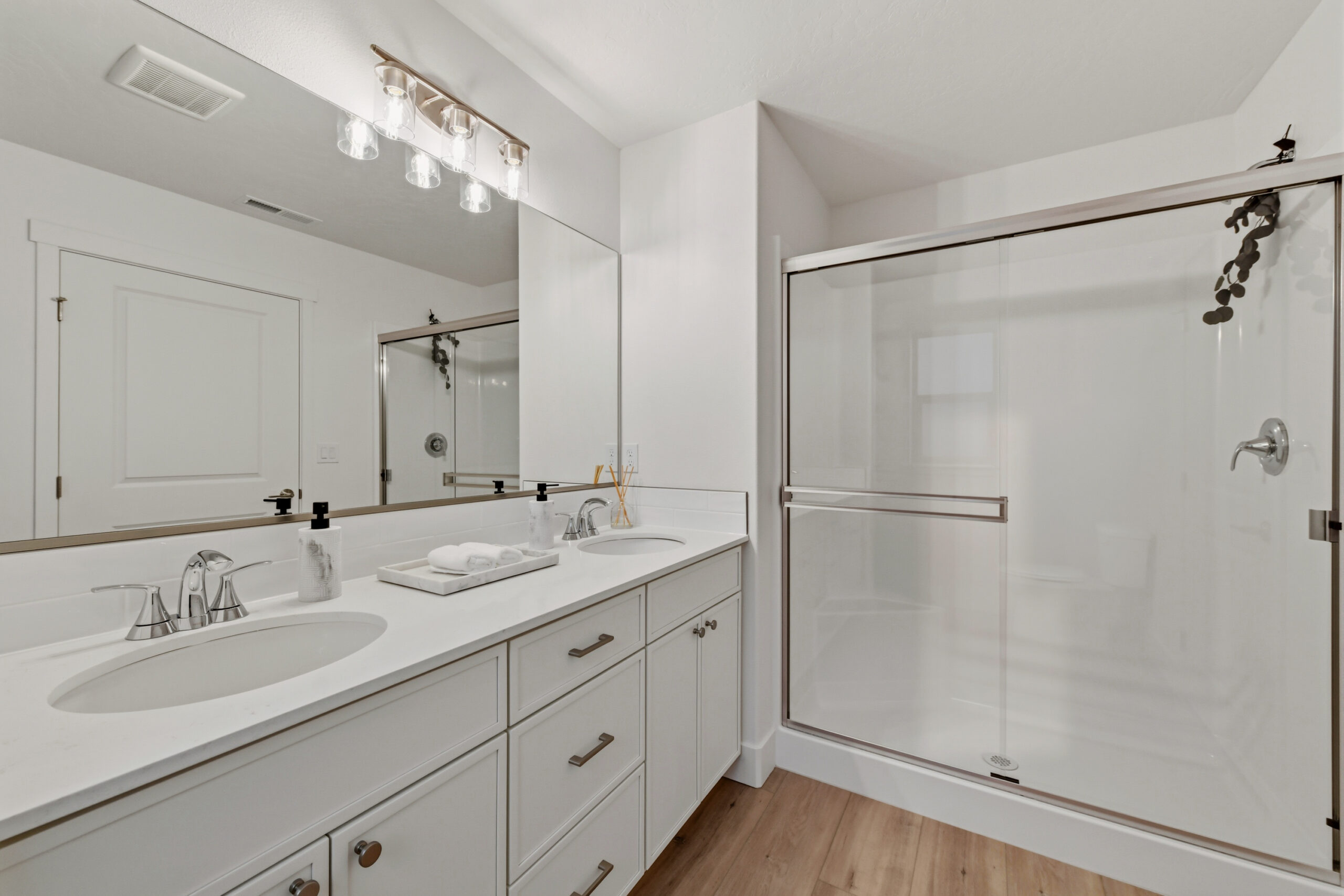 By-pass shower door in master bath
