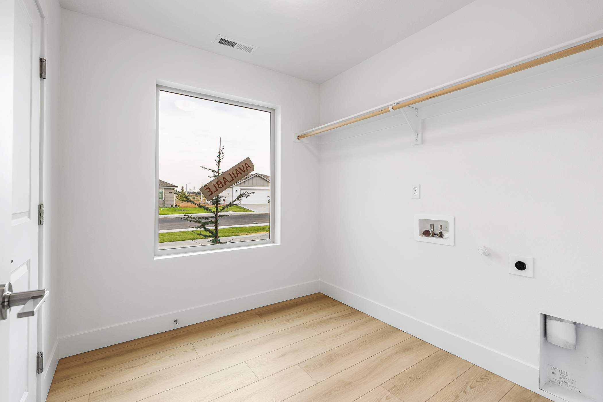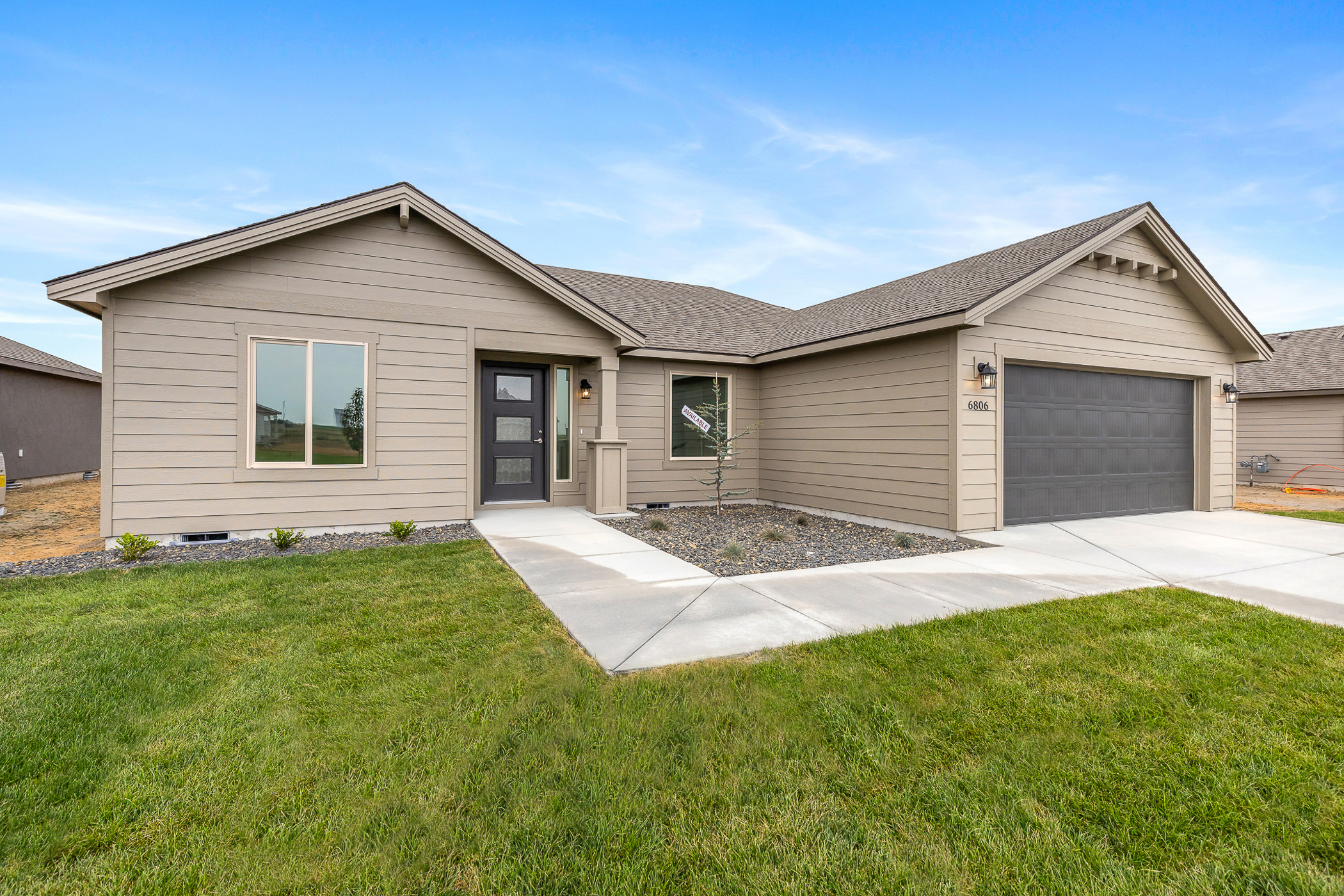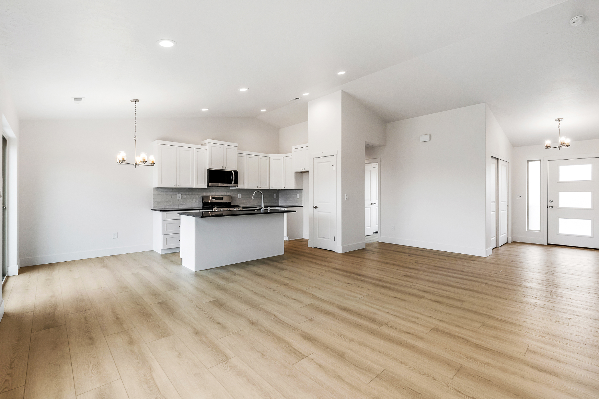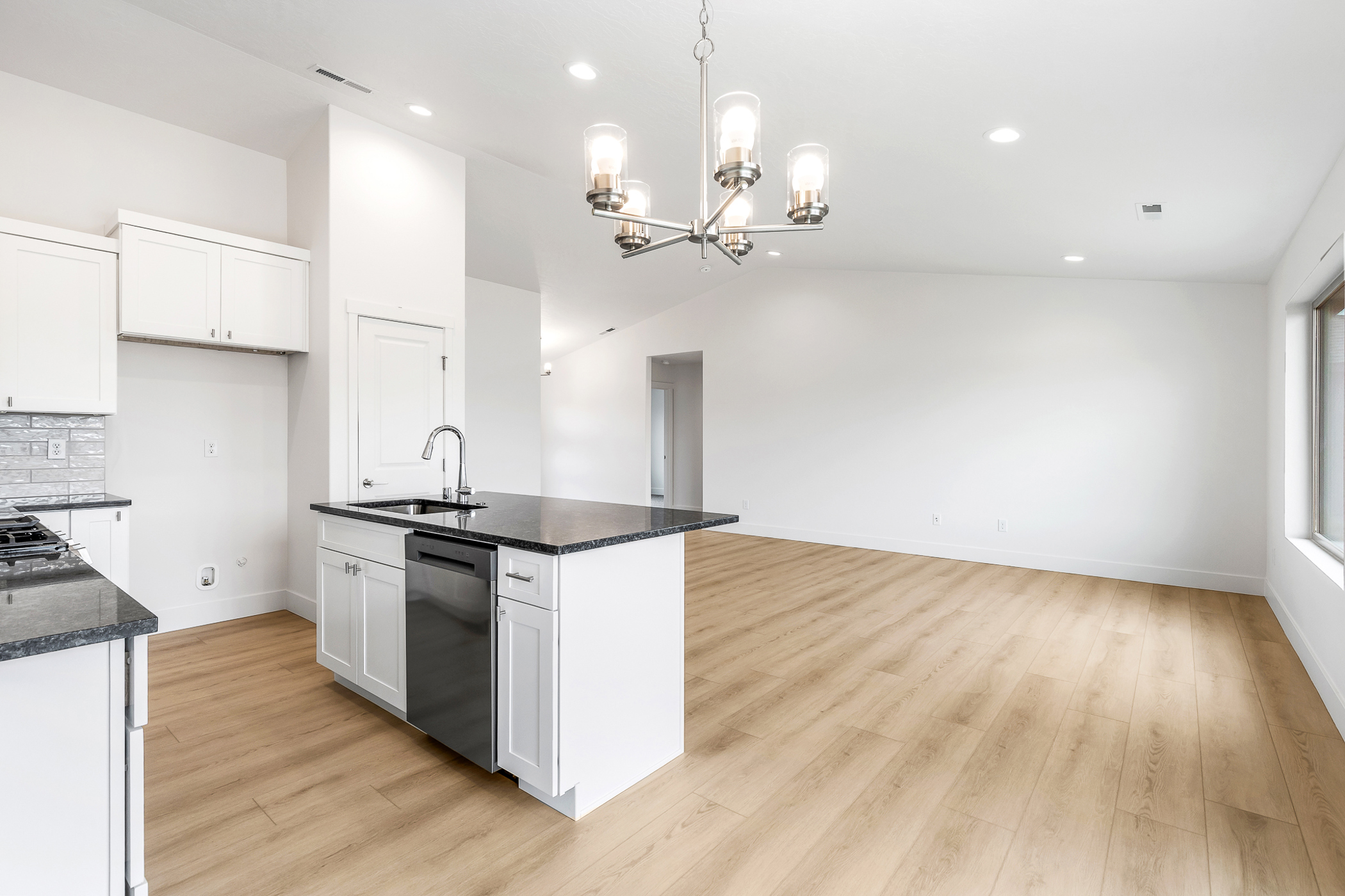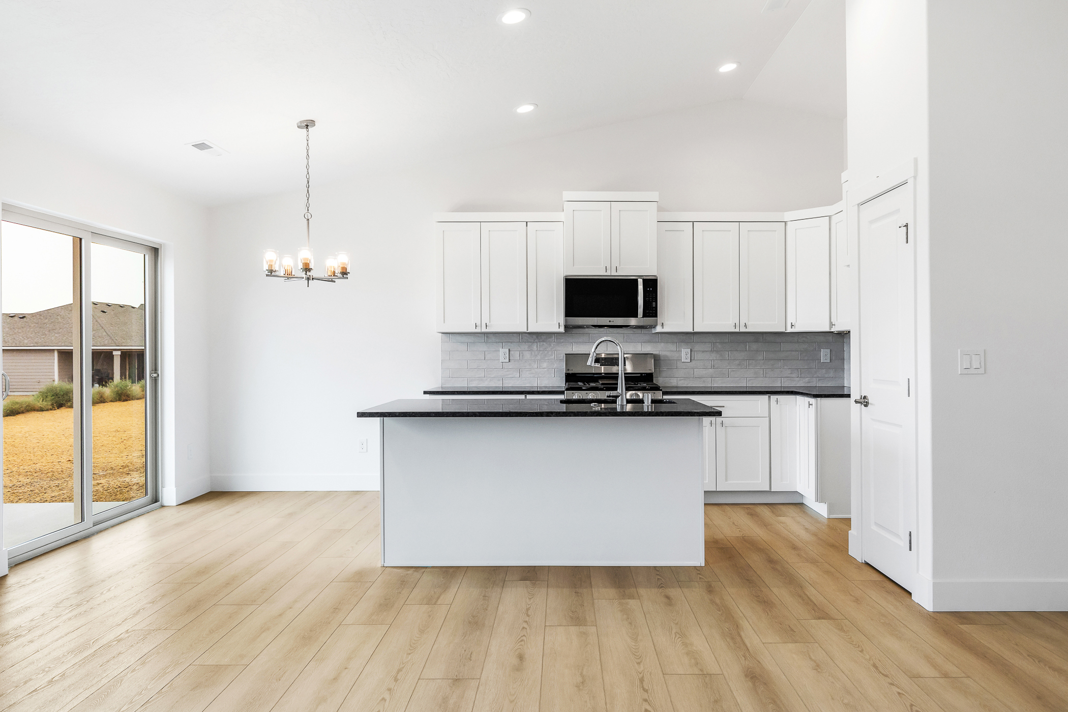 In the 1403 floor plan, you’ll be greeted by the grandeur of the high vaulted ceiling in the great room, seamlessly flowing into the spacious kitchen and dining area. Flooded with natural light from the large window and patio slide door, this space feels open and inviting. Conveniently located near the garage entrance, the laundry room offers ease and functionality.