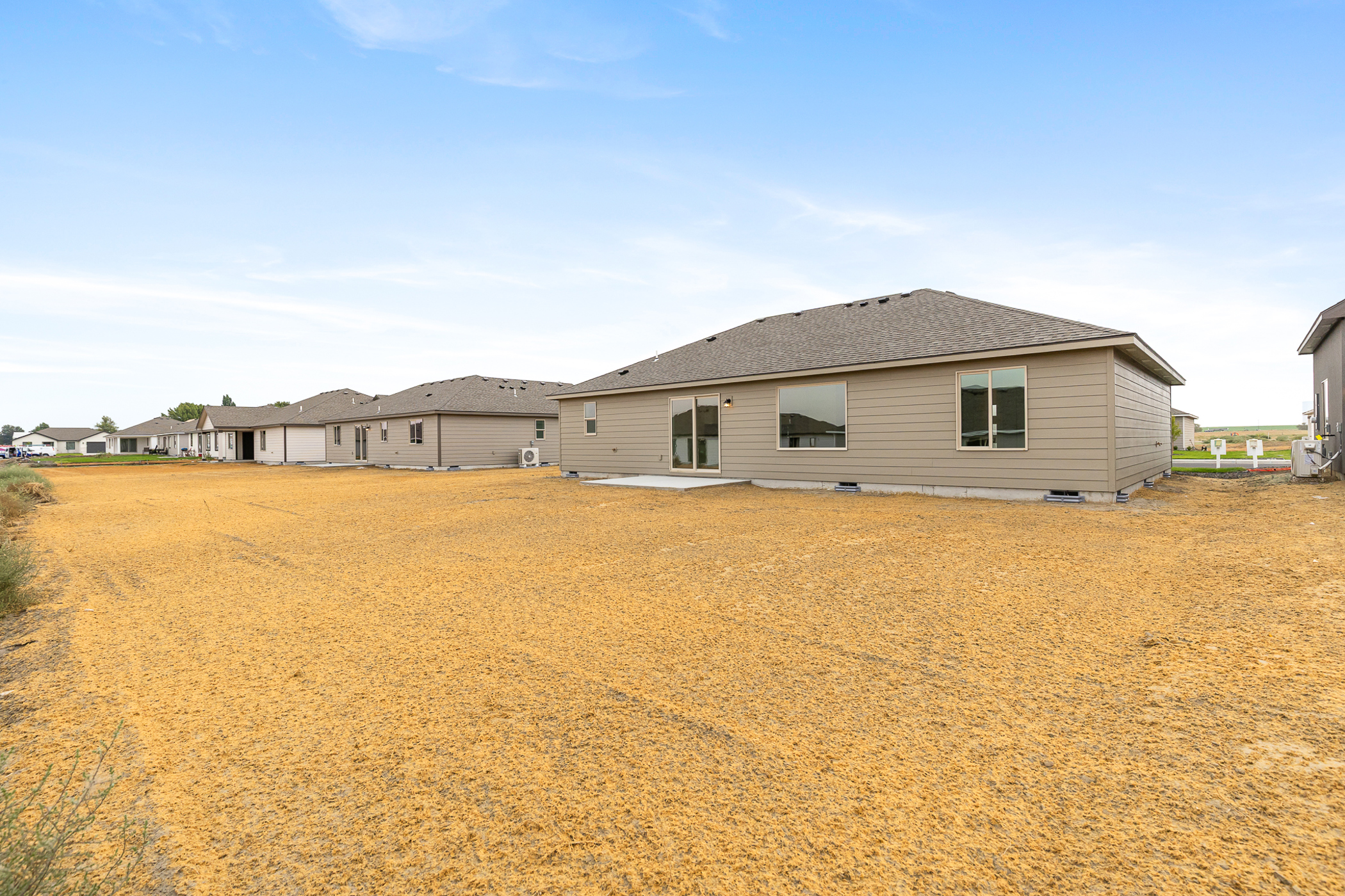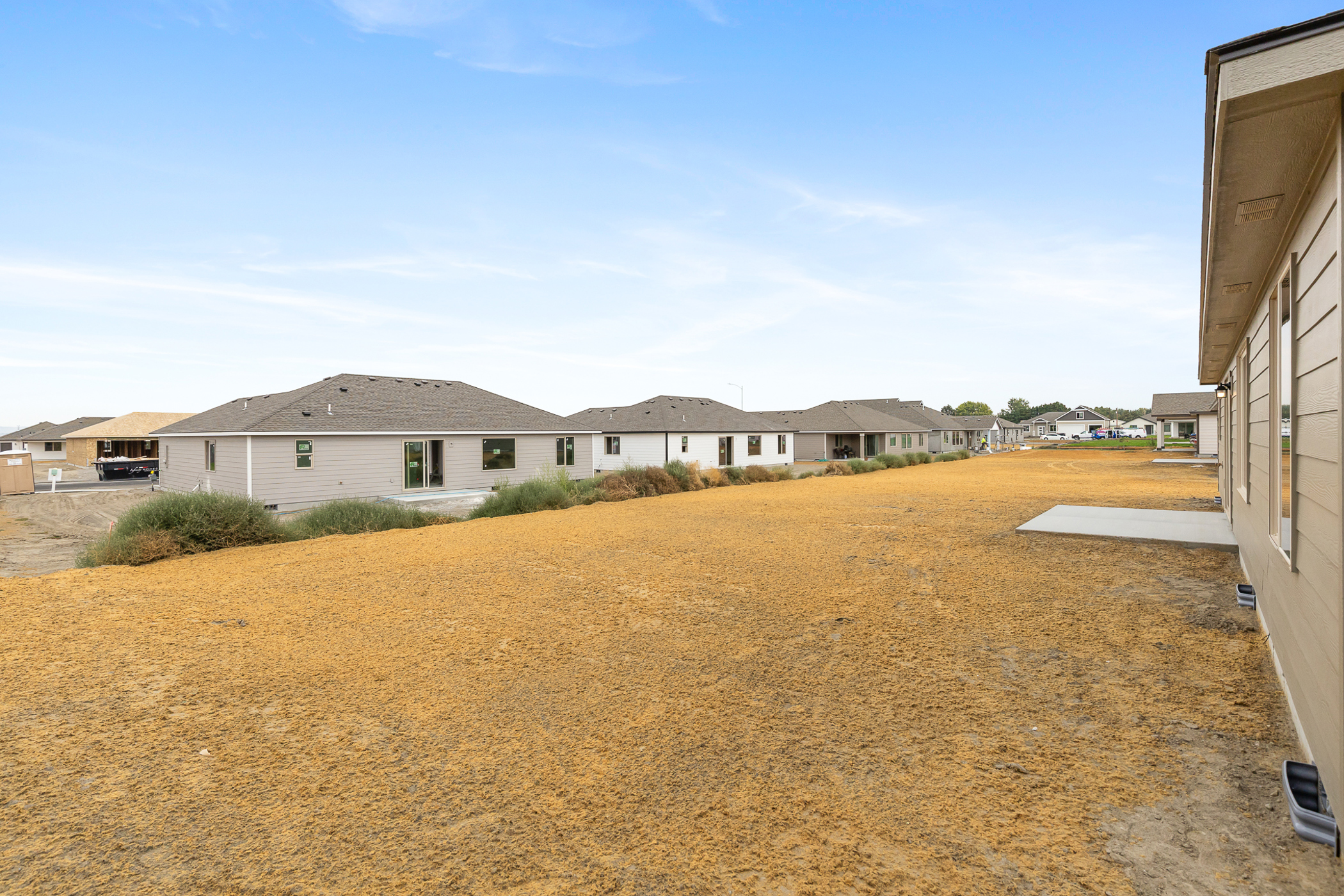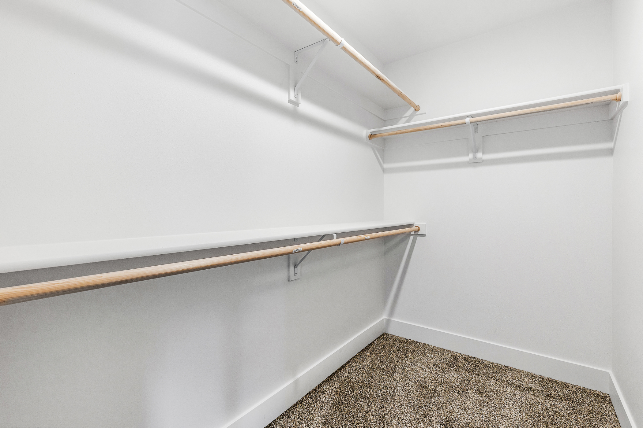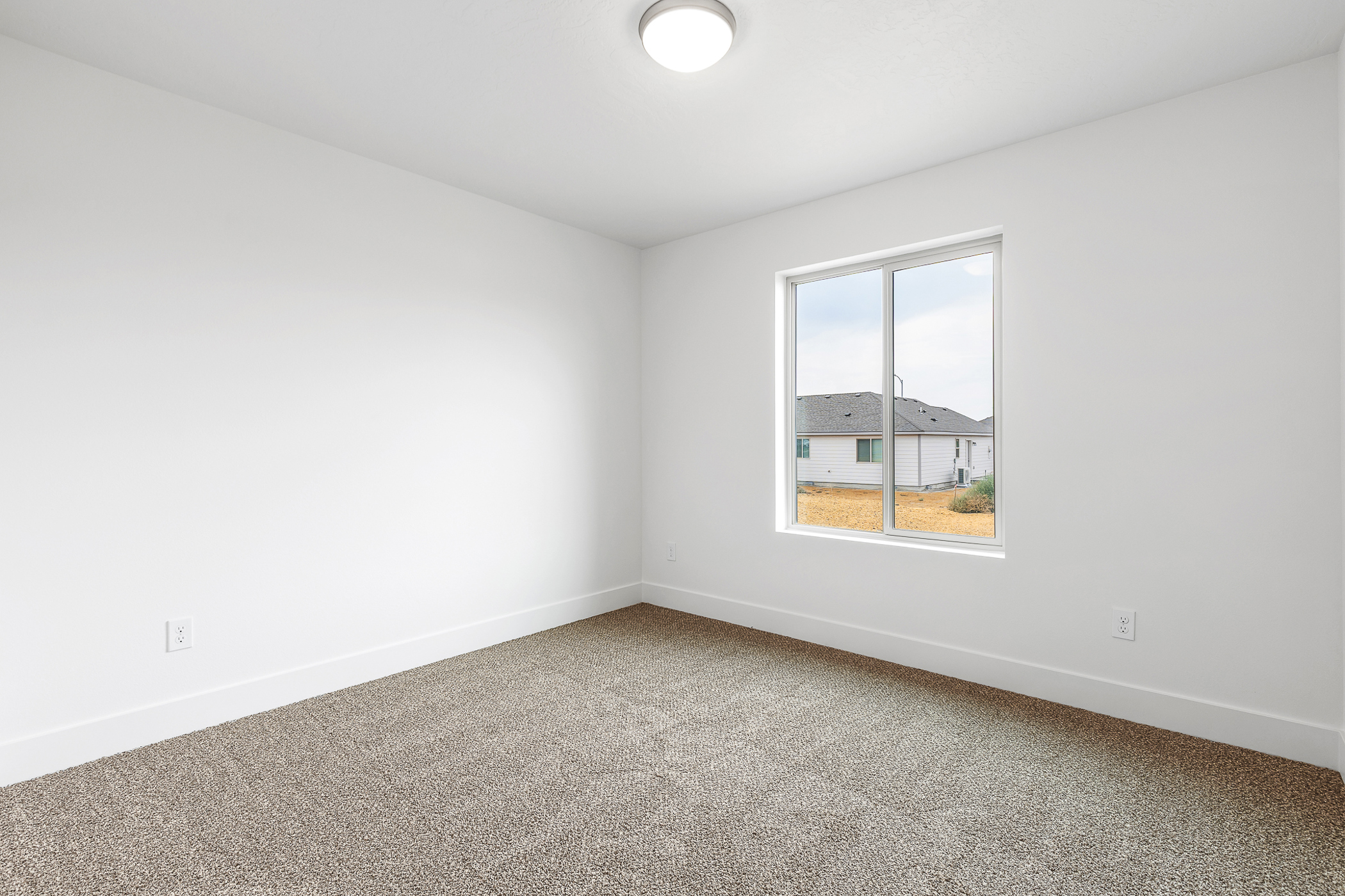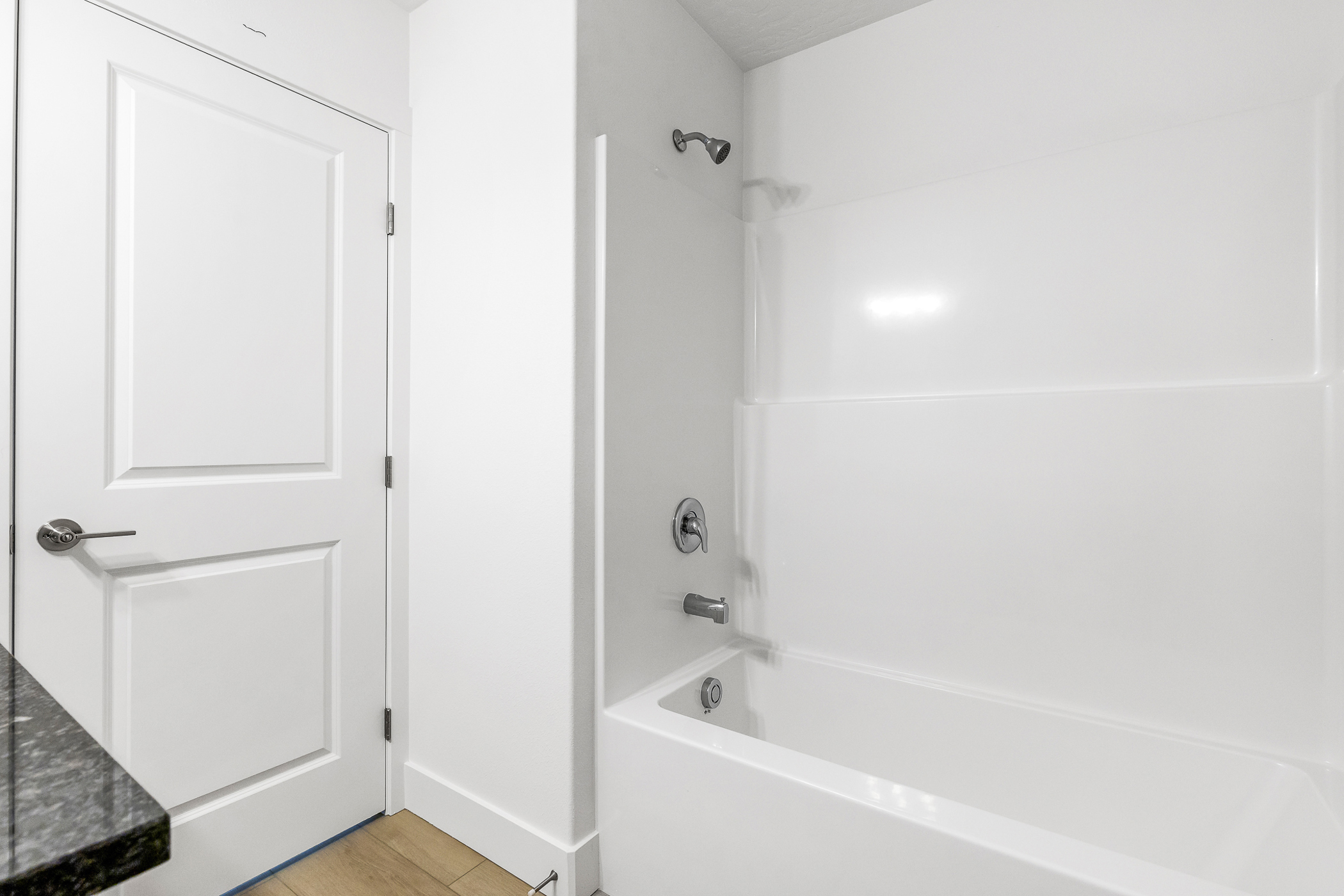 Retreat to the main suite featuring a dual vanity bathroom with options for a fiberglass shower or customizable tiled walls. Plus, indulge in the dream-worthy walk-in closet. At the opposite end, two bedrooms share a well-appointed bathroom.