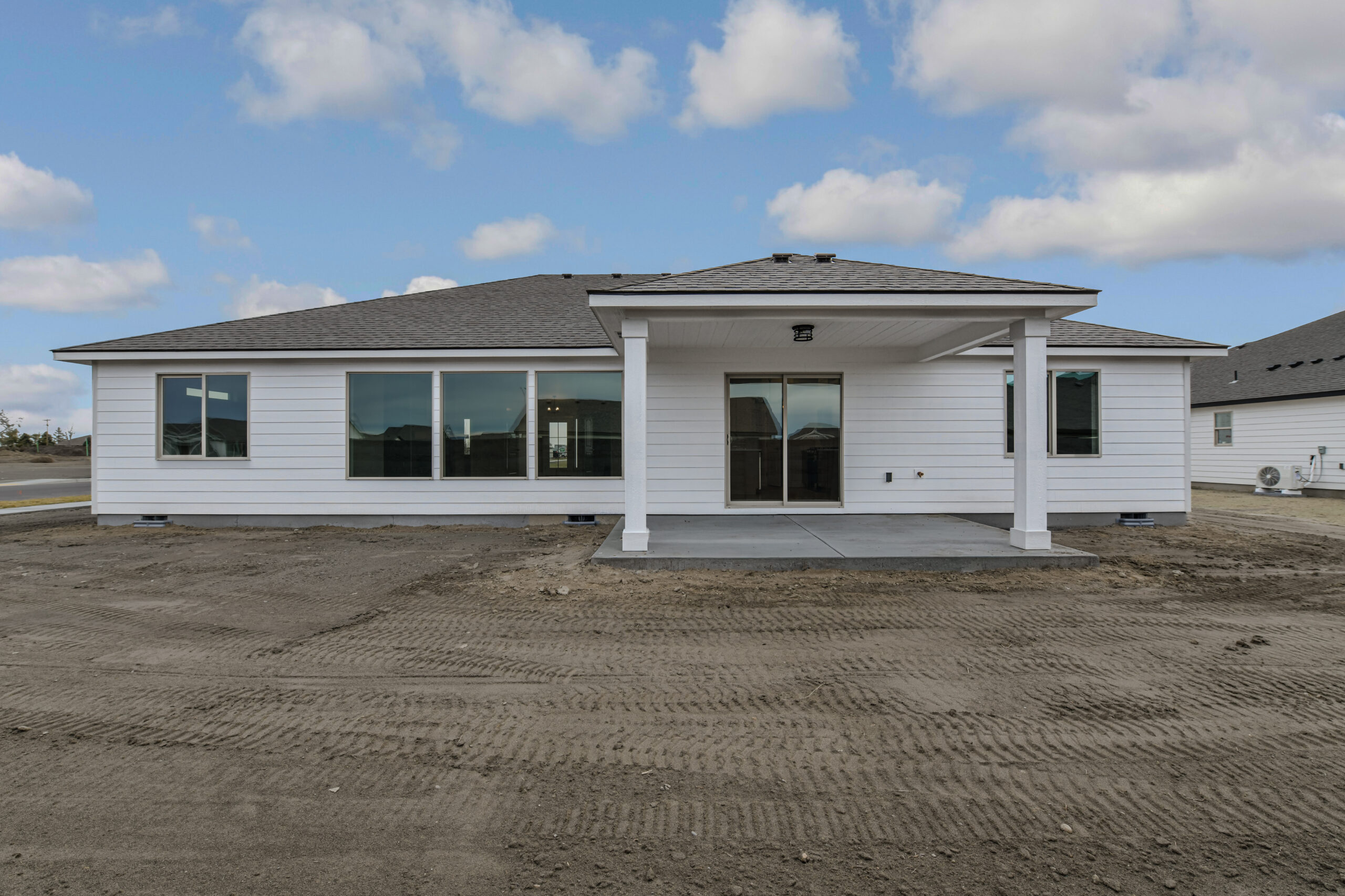 A corridor leads to the private quarters, including a generous primary suite with a walk-in closet and luxurious ensuite bathroom. Two additional bedrooms share a well-equipped full bathroom nearby. An upgrade to a covered patio will extend your living space outdoors, making it perfect for relaxation and gatherings, seamlessly integrating indoor and outdoor living.