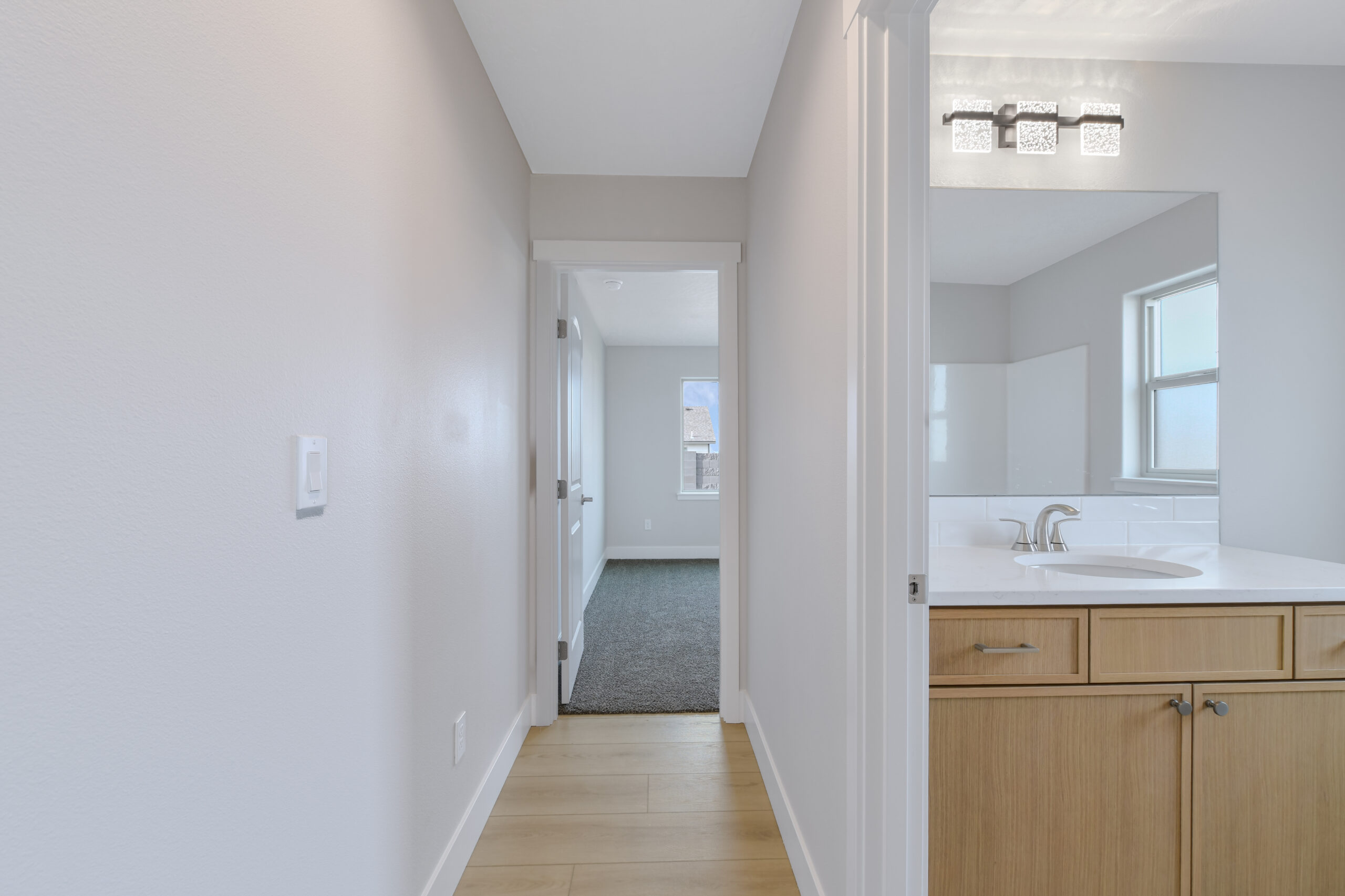 Upon entering the 2349 plan, you’ll be greeted with a spacious foyer that opens into the bright great room and adjacent dining area. The sleek kitchen features ample storage and contemporary appliances, ideal for socializing and culinary activities.