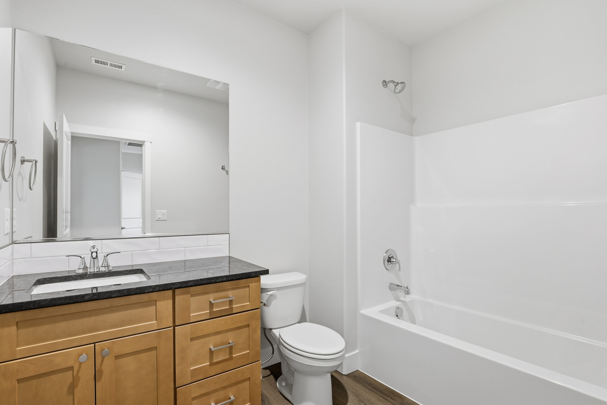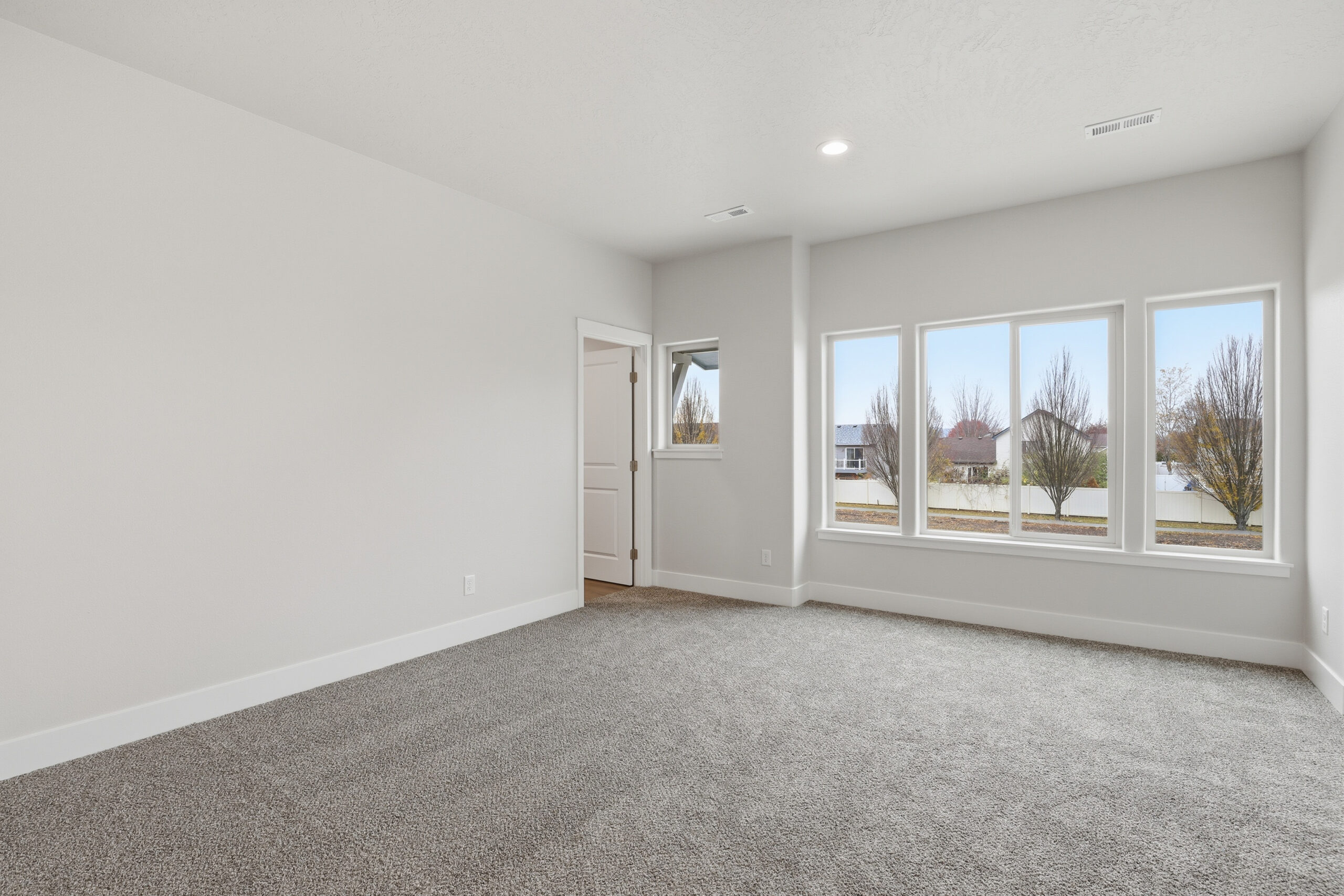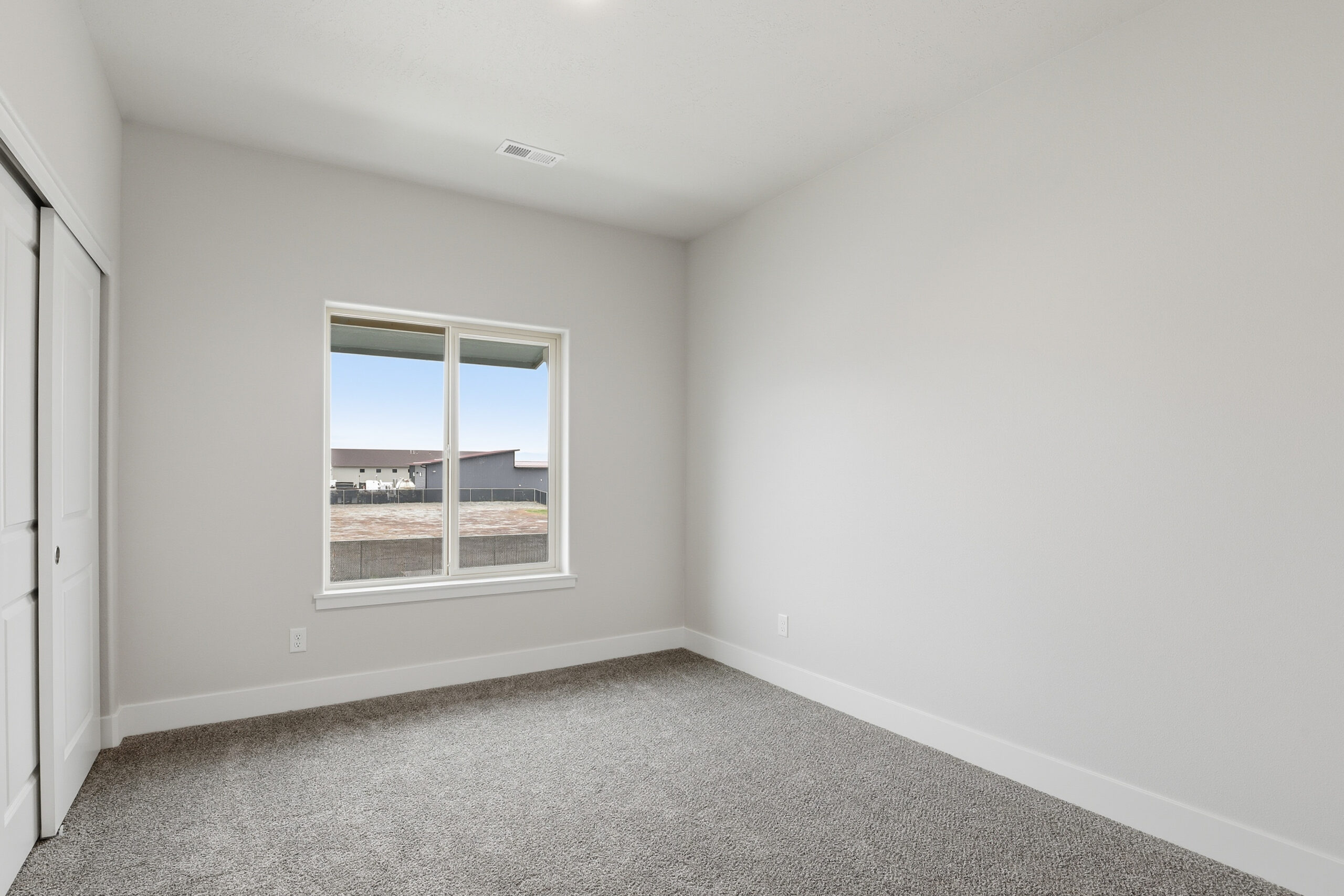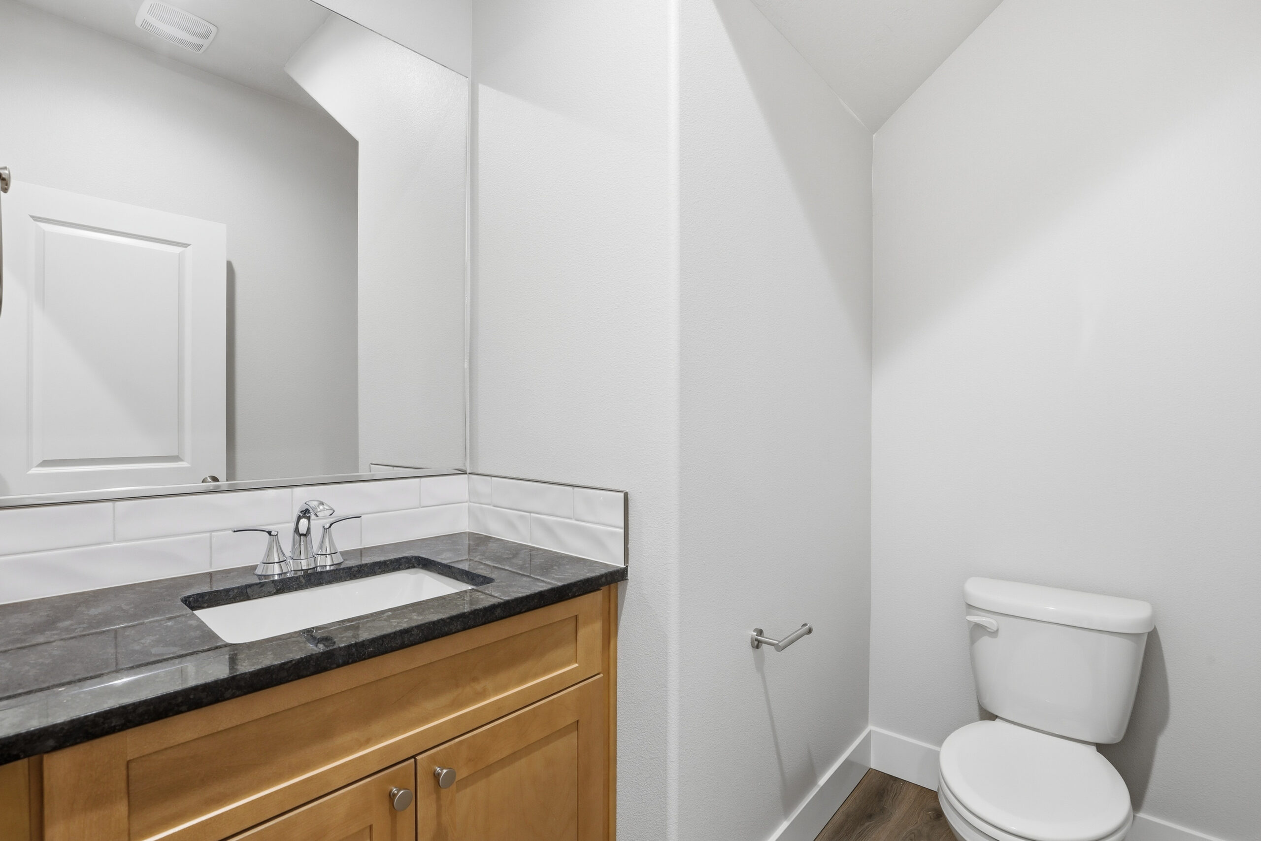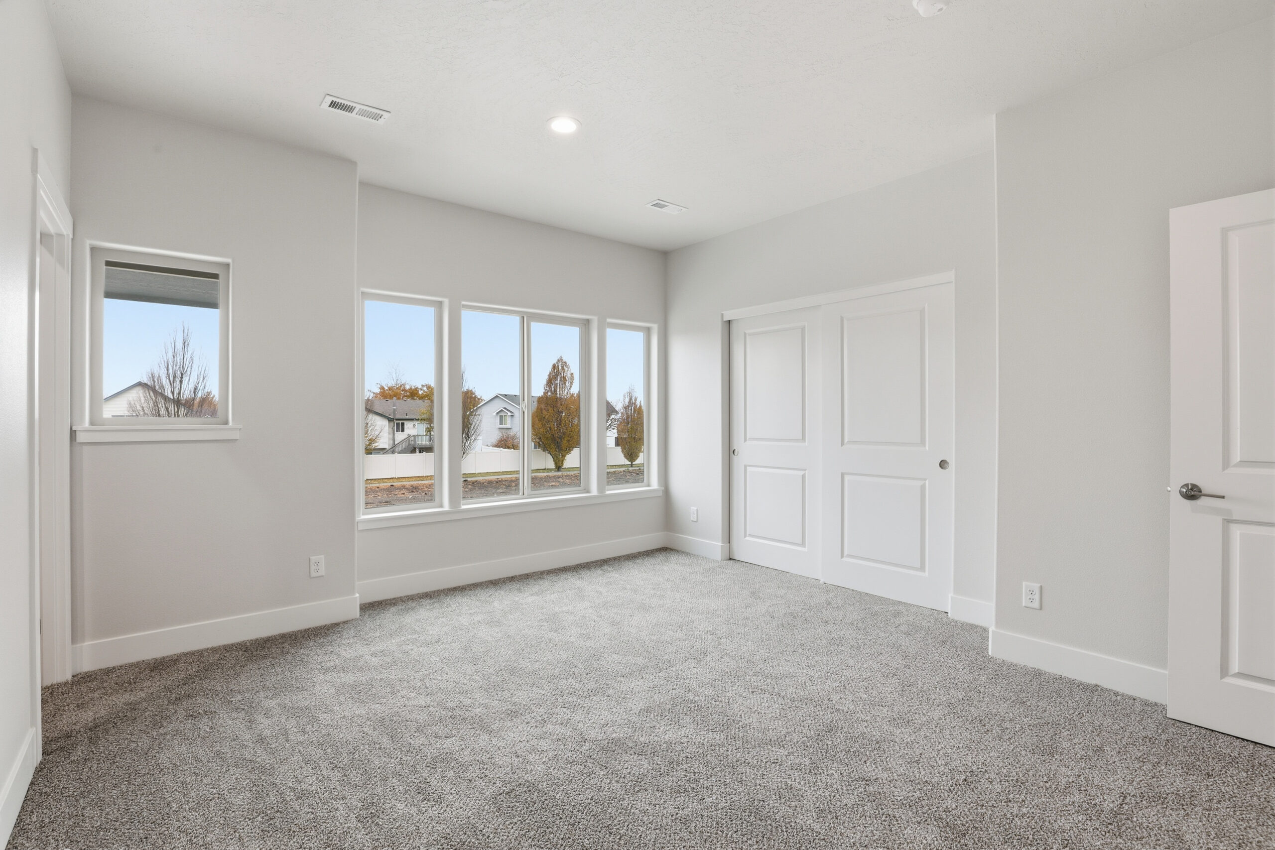 Upstairs, three bedrooms and two bathrooms maximize comfort and privacy. The primary bedroom is set apart for added seclusion, while a central hallway connects all rooms. A linen closet and laundry area enhance convenience for modern living.