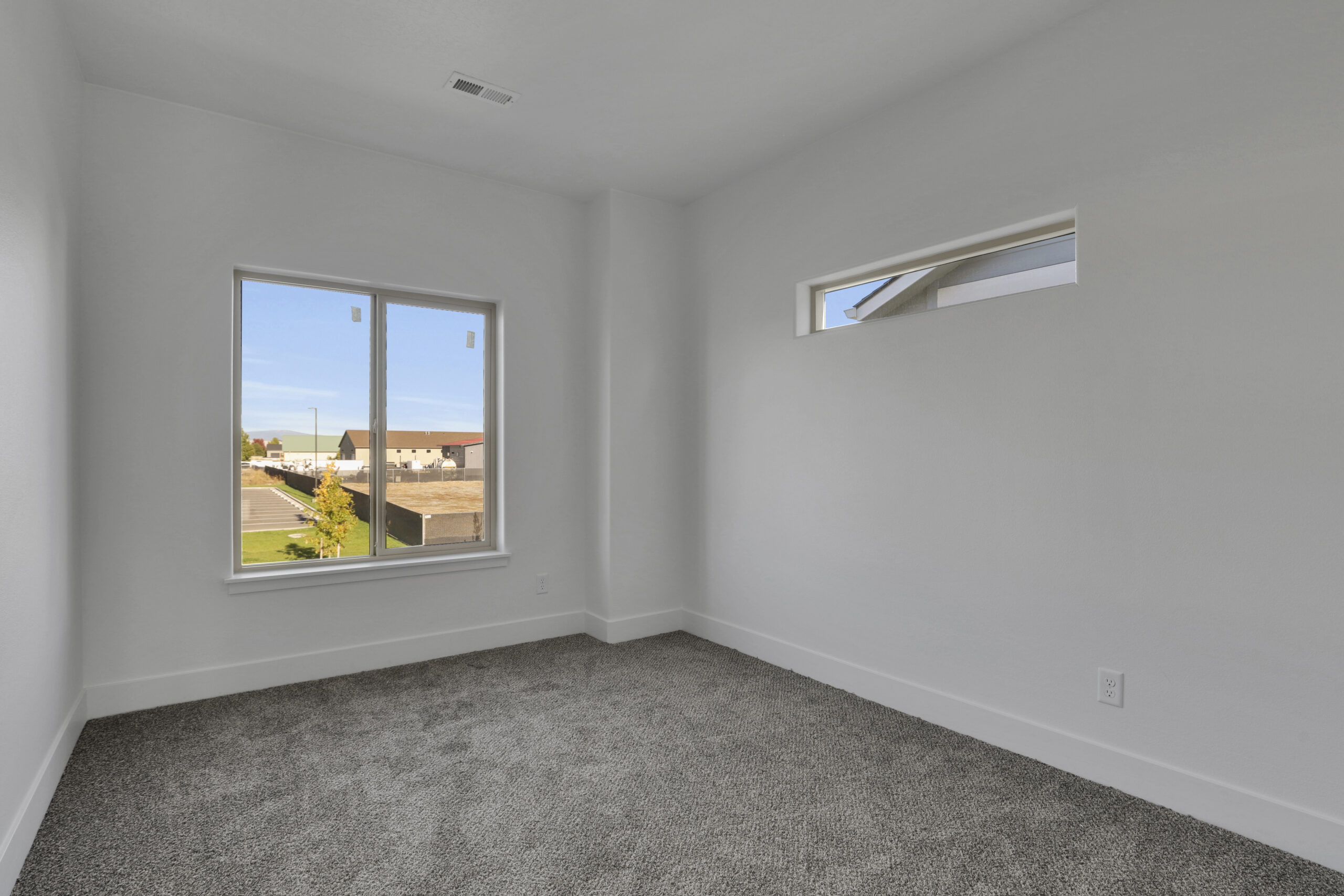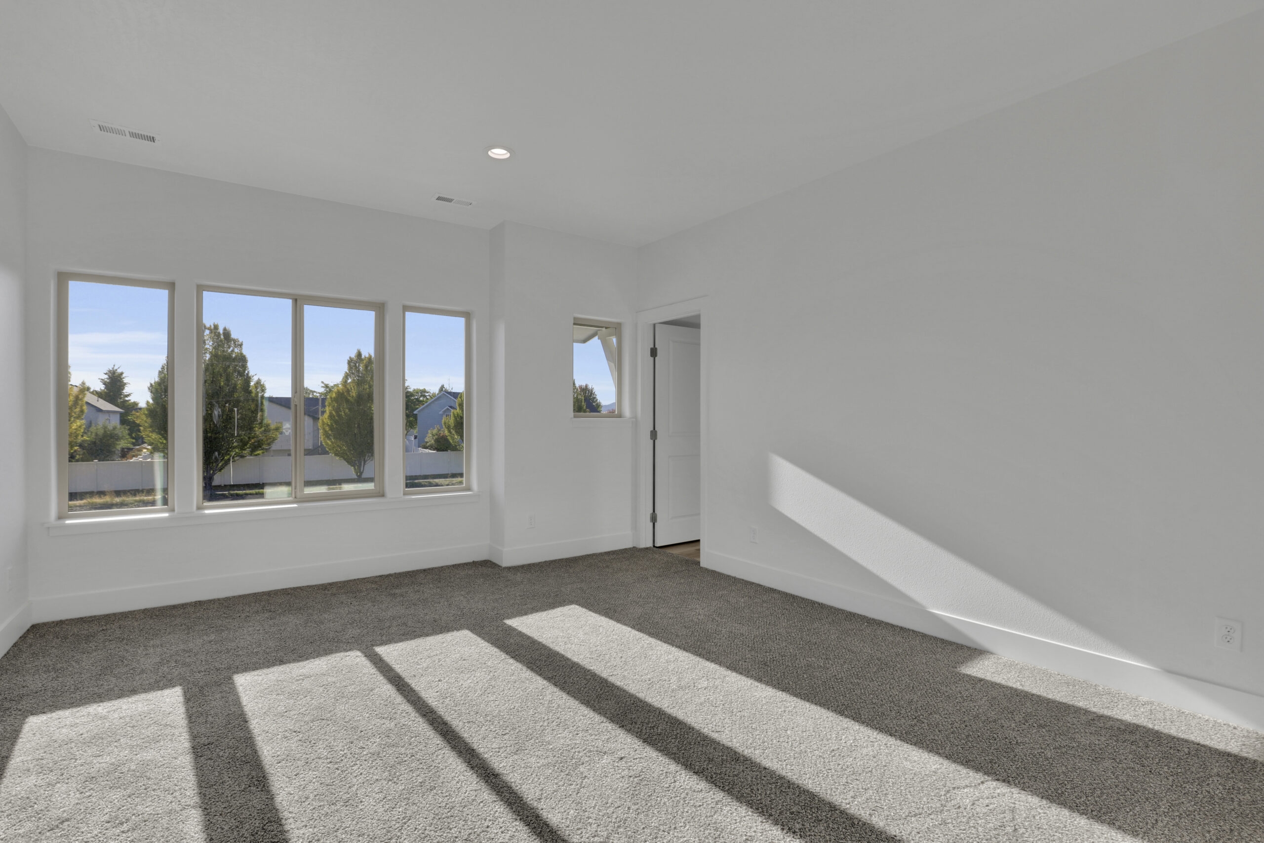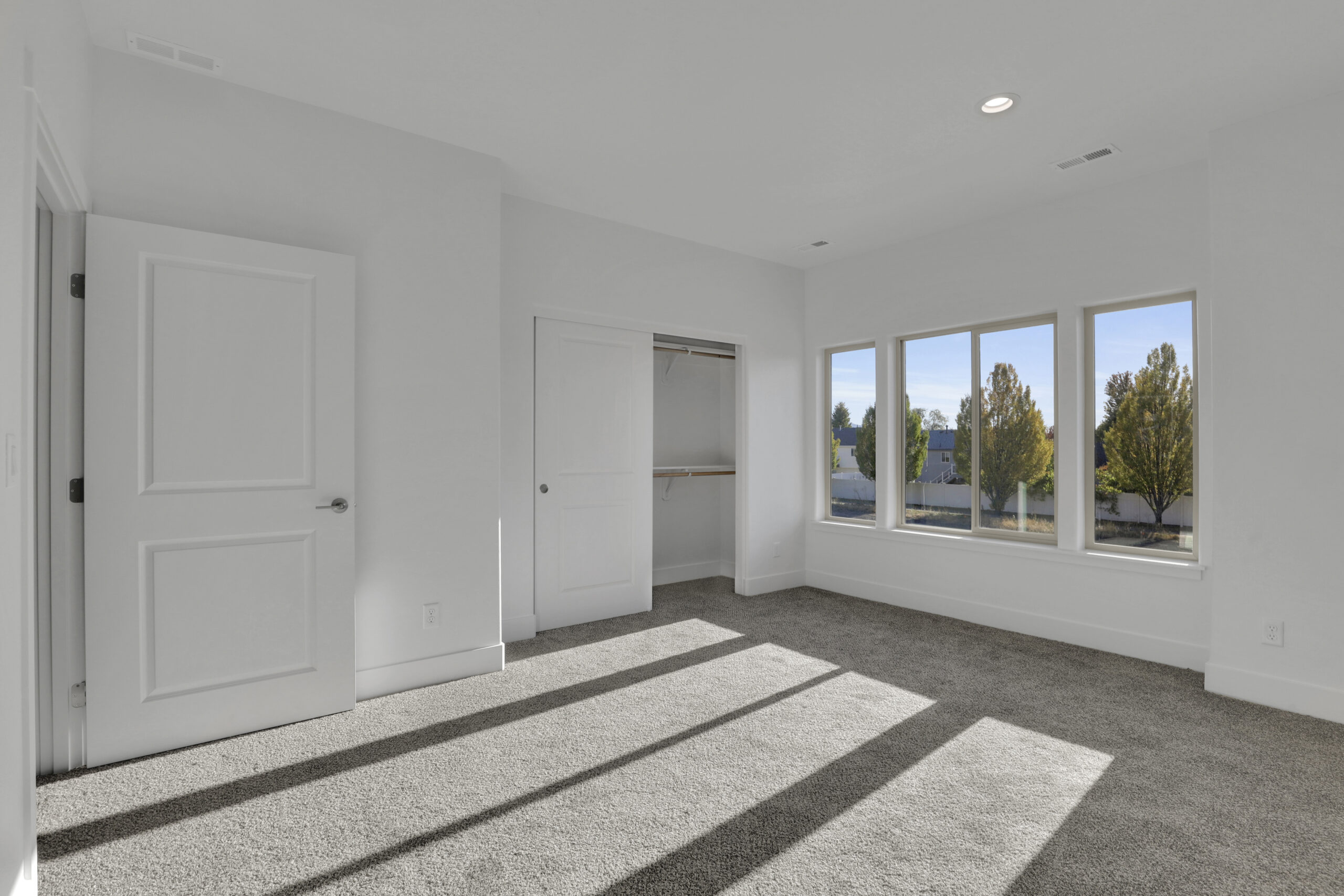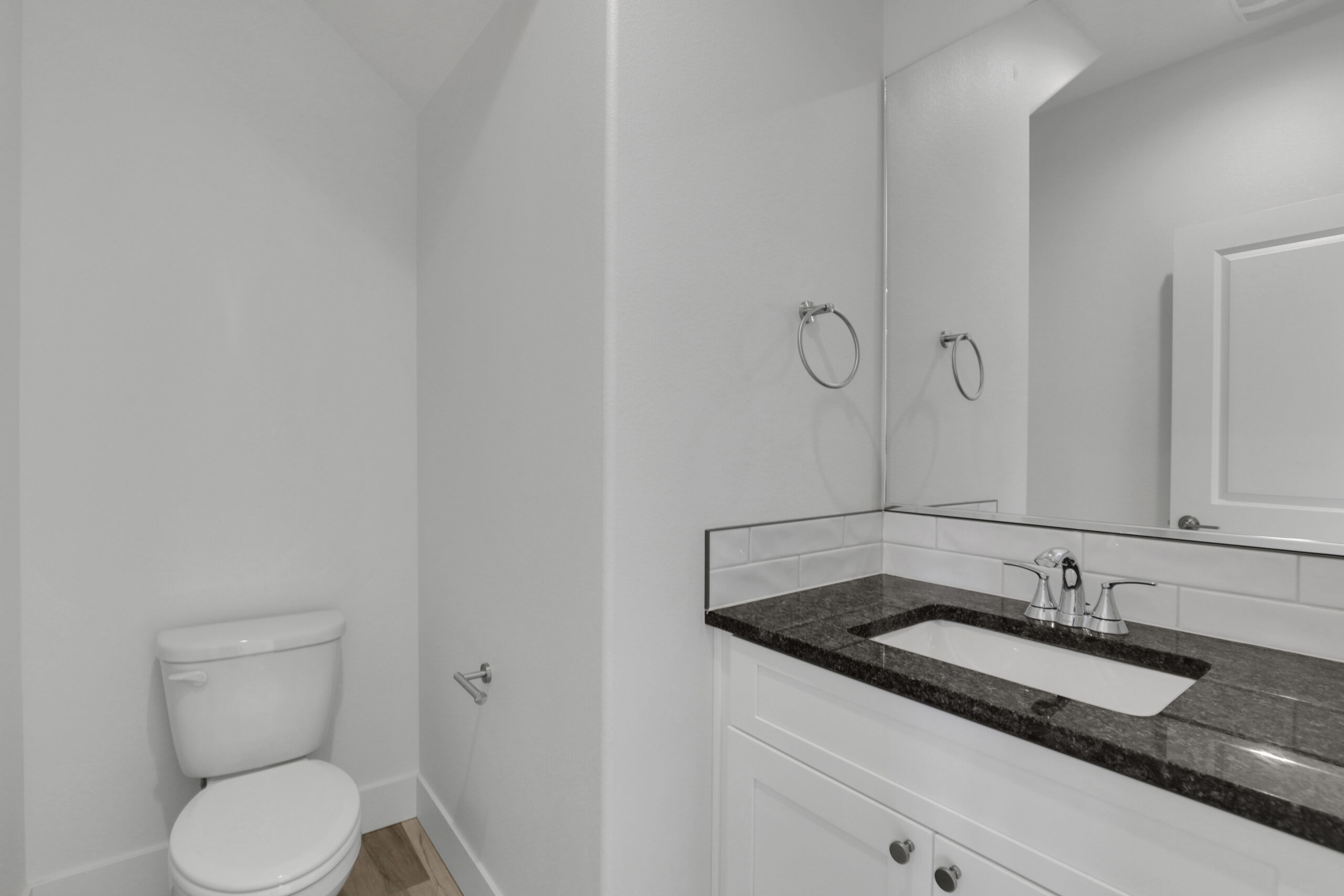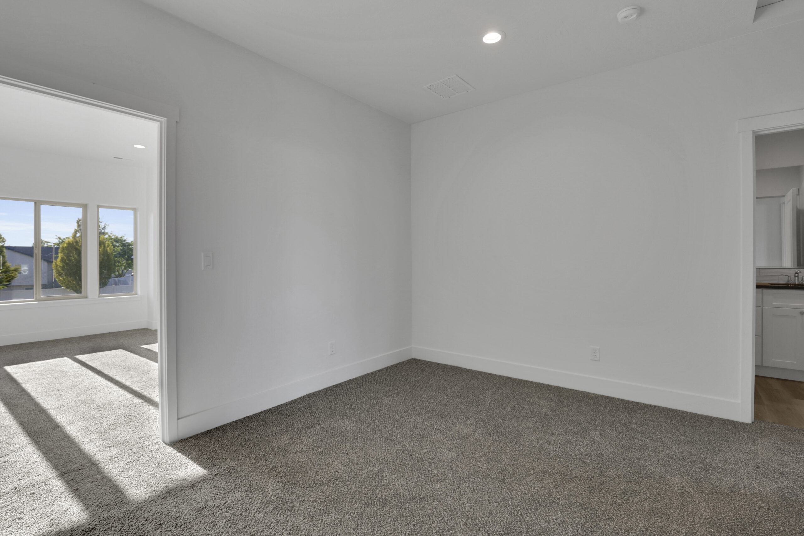 Upstairs, three bedrooms and two bathrooms maximize comfort and privacy. The primary bedroom is set apart for added seclusion, while a central hallway connects all rooms. A linen closet and laundry area enhance convenience for modern living.